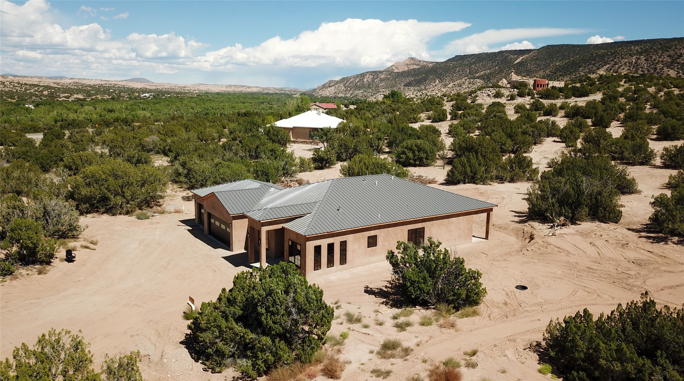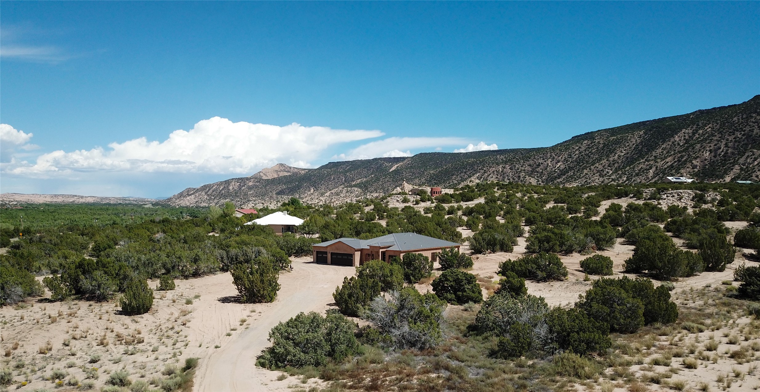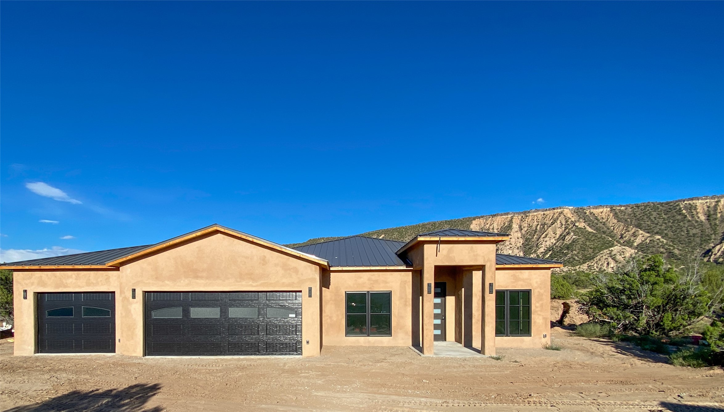 Experience modern living in this brand-new custom home set on 5 acres of sweeping New Mexico views. This sleek and stylish residence offers 2,377 sqft of thoughtfully designed space. The open-concept floor plan features high ceilings and an abundance of natural light. Blending contemporary finishes with timeless comfort. The kitchen is a showstopper, perfect for both entertaining and everyday living. The living area flows seamlessly outdoors, where panoramic skies and peaceful surroundings await. The primary suite is a private retreat with a spa-inspired bathroom, while three additional bedrooms provide flexibility for family, guests, a gym or a home office. Located in Ojo Caliente, just 30 miles from LANL and Santa Fe, this property offers the rare balance of modern convenience and rural tranquility.