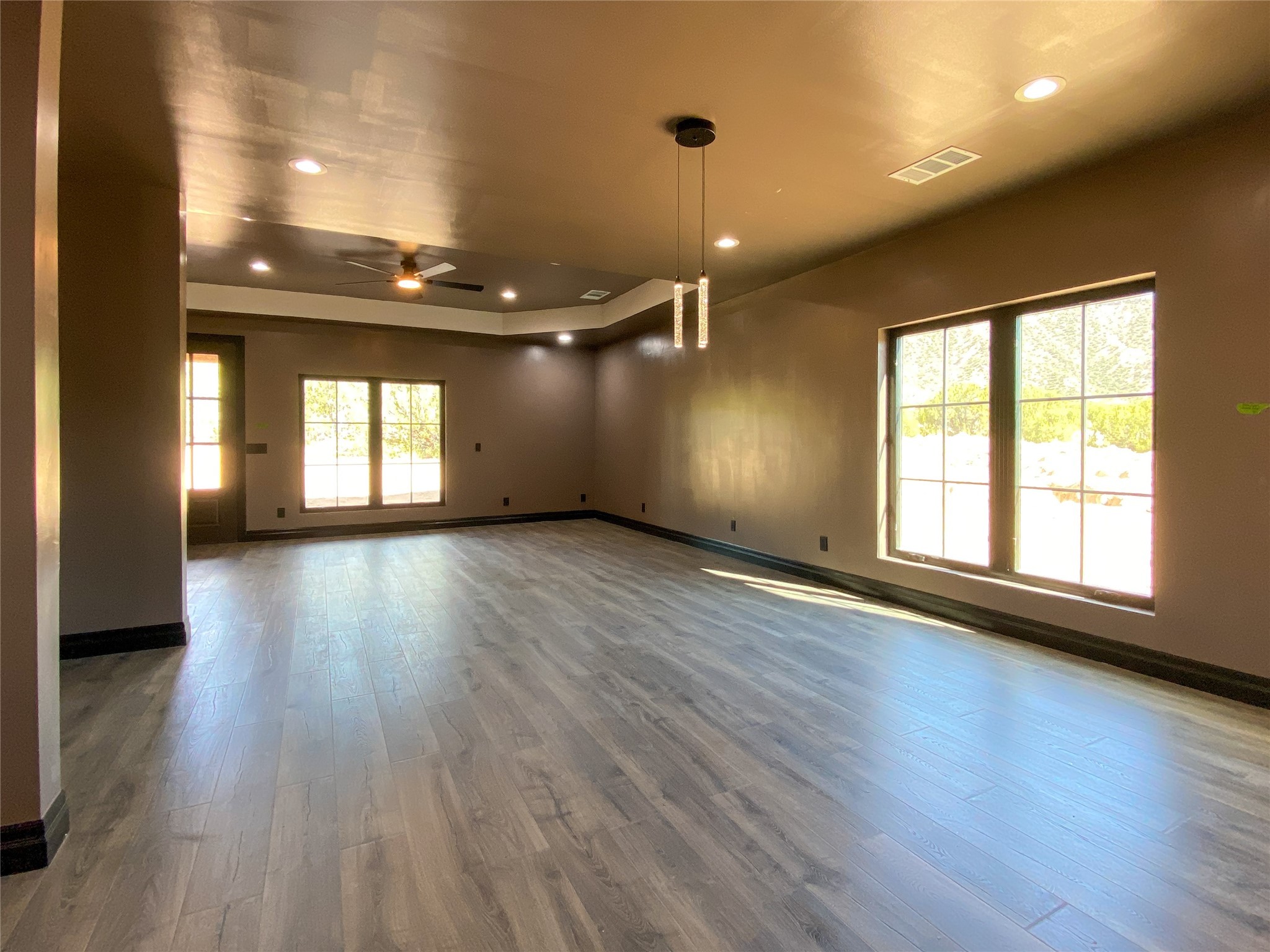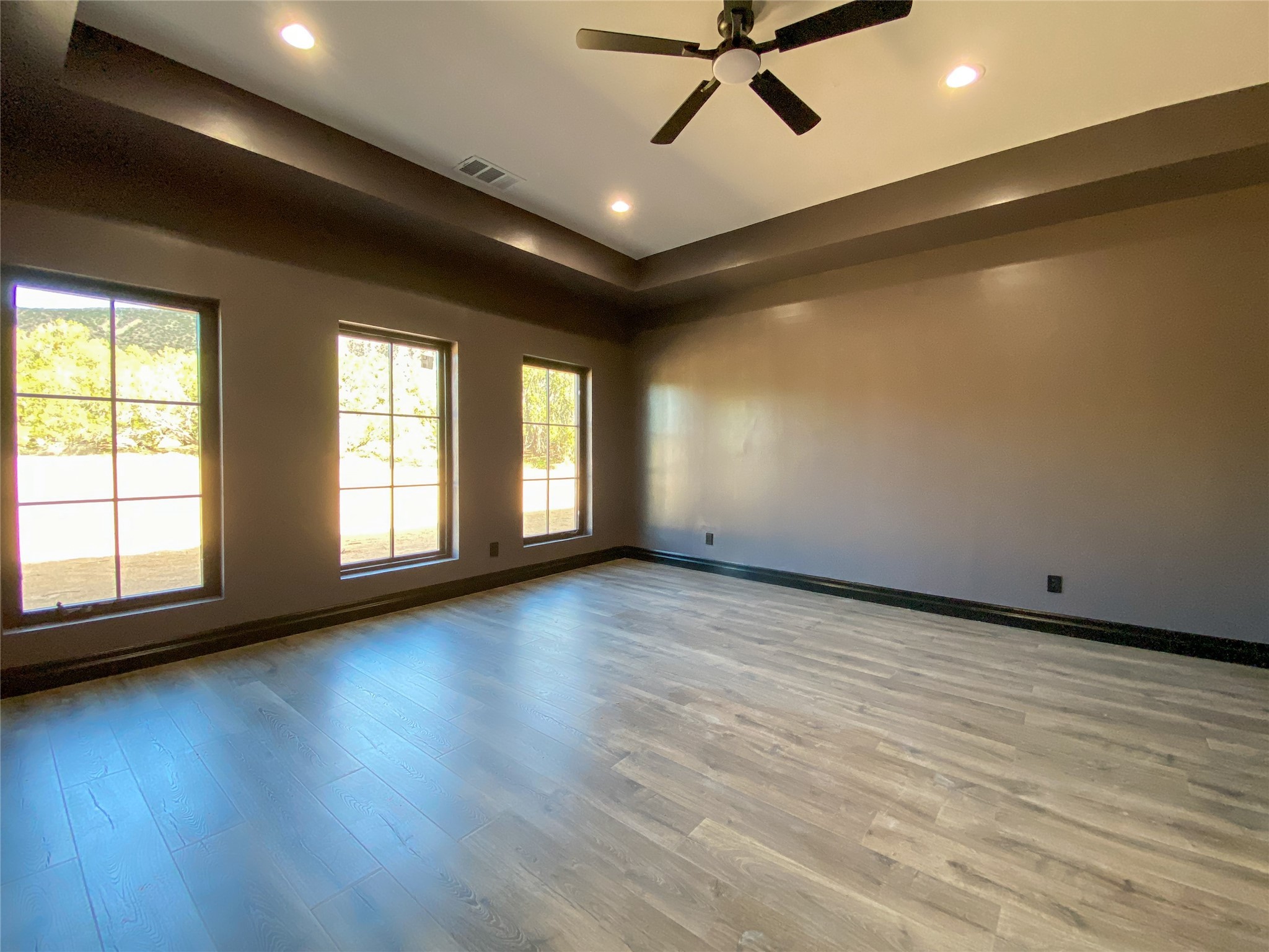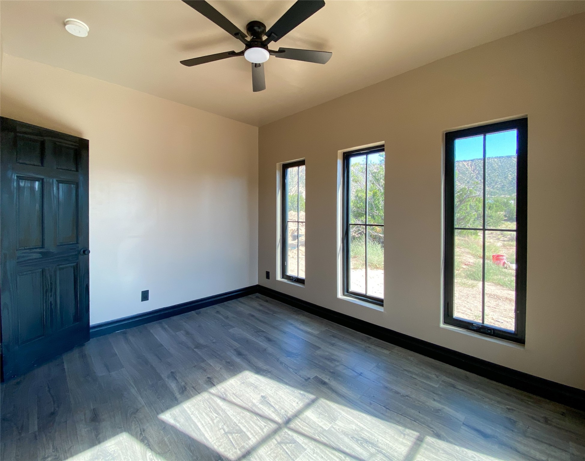 Experience modern living in this brand-new custom home set on 5 acres of sweeping New Mexico views. This sleek and stylish residence offers 2,377 sqft of thoughtfully designed space. The open-concept floor plan features high ceilings and an abundance of natural light. Blending contemporary finishes with timeless comfort. The kitchen is a showstopper, perfect for both entertaining and everyday living. The living area flows seamlessly outdoors, where panoramic skies and peaceful surroundings await. The primary suite is a private retreat with a spa-inspired bathroom, while three additional bedrooms provide flexibility for family, guests, a gym or a home office. Located in Ojo Caliente, just 30 miles from LANL and Santa Fe, this property offers the rare balance of modern convenience and rural tranquility.