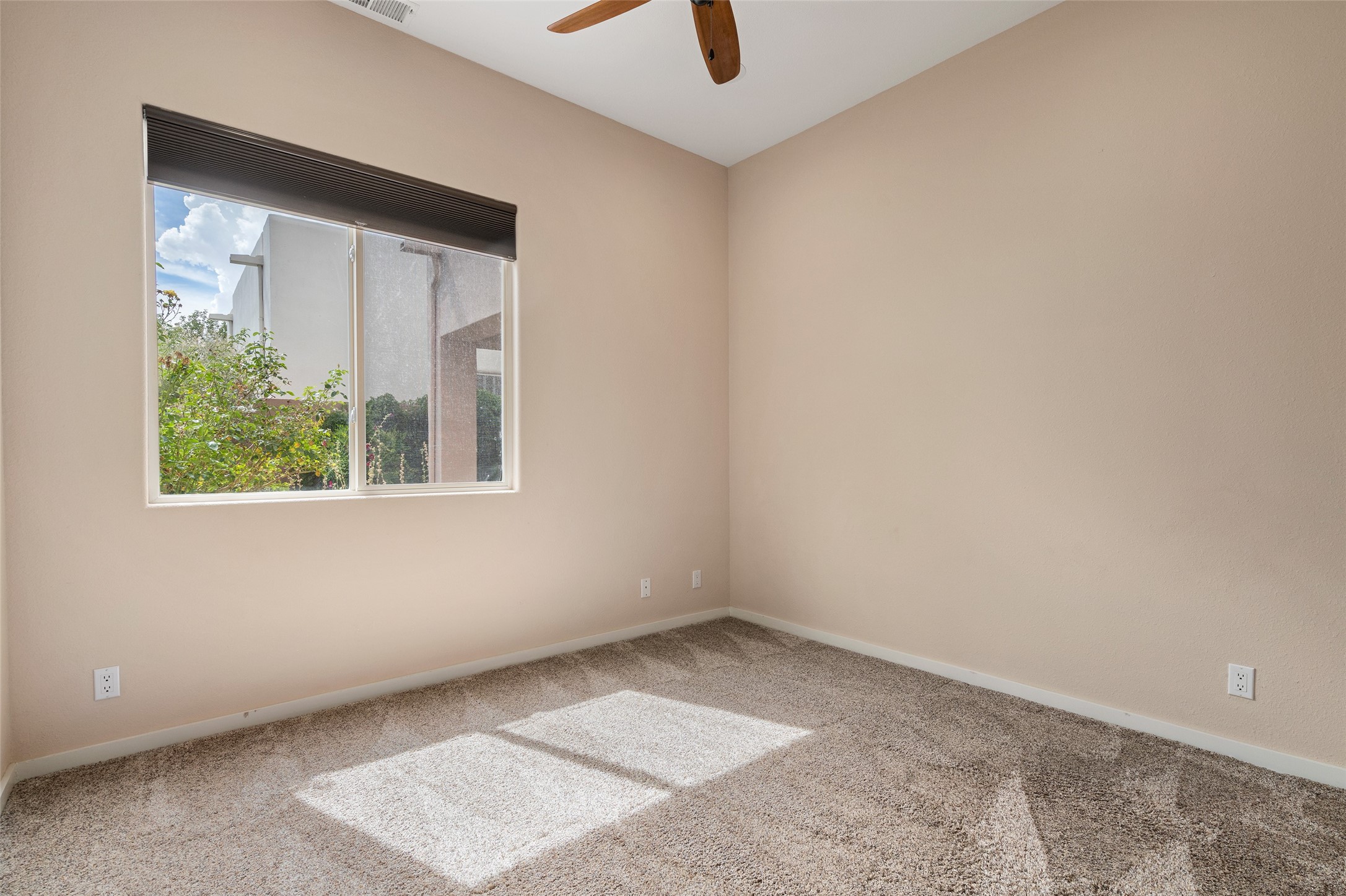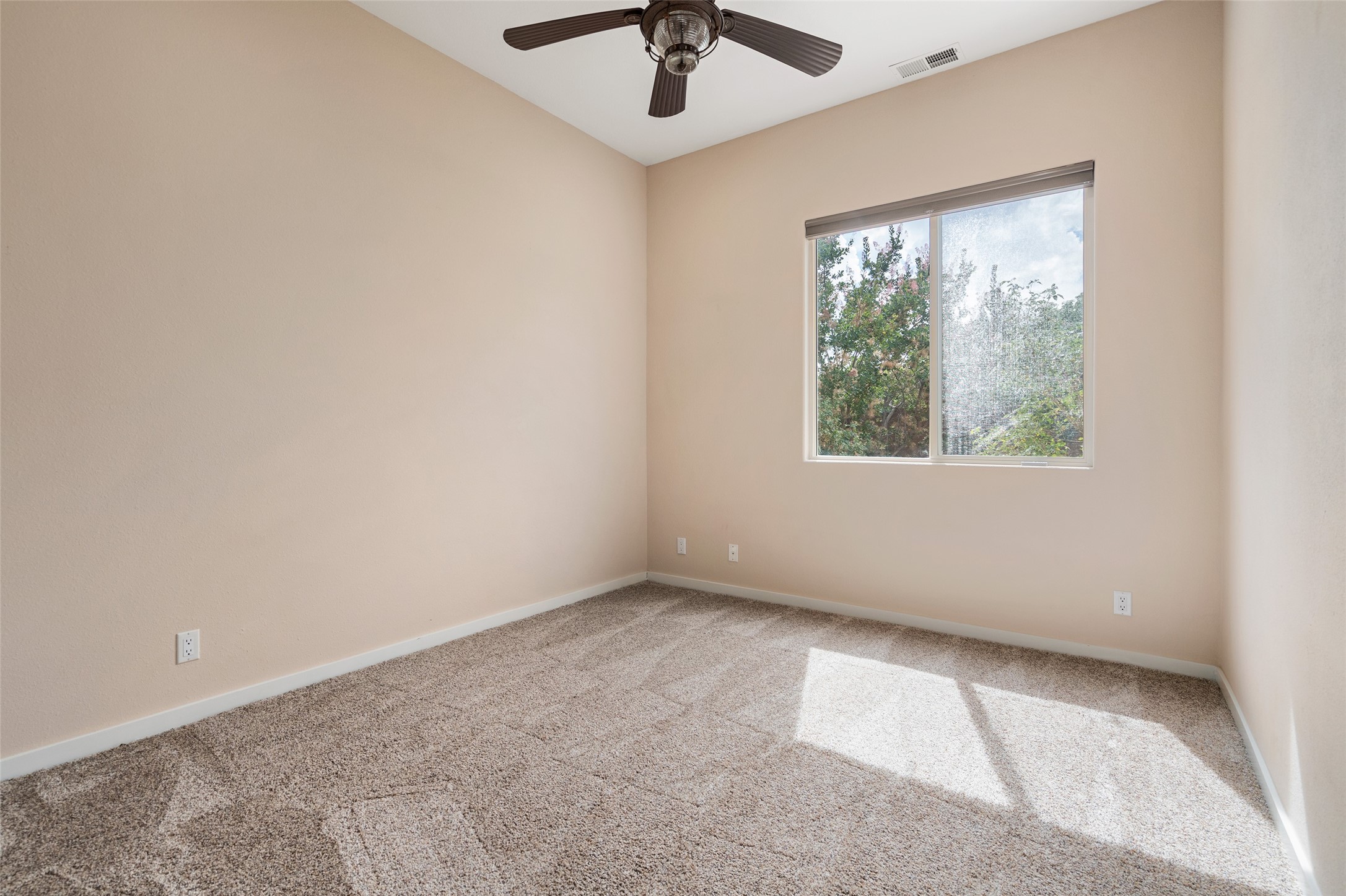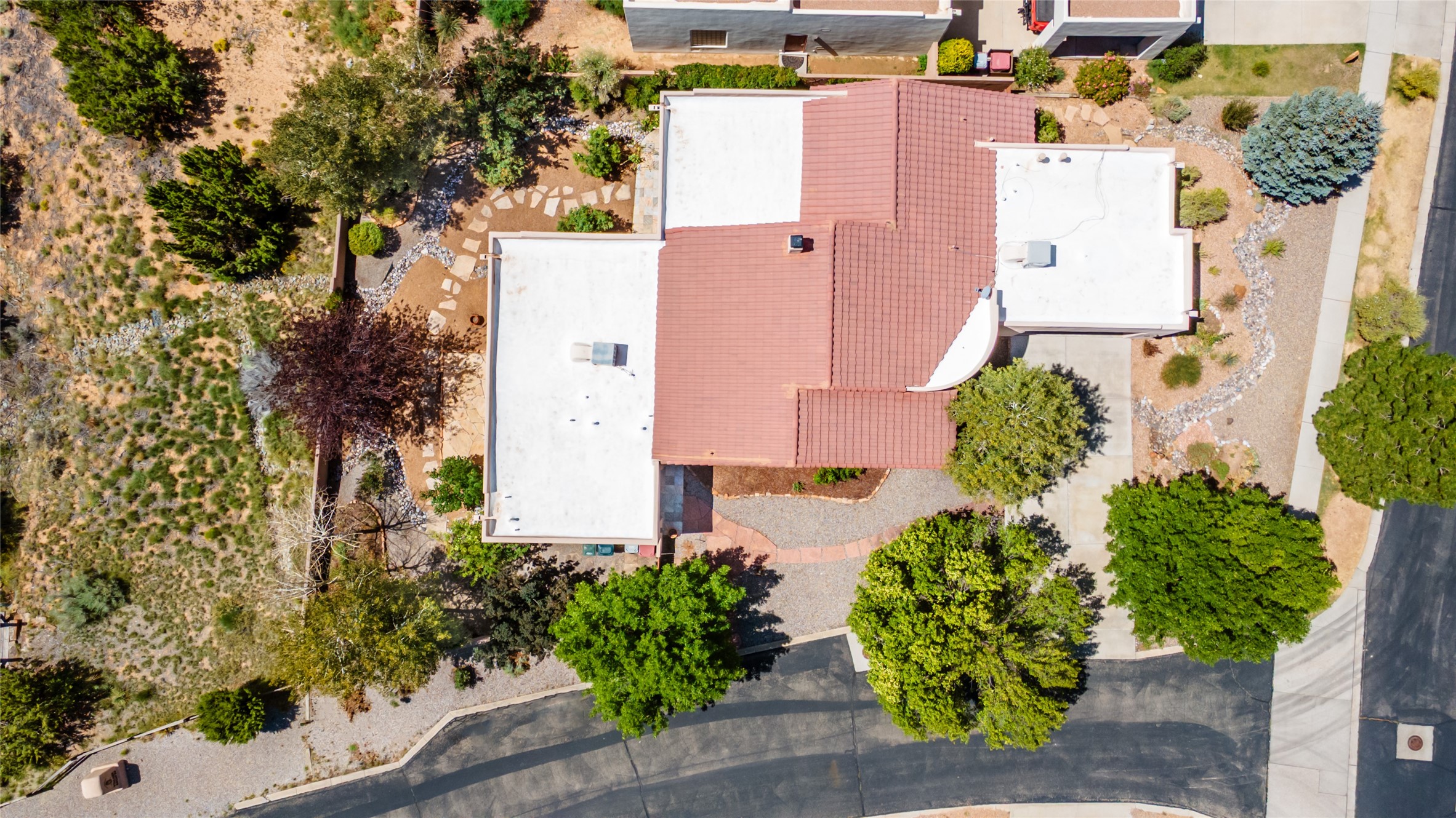 Look here: a stylish and updated home on a desirable corner lot! This immaculate single-level home has been extensively updated and shows beautifully. With over $170,000 in thoughtful renovations completed just a few years ago, the home feels modern, fresh, and move-in ready. The kitchen is a true centerpiece, featuring granite countertops, a custom tile backsplash, double ovens, a five-burner gas cooktop, under-cabinet lighting, a remodeled island, and a charming window seat. Wood-look tile flooring, bedroom carpet, and a paint refresh complement the home's warm modern-rustic style, while recessed LED lighting adds everyday brightness. The spacious primary suite is a serene retreat with a spa-like bath. You will love the separation from the other bedrooms. With four additional bedrooms--including a private ensuite with its own exterior access--the floor plan offers flexibility for guests, a studio, an in-home office, exercise room, media room and more! Outdoors, enjoy a covered portal with views of the Ortiz Mountains and thoughtfully designed landscaping that bursts with seasonal color from Virginia creepers, rose bushes, and ornamental fruit trees. All this in an unbeatable location: just 12 miles from the historic Santa Fe Plaza and only minutes to shopping and dining. The Rancho Viejo HOA enhances the neighborhood with multiple parks, vast open spaces, scenic paved trails, and well-kept surroundings protected by reasonable covenants. A home that blends style, comfort, and convenience -- and one you'll be proud to call your own.
