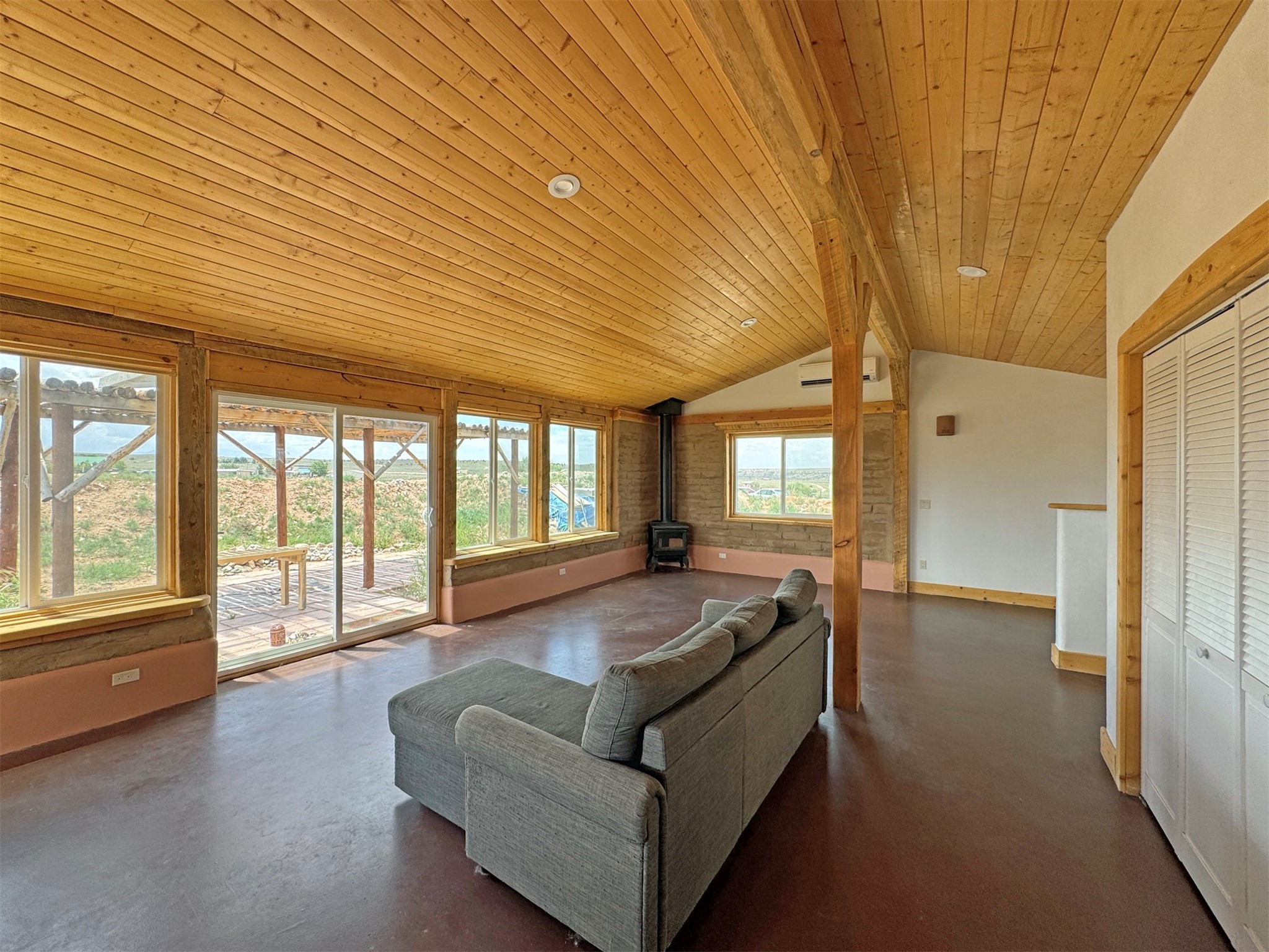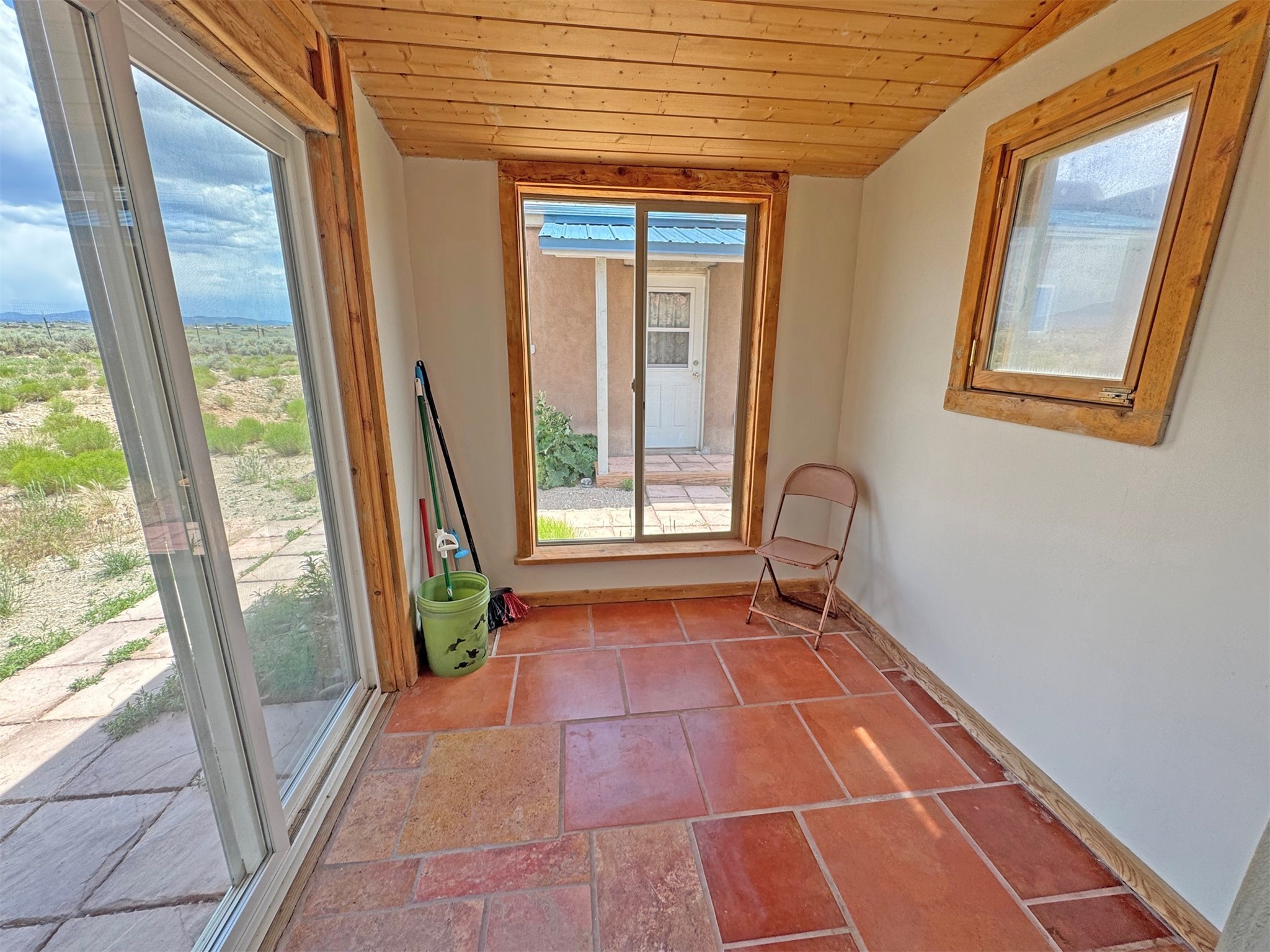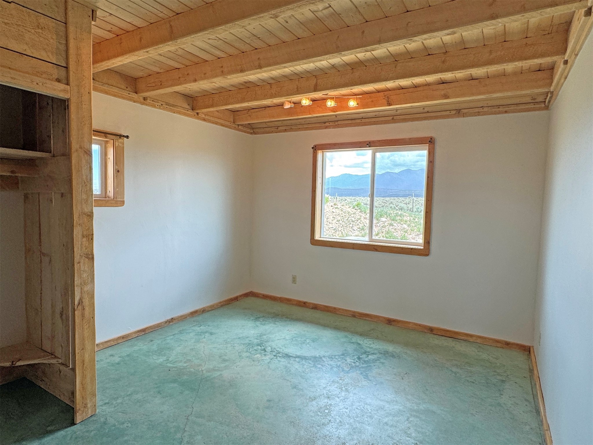 Here's a flexible property featuring two 700 square feet casitas on 2.53 unrestricted acres! Main house constructed in 2017 has entrymud room and open living/dining/kitchen areas with lots of windows framing wrap around views of sunset, Taos Mountain and Sangre deCristo Mountains. Painted concrete floors with in floor radiant heat. Pitched tongue and groove ceiling, ceiling fan and woodstovemaintain comfortable temperatures year round. Easily accessible, finished loft with cabinets provides ample storage. Cook's kitchen hasgranite tile countertops, is wired for under counter lighting, and has a propane gas range and fridge. Comfortable bedroom with T&G andbeams ceiling features a spacious ensuite bathroom with cast iron tub, personal shower and ample linen storage. Mechanical/utility roomincludes a washer which conveys with sale and storage shelving. On the north side is a sweet exposed adobe wall courtyard containinga paver stone patio and latilla ramada, perfect for dining al fresco and star gazing. Pitched Propanel roof delivers water catchment for a1700 gallon buried cistern in lieu of conventional well. Seller typically orders supplemental water 1-2 times a year for a cost ofapproximately $230 each delivery of 1700 gallons. Exterior siding is a combination of stucco and Cape Cod wood siding. Guest houseis 714 square feet of flexible space built in 2023 featuring kitchenette with fridge, full bath, wood stove, exposed adobes, and vaultedT&G ceiling with beams and columns. Comfortable full bathroom with linen storage, tub and shower. This structure is heated and cooledwith a heat pump mini split system. This space could serve as a studio/workshop, studio apartment rental, or additional property livingspace. Painted cement floors and wrap around windows with mountain views. Entertain outside with a latilla ramada over paver stonepatio. Propanel metal shed roof is plumbed for cistern catchment. Landscape berms cradle both structures, adding privacy and providinga canvass for gardeners. Taosnet broadband Internet in both houses (Kit Carson fiber optic in Tune Drive); cell service on site. Locatedon a rise with stellar 360 degree views and easy walk to the Rio Grande Gorge and John Dunn bridge, Mamby/Stagecoach and BlackRock springs. GPS: 36.52508202679919, -05.70209218650817. Approximately one acre around the structures is fully fence with a farmgate at the entrance. Wood board fencing provides additional privacy. Circle drive and ample guest parking. Property could besubdivided into three separate parcels. Electric transformer has been installed in lower part of property for future development. Allconstruction county permitted with C/Os in Associated Documents. Seller has left firewood, Colorado red flagstone, adobe bricks andnew generator in the original box for the buyer. Approximately twenty minutes from Taos Plaza and half an hour from Taos Ski Valley.Only half a mile off the paved road. This quiet, peaceful property could be developed into three residential properties, a family compound, investment rentals, or horse property. So many options for this creative, energy efficient property built with love!