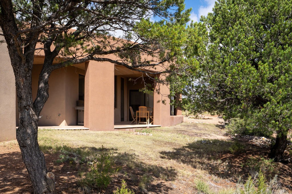 Step into this extraordinary Las Campanas residence where modern design and tranquility adjoin. Nestled on 2.3 acres, this 3-bedroom 3 bath home exemplifies sophistication and style. Upon entering, you are greeted by a dramatic gallery hall with luxurious stone water feature. The main room floods with natural light, highlighting an inviting open-concept floor plan. An expansive gourmet kitchen offers a well-designed central island and cozy sitting area, a footprint that is both spacious and comfortable. High-end appliances and design features throughout the home are accented by tall ceilings and clean lines. The primary bedroom features a fireplace, two expansive walk-in closets, and a luxury bathroom with dual vanities, soaking tub, and walk-in shower. The guest wing contains two spacious guest rooms, each with ensuite bath, providing exceptional comfort and privacy for visitors. Entertaining is effortless with a patio designed for outdoor dining and leisure, framed by courtyard walls with space to dine al fresco while taking in the tranquil surroundings. A spacious 3-car garage adds to the exceptional features of the home. Landscaping is in need of a refresh with an interior courtyard that offers tremendous potential. Seller's golf membership to the Club at Las Campanas is available to the purchaser of the property at an additional cost.