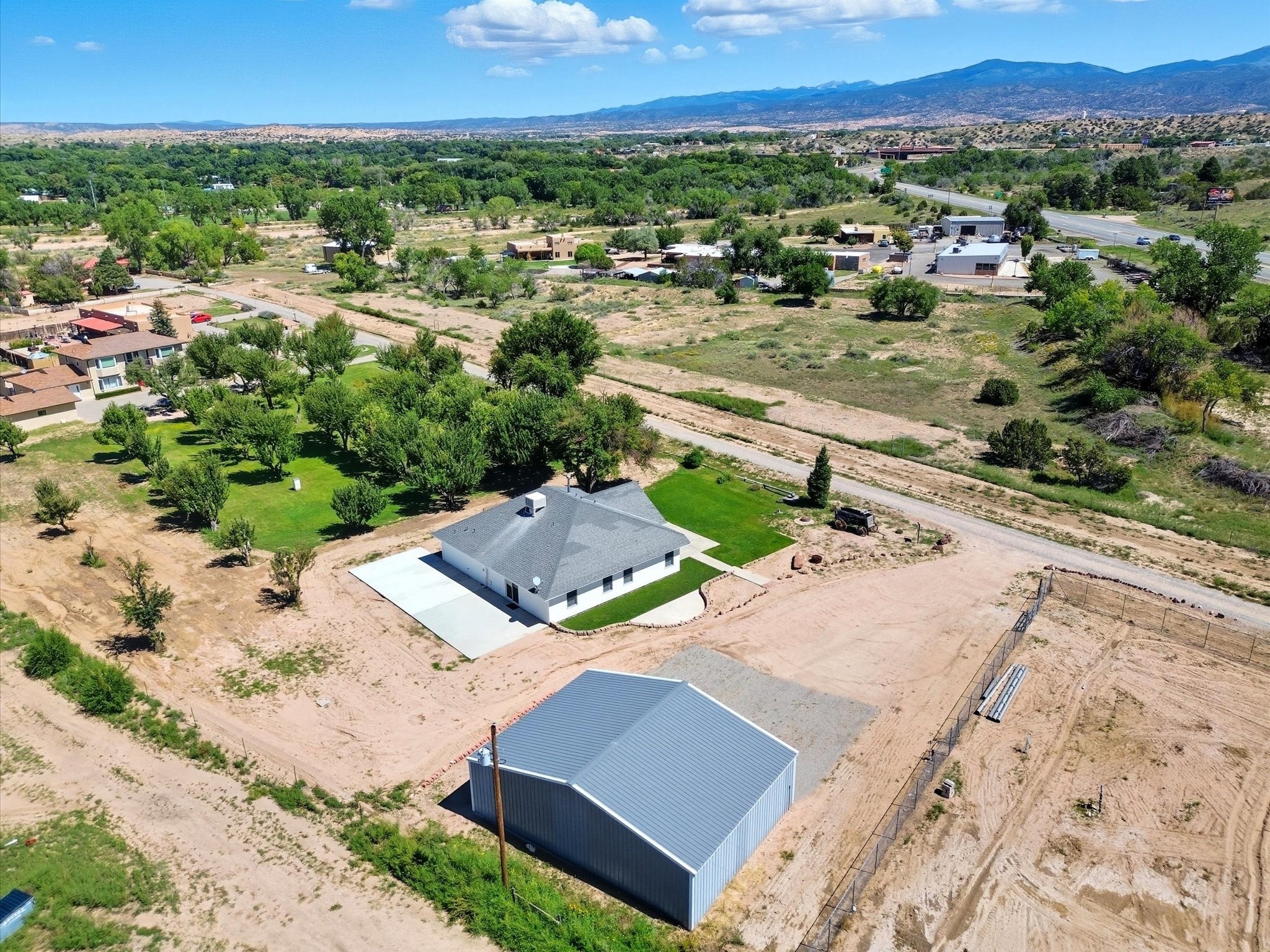 INCREDIBLE FIND - 0.75 acre property w/quality dream home and separate 1,206 sq ft workshop building w/3 garage doors (up to 6 car tandem). Found just 20 minutes from either Santa Fe plaza or Los Alamos National Labs in the coveted & fertile Pojoaque valley complete w/irrigation water rights. Special features of the home incl: new roof (installation 9/2025), newly painted interior & exterior, energy-saving Pella thermal windows, in-floor radiant heat for cozy winter days, 2 low-maintenance gas diamond plaster kiva fireplaces, tile or new high-quality engineered wood flooring throughout (no carpet!), updated baths with a Dream Style Shower, and a total kitchen remodel w/new cabinetry | stainless steel appliances | granite slab countertops. *Also available on 1.5 acres (including adjacent .75 acre lot) for September 2025 appraised value of $845,000.*