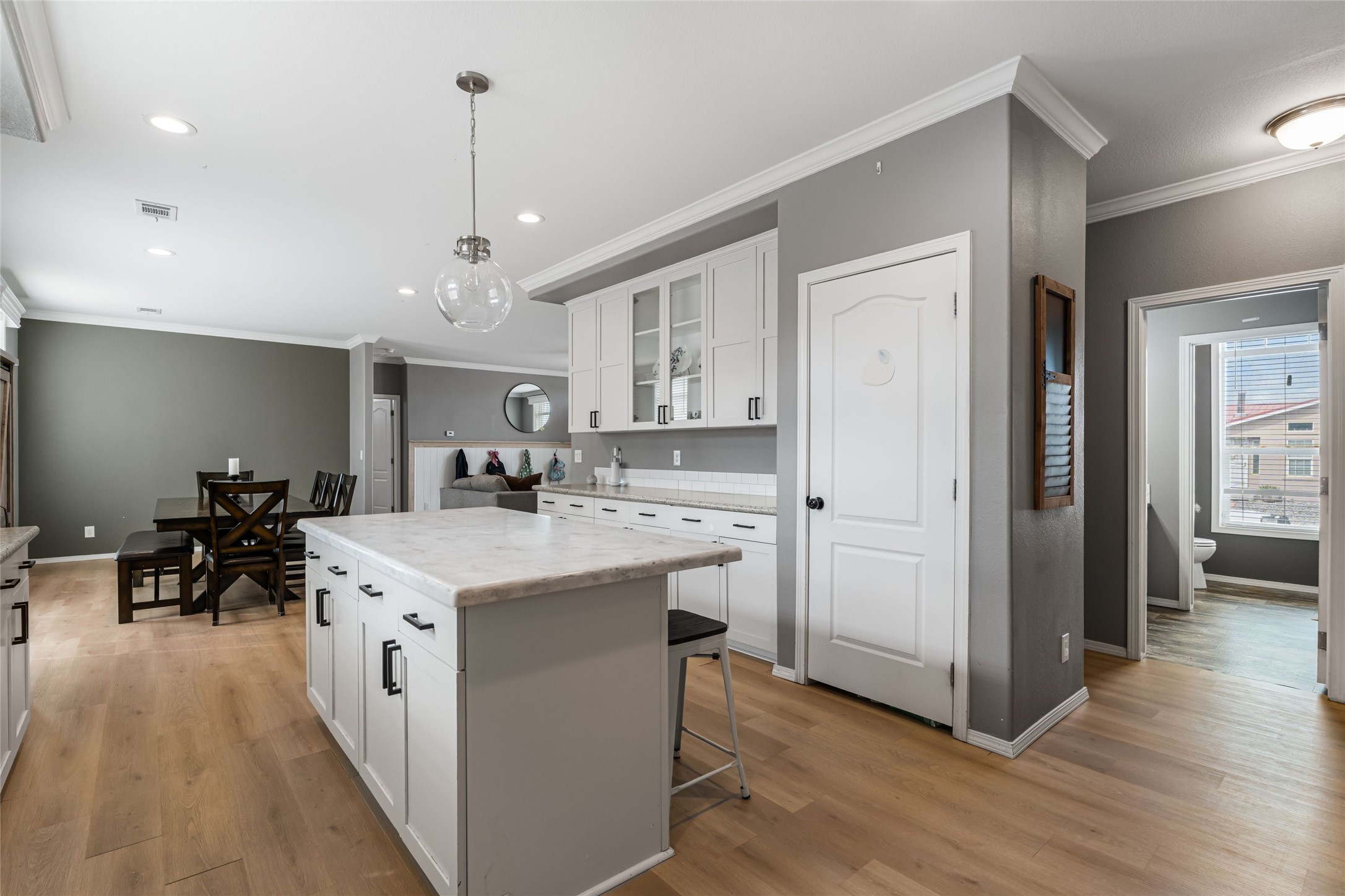 Updated 3-bedroom, 2-bath modular home sited on a corner lot with a permanent foundation and numerous seller improvements, this residence offers both style and functionality. Step inside to discover a bright and inviting open floor plan, featuring new luxury vinyl plank flooring. The kitchen showcases crisp white cabinets, modern appliances, and a spacious center island with seating for four. The built-in hutch and adjacent dining area provide a welcoming atmosphere for family meals and gatherings, with easy access to the backyard for outdoor entertaining. The primary bedroom has clerestory windows which fill the space with natural light and an oversized walk-in closet for ample storage. The remodeled en-suite bath has dual sinks and soaking tub, perfect for unwinding after a long day. Two additional guest bedrooms share a well-appointed bath, making this home ideal for families or guests. The second living area offers versatile options as a den, media room, or play area, catering to your lifestyle needs. Outside, enjoy the side pergola and covered outdoor dining area, perfect for alfresco dining and entertaining. The large side patio and garden areas provide ample opportunities for outdoor pursuits. Also has a retaining wall and fence. Located in the heart of Espaola with the added benefit of being equidistant from Santa Fe and Los Alamos.