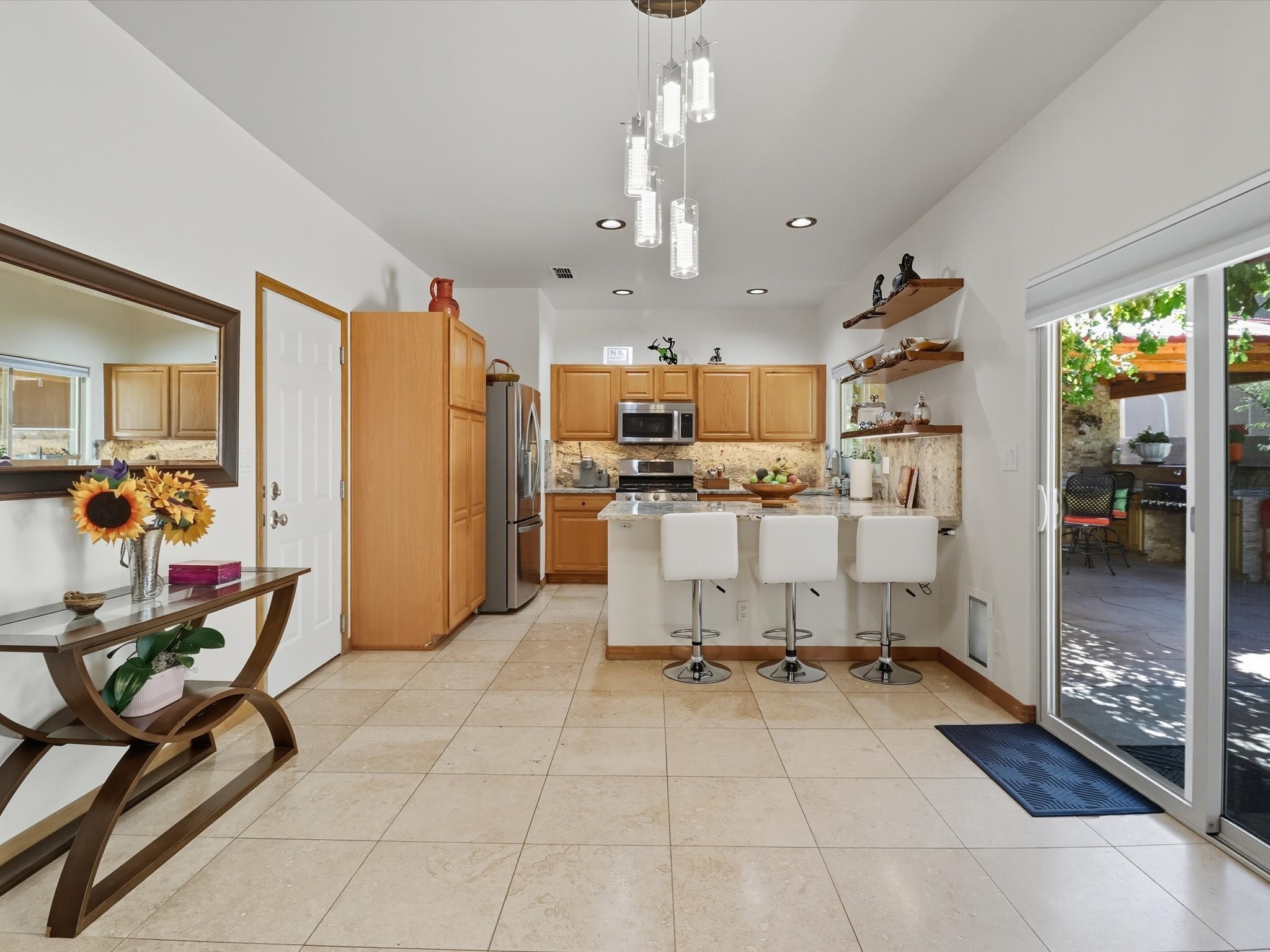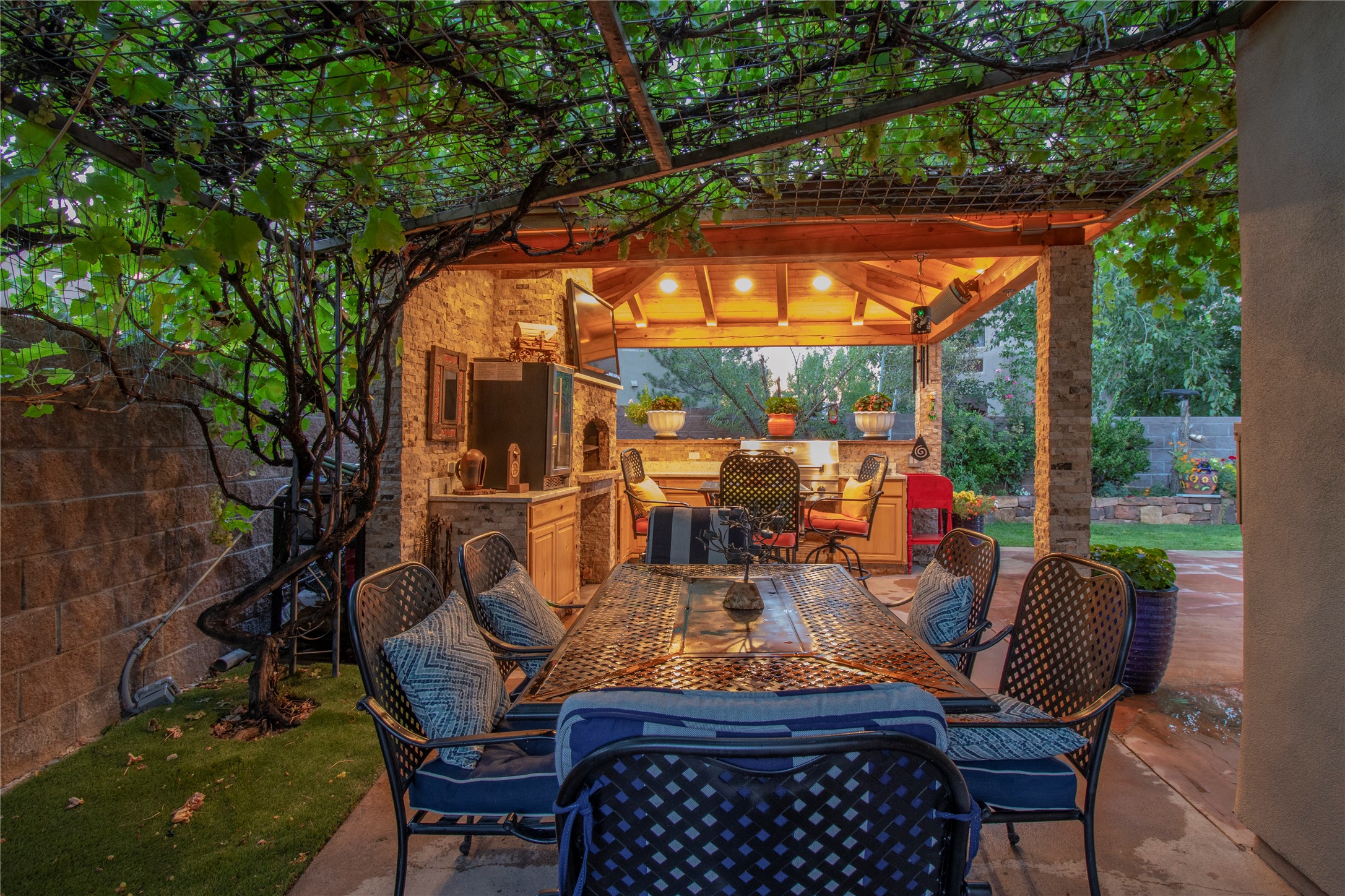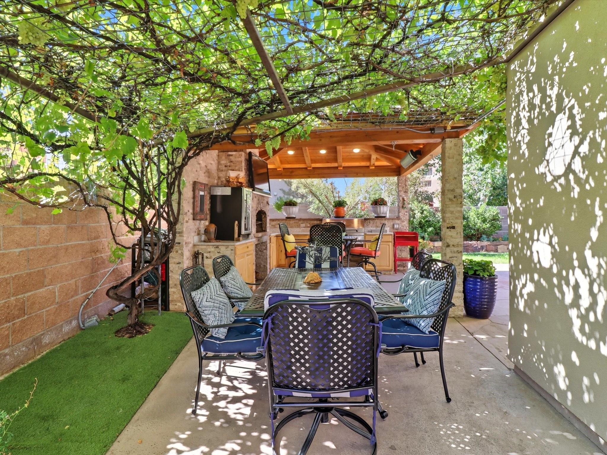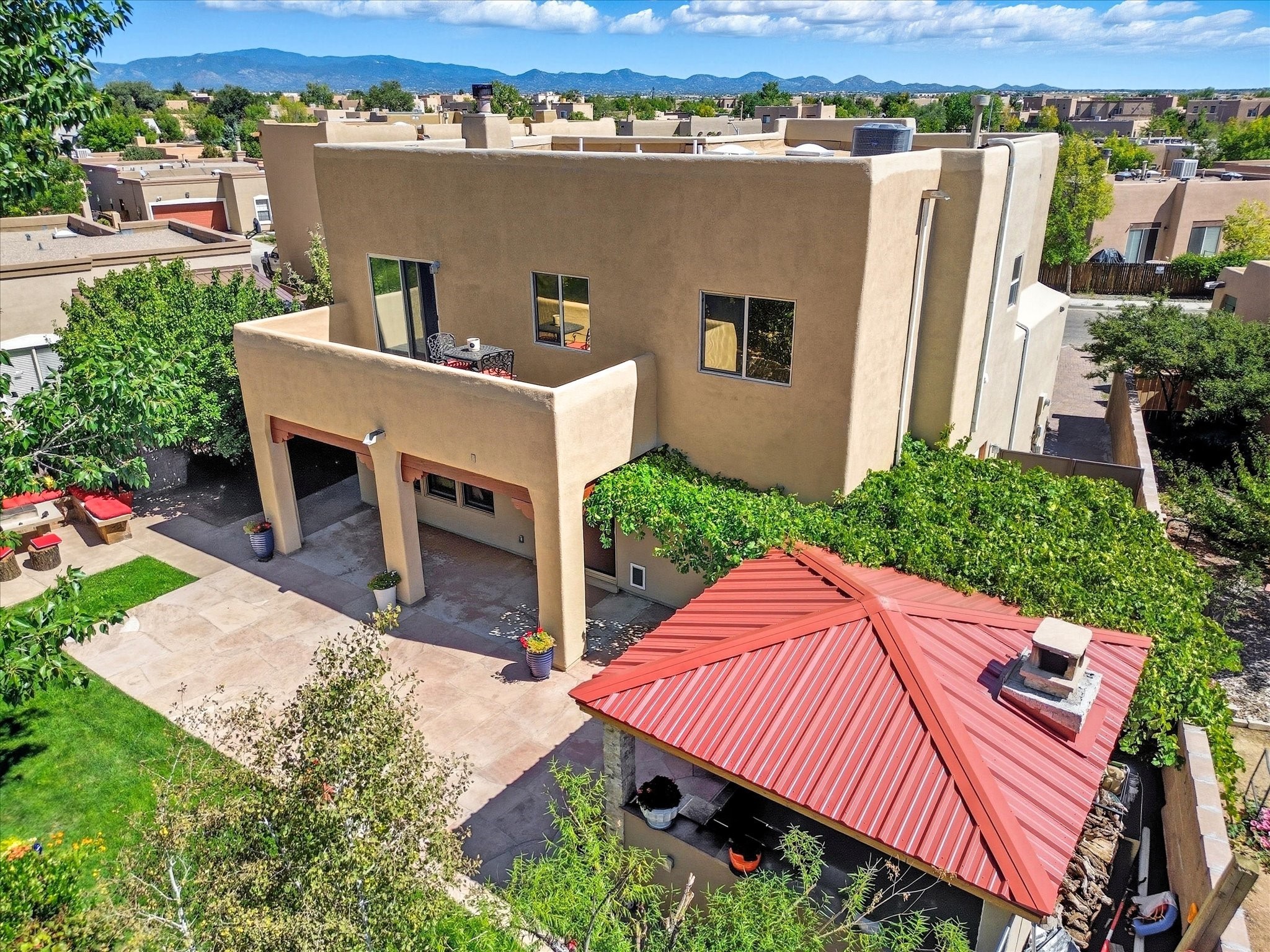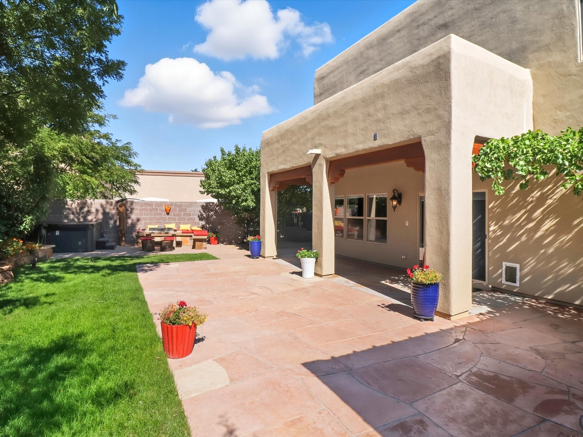 Nestled on a quiet street, this beautiful two-story home offers the perfect blend of comfort, functionality, and charm--ideal for a starting family or a growing one. Step inside to an inviting open floor plan that seamlessly connects the main living spaces. The main level features a dedicated office, perfect for remote work or study, and a warm, welcoming living area with a traditional Kiva fireplace to keep you cozy during winter nights.The kitchen is thoughtfully designed with a breakfast counter, stainless steel appliances, and plenty of space for everyday meals and gatherings. From here, step out to the beautifully landscaped backyard, complete with a covered portal, ample seating for guests, an outdoor hot tub, Gas Fire table and a charming gazebo with heating elements, outdoor speakers and ambient lighting --perfect for BBQ nights or morning tea with family and friends. Upstairs, you'll find four spacious bedrooms, including the primary suite, a private retreat with an attached bathroom featuring a his-and-her sink, an enclosed shower, and a walk-in closet. A private balcony extends from the suite, offering the perfect spot to enjoy your morning coffee while soaking in the fresh air.Blending modern convenience with inviting outdoor spaces, this home is truly designed for both relaxation and entertaining.