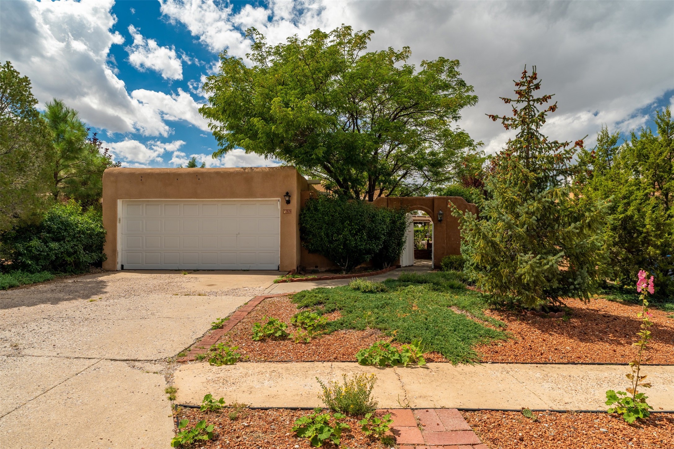 Patio home with two bedrooms and two bathrooms, plus a bonus room off the main living area that could be used as a den or office. The living room has a high ceiling and lots of light. Formal dining area adjacent to the kitchen that leads to the spacious outdoor area with covered portal, patio space and the backyard area which backs up to the Las Estancias Park. The primary bedroom is spacious and the second bedroom is at the opposite side of the hall. An oversized garage includes built-in cabinetry for storage and an additional freezer that conveys with the home. Enjoy outdoor entertaining or quiet evenings in the private gated courtyard. A perfect blend of comfort, functionality, and outdoor living!