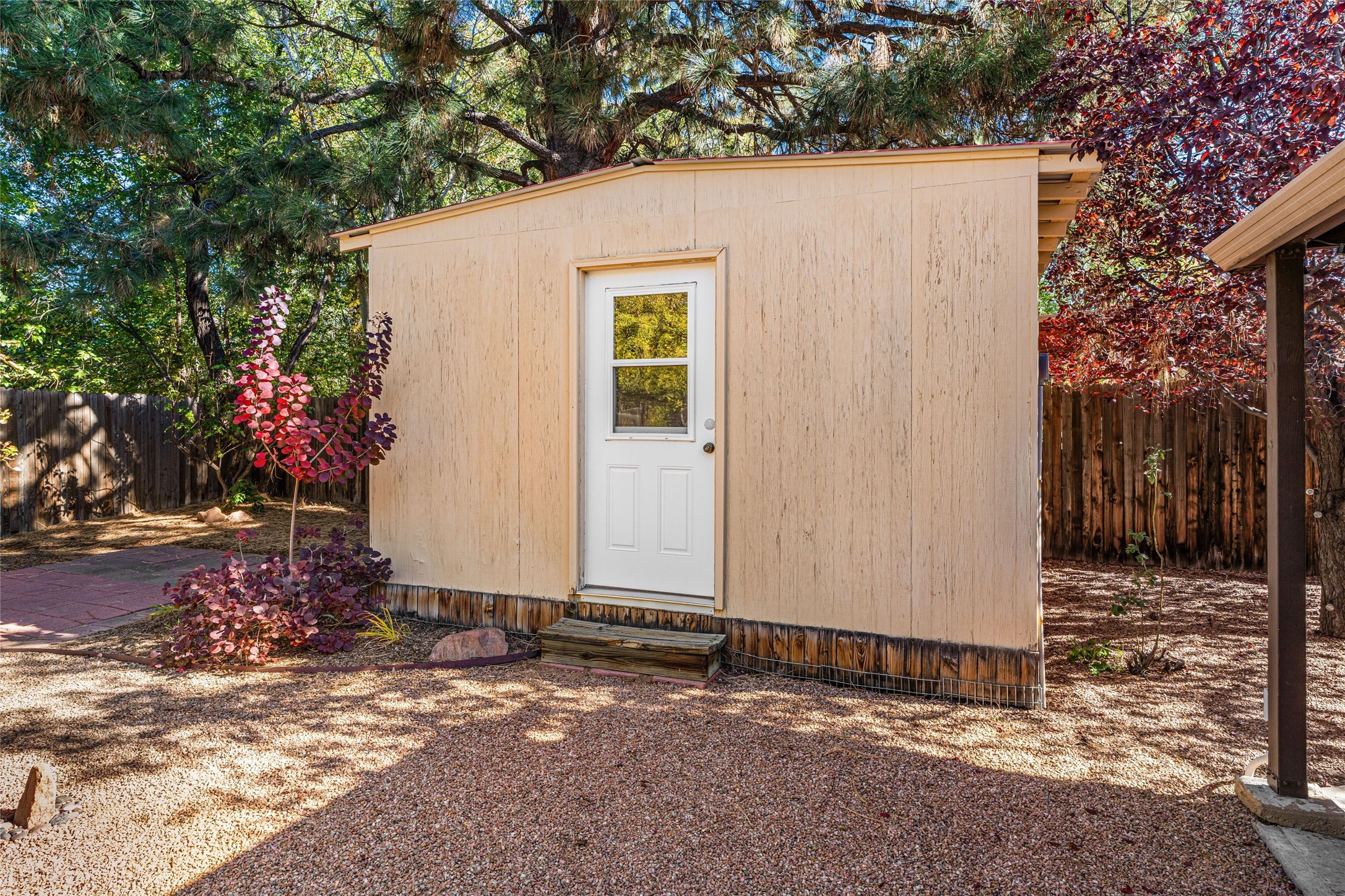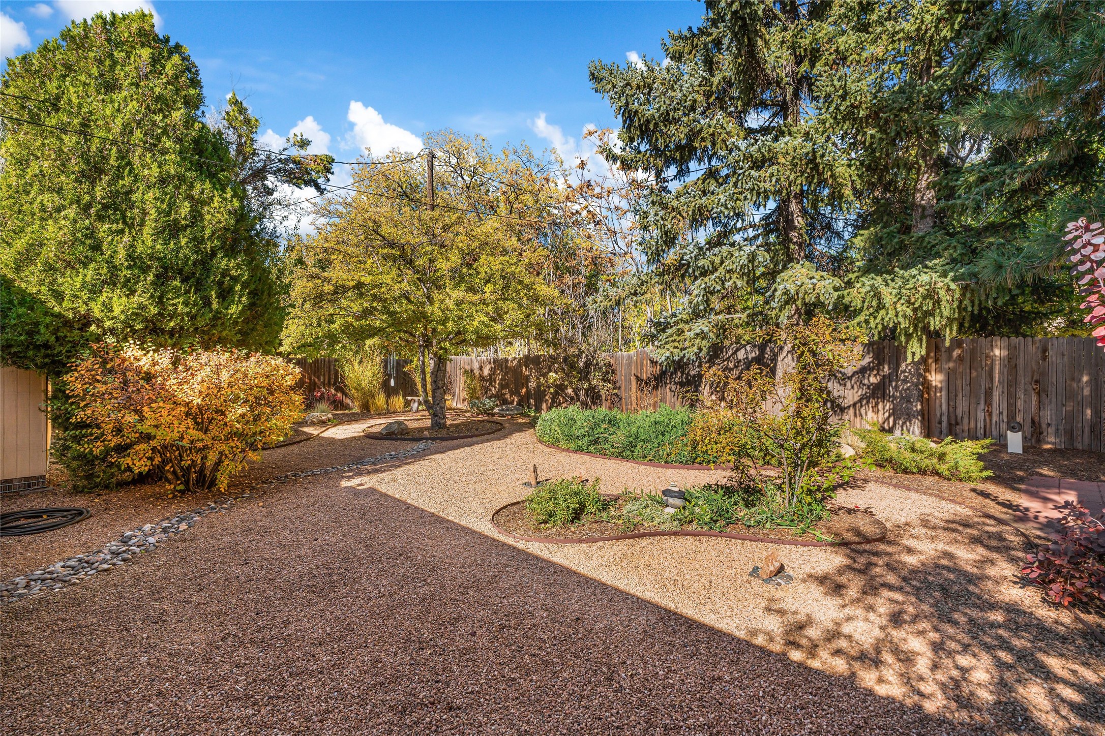 Beautifully cared for Stamm home blending mid-century charm with thoughtful updates. This inviting 3-bedroom, 2-bath residence features original wood cabinetry and oak floors, skylights throughout, and a spacious great room with French doors leading to a private backyard. The primary suite includes a Japanese warm-water bidet and an updated bath. An insulated studio with power is ideal for art or office use. Recent improvements include a new roof, HVAC with UV filtration, a kitchen remodel with a gas range, updated baths, and fresh stucco and paint. Mature evergreens, drip-irrigated landscaping, and a quiet central location near Herb Martinez Park and the Arroyo Chamiso trails make this a truly special property.