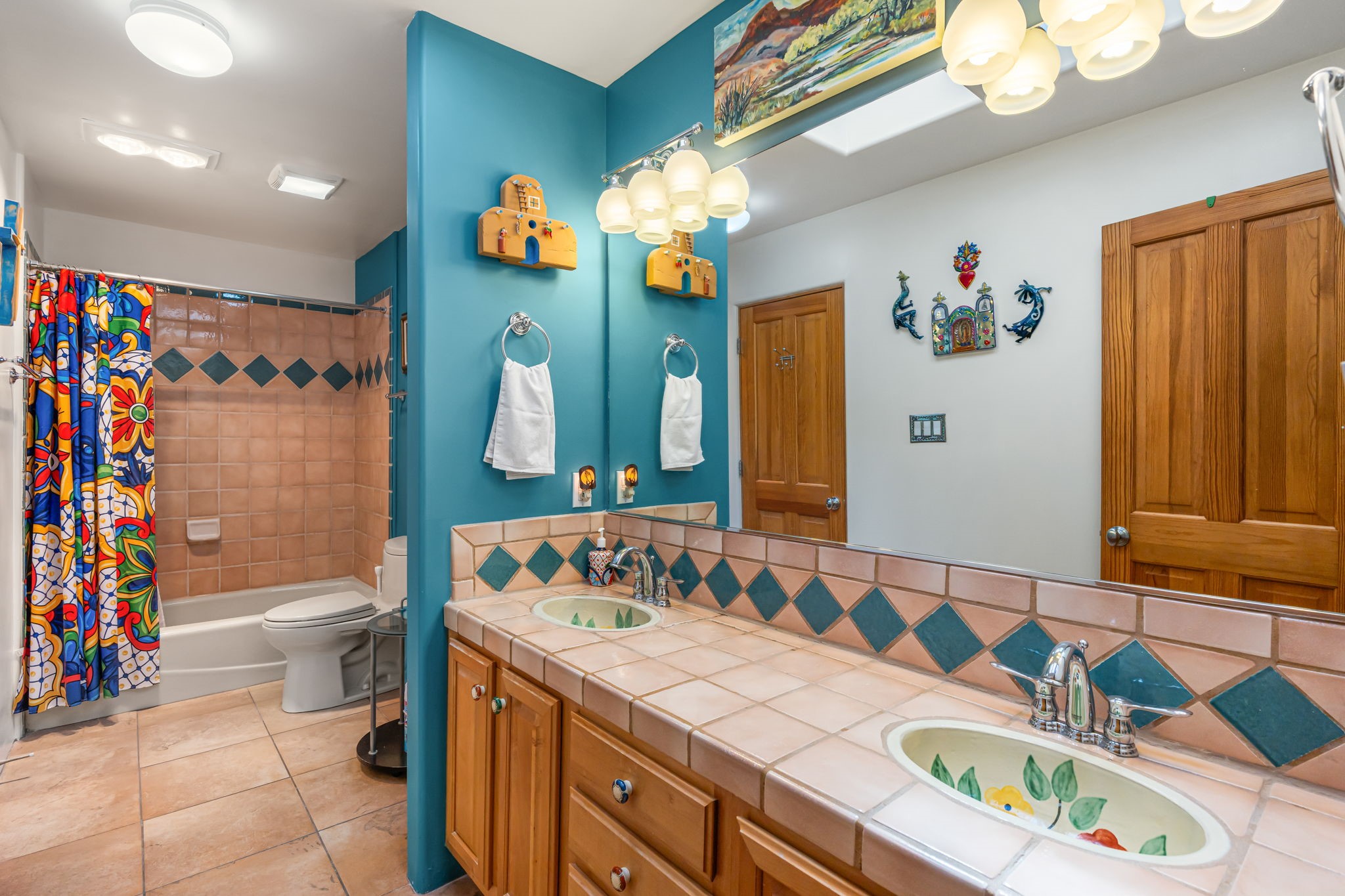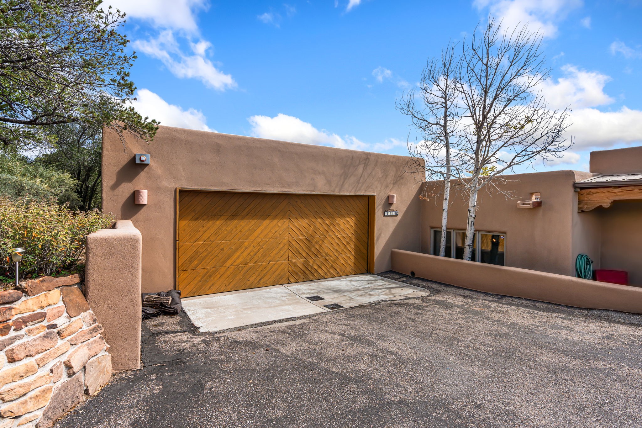 Very rarely, there is a property that combines incredible views from almost every room, ultimate Santa Fe style, modern amenities and an unbeatable location! 5 minutes from downtown, this 3 bed 3 bath custom build is the complete package!Enter the hand carved front doors and be greeted by dramatic views straight away. From here, step into the grand salon with soaring ceilings, a kiva fireplace and stately hand-troweled plaster. The dining room features a drop ceiling and recessed lighting for the most intimate ambience. You'll be serving your happy guests in style from the updated chef's kitchen -featuring Silestone quartz countertops, stainless appliances, a playful handpainted tile backsplash, and a sleek modern design. Almost every room in the home has house outdoor access for that seamless indoor-outdoor living. The views from the portal will be sure to impress: city lights at night and Sangre De Cristo-facing sunsets for that gorgeous Santa Fe color palette. The generous primary suite has its own kiva fireplace, outdoor portal, and a sumptuous bath - with oversized pebble shower, dedicated water closet, deep-soaking tub and dual sinks. The two guest rooms share a large full bath. Recent upgrades (2022) include a new foam and gravel roof with a 10-year warranty, plaster walls in the main living areas, latilla ceilings and 40 new recessed lights in dining and guest rooms, a new alarm system, and an outdoor kiva fireplace flanked by bancos. The oversized 2-car garage has direct entry into the kitchen and dedicated laundry area for easy access. With plenty of storage, this home is perfect for a primary residence, or make it your Santa Fe getaway! Don't miss this opportunity to own all the best Santa Fe has to offer! Schedule a showing today!
