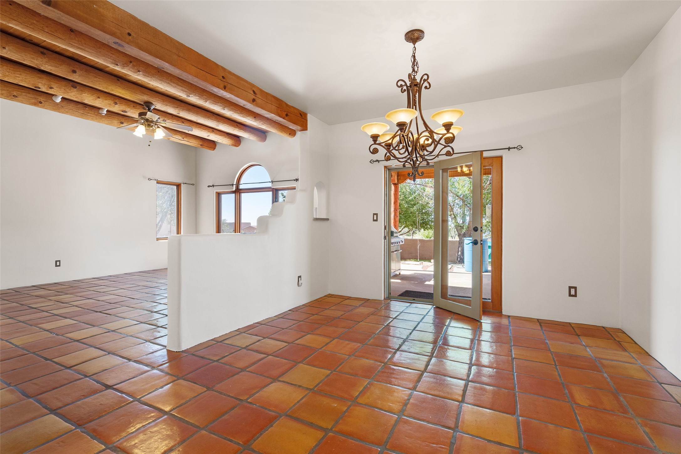 Located in the highly desirable Eldorado community just minutes from Santa Fe, 3-bedroom, 3-bath home perfectly blends classic Santa Fe style with thoughtful modern updates. From its warm Saltillo tile floors to its cork-floored bedrooms--ideal for comfort and allergy sensitivity--every detail invites relaxed, functional living.A standout feature of the home is the nearly 1,100 square feet of versatile flex space with its own private entrance--ideal for a studio, home office, guest suite, or creative retreat.The updated kitchen will impress, featuring a high-end Bluestar gas range, Kenmore Elite refrigerator, and stainless dishwasher. The guest and flex-space bathrooms have also been tastefully renovated, offering both style and comfort. A whole-house water filtration system adds an extra layer of wellness and convenience.Outdoors, mature landscaping frames a private front courtyard and a fully walled backyard oasis, where newly built decks and a relaxing hot tub create the perfect setting for entertaining or unwinding under the stars.For those who value space and storage, the property includes a rare, RV garage--approximately 25' x 40'--in addition to 3 additional car bays, offering ample room for vehicles, projects, or recreational gear.Living in Eldorado means access to miles of scenic walking paths, a welcoming community center, pool, tennis courts, and more--all within a vibrant neighborhood that embodies the best of Santa Fe living.This home is more than just a place to live--it's an inviting canvas for your lifestyle.