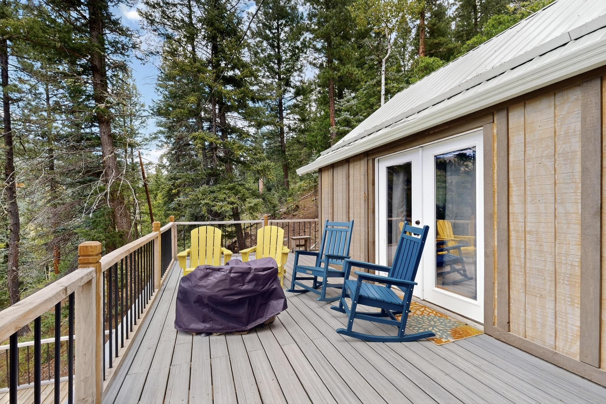 Nestled in the heart of the 1.6-million-acre Santa Fe National Forest, Vida Bonita Pecos offers the perfect blend of luxury and remote wilderness. Located just steps away from the world-famous Pecos River, tranquil Cowles ponds and scenic trails, our secluded property invites you to experience nature like never before--without sacrificing comfort. 4 deeded properties being sold as one Estate consisting of 3 cabins: The Ponderosa (Main cabin) 3 stories, 6 bedrooms, 4 bathrooms, approx. 3500 sq.ft. Laundry on main and lower level. Well and Septic. The Collins Cabin (original home) 3 story, 2 bed 2 baths, full walk out basement with laundry (could be additional living space with own entry), well and septic. Tiny Cabin (shed conversion) sleeps 2. new deck. The Crestview 2 story (recent addition to estate, formerly-19 Pecos Lane) 3 bedrooms, 3 baths. 2 additional loft sleeping areas, laundry and private fishing pond, well and septic. Twin Pines (duplex) 1 bed 1 bath each unit w/ kitchenette. Green house and storage. Retro "glamping Camper" Sleeps 3, decking and water and electric. Vida Bonita Pecos is a turnkey mountain retreat that blends rustic charm with modern convenience. Fully reimagined and meticulously renovated, this property offers buyers a rare opportunity to own not only a private sanctuary, but also a thriving vacation rental business in Northern New Mexico.