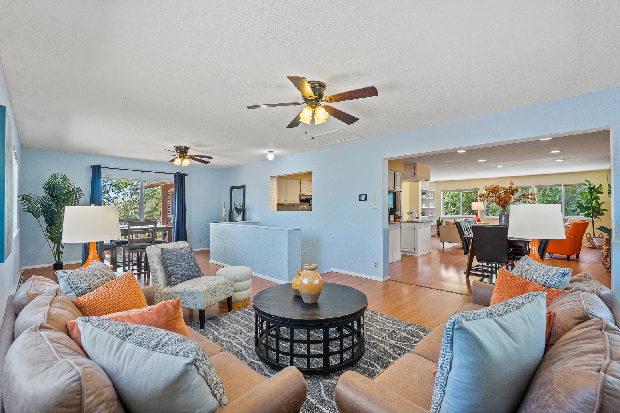 Sellers are offering a $7,500 closing cost credit for any offers closing by 12/31/25. Welcome to this charming split-level home in North Mesa. A unique split-level design, offering a sense of character and style. Ascending the stairs to the main living area, you'll be greeted by a spacious and inviting space. The large open living and dining room awaits, featuring a wall of windows that flood the space with natural light. Built-in bookshelves add a touch of elegance, while the brick gas fireplace with a tile hearth creates a cozy focal point, perfect for gatherings with family and friends. In the center of the home is the Kitchen with white painted cabinets adorned with chrome hardware, tile flooring, and a stylish tile backsplash complemented by quartz countertops. The kitchen also features a convenient bar seating peninsula, relocated/installed new electrical outlets, new refrigerator/icemaker wall outlet box with water shut off, and a new kitchen faucet. The family room is bathed in sunlight streaming through numerous windows. With access to the deck and A huge fenced backyard with mature trees and low-maintenance landscaping. On this level, you'll also find two generously sized guest bedrooms and a full guest bath, complete with a single sink vanity and charming vintage tiling throughout. The primary en-suite with mountain views, features two closets and a bathroom with a single sink vanity and a walk-in shower. Venturing downstairs, you'll discover a large bonus room with a newly added oversized closet with lighting and an interior wall with a door to close off space from the stairs and laundry room. There's two more guest bedrooms and a guest bath, an open space perfect for an office and a spacious laundry room, equipped with a washer and dryer complete the lower level. Brand new Energy Star-rated Natural Gas Combination Boiler with tankless water heater, including complete system repipe, and Programmable Smart Thermostats.