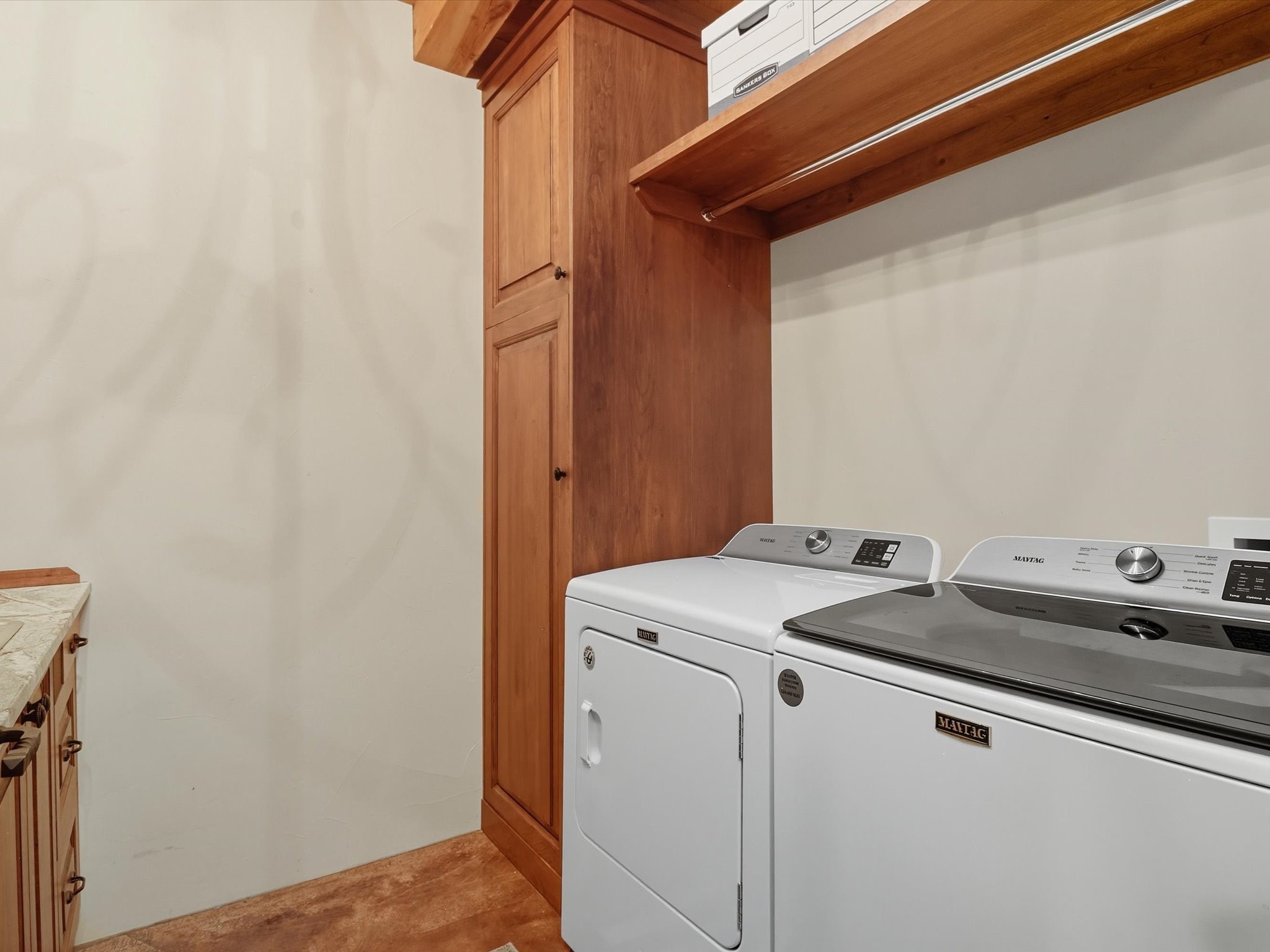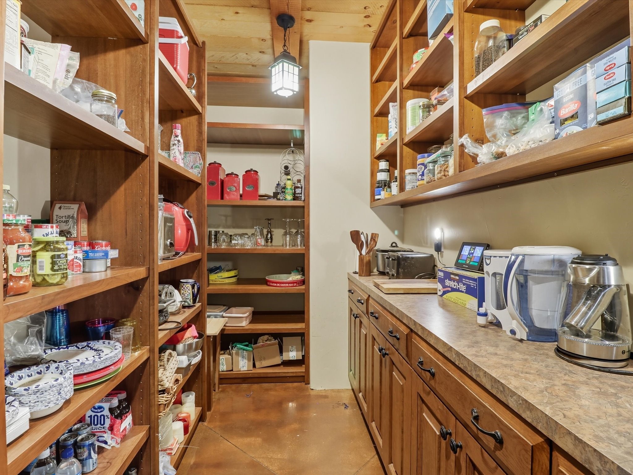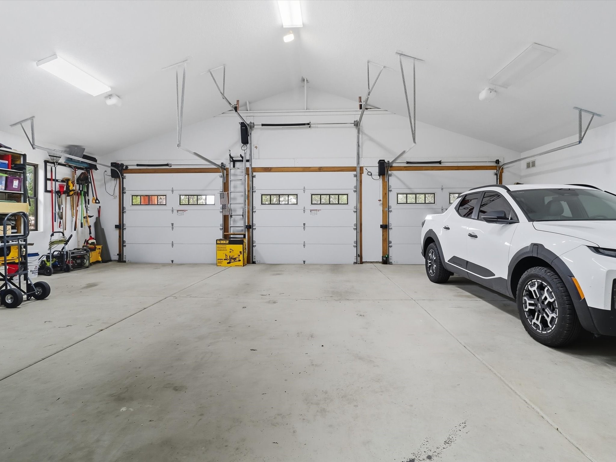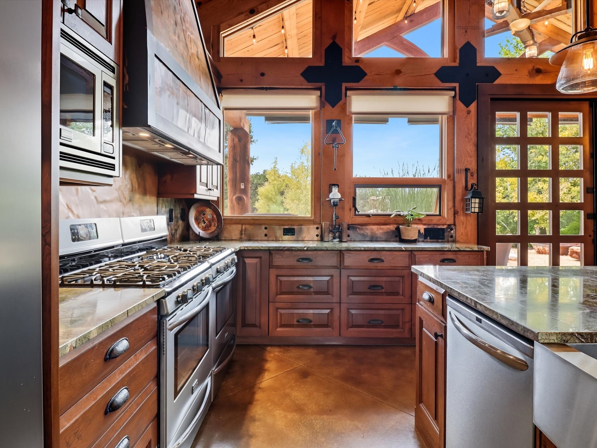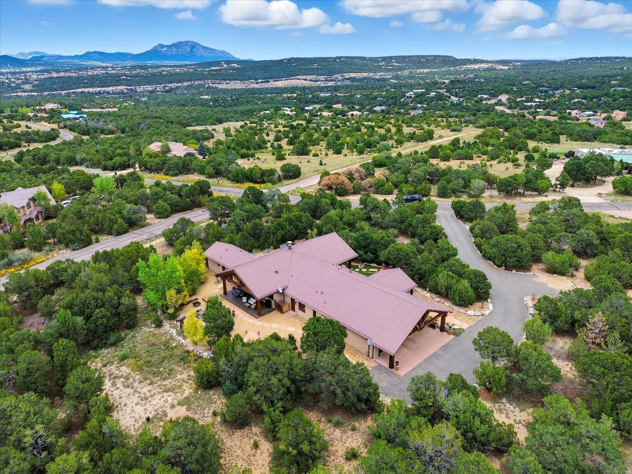 Country Lodge-Style Home in Gated CommunityCasually elegant lodge-style home in a country setting, designed to highlight 4 seasons with walls of windows, 20-foot wood ceilings, and massive trusses in the great room. Two living areas are divided by a two-way stacked stone fireplace, with a striking water feature inside the front entry.Interior features include concrete radiant-heated floors, wood vigas, and a chef's kitchen with 2 ranges, dishwasher, wine cooler, built-in refrigerator, rainforest quartz island, copper hood and backsplash, and a large pantry. A built-in china hutch adds to the custom design.The main suite includes a Jacuzzi tub, fireplace, and a large walk-in closet. Additional amenities feature a 1,369 sq. ft. 3+ car garage/workshop with shelving, porches at the front and back, and an outdoor hot tub. Backyard has a large koi pond with a water feature.Located in a gated, paved community with clubhouse amenities including walking trails, indoor pool, outdoor hot tub, sauna, gym, basketball, racquetball and tennis courts. Approximately 20 minutes east of Albuquerque.