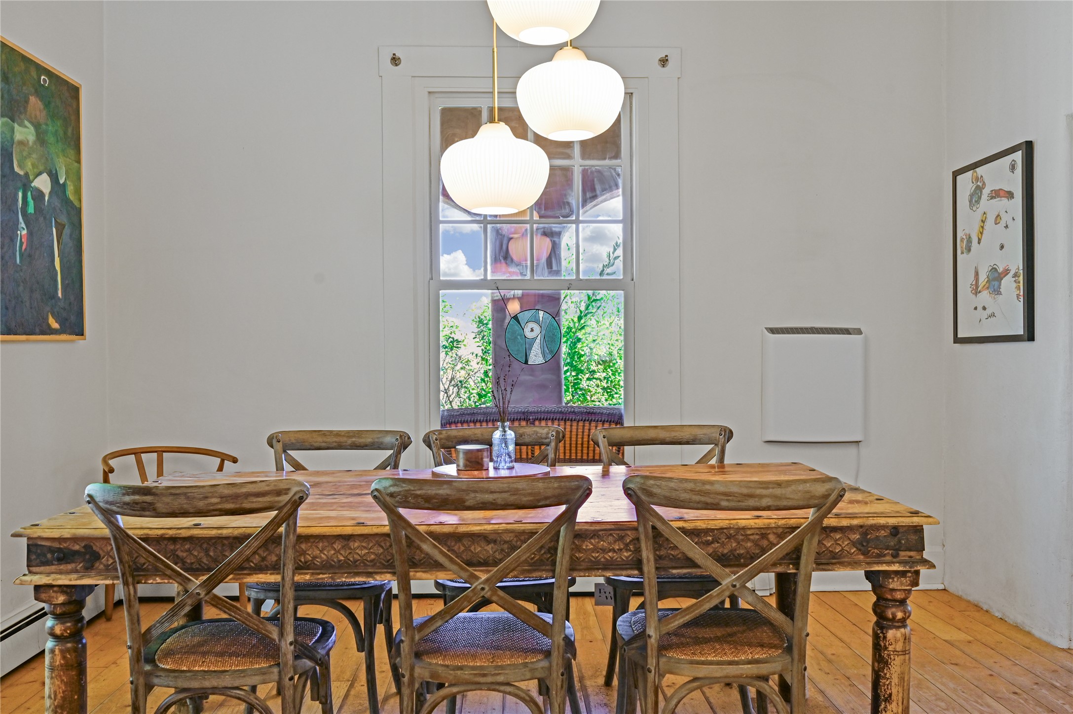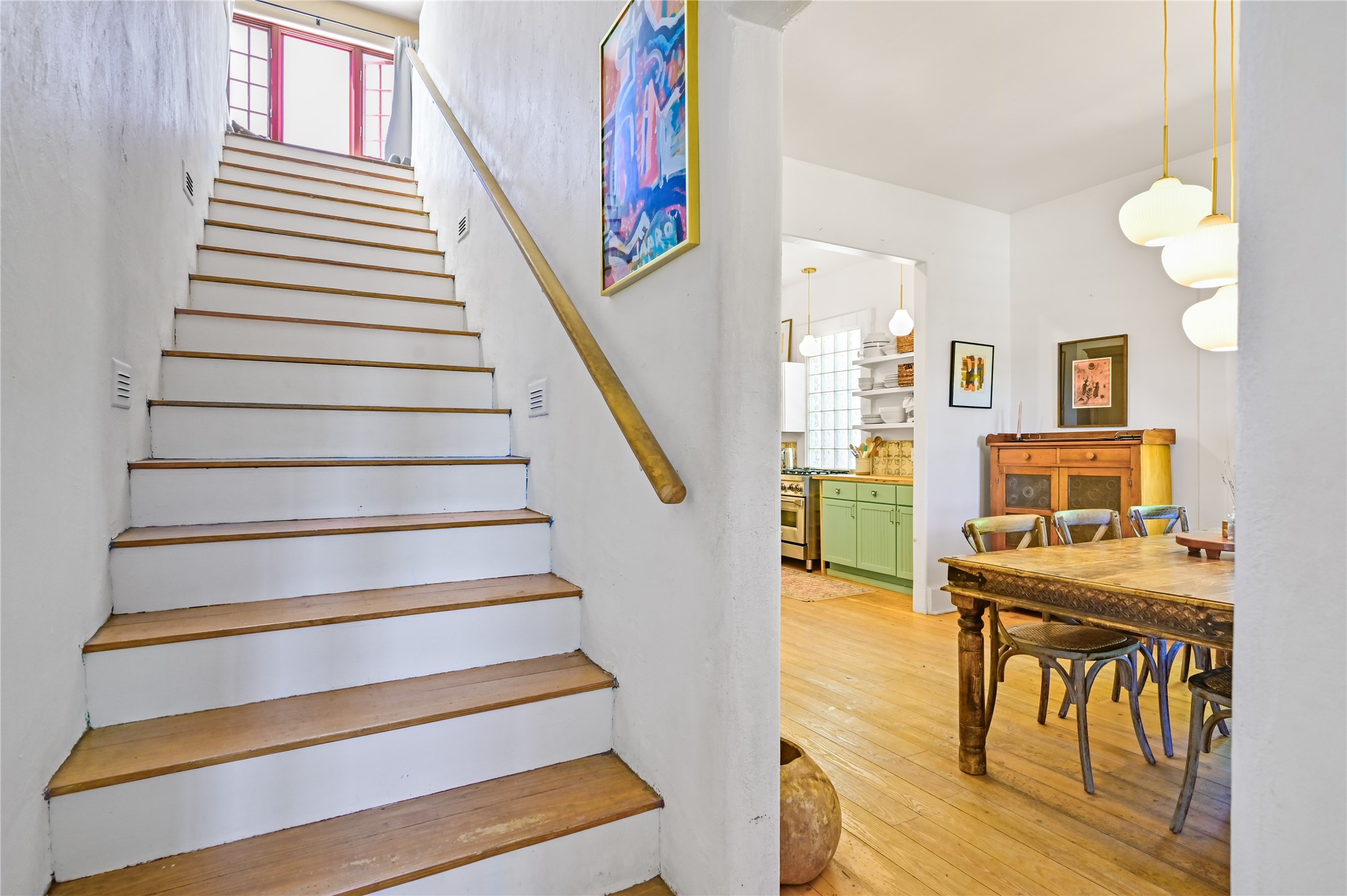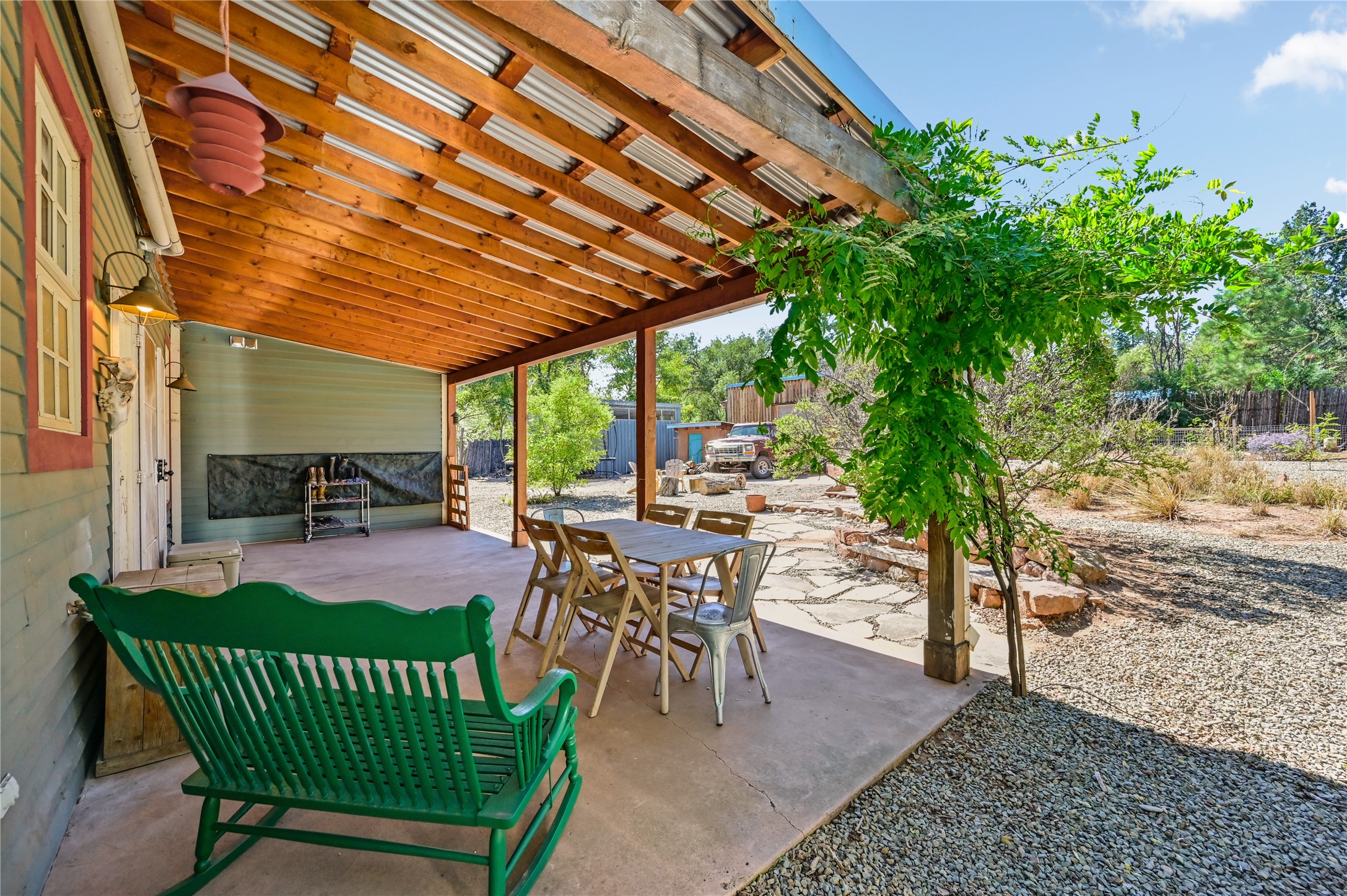 Step into Northern New Mexico history with this beautifully restored 1904 farmhouse, perfectly situated in the Village of Pecos--just a short walk to the Pecos River and a scenic 25-minute drive from Santa Fe. Here, adventure and tranquility meet: explore the breathtaking trails of the Pecos Wilderness and the Sangre de Cristo Mountains, or hit the world-class biking routes at Glorieta Adventure Camps, only five minutes away. This spacious and thoughtfully updated home features four bedrooms (with a possible fifth), three full baths, and a classic country kitchen that blends timeless charm with modern comfort. Flexible living areas and abundant storage make it ideal for families, creatives, or anyone seeking room to grow. The expansive lot includes a large garage and workshop, a detached studio, garden beds, a chicken coop, and a small greenhouse--perfect for sustainable living. Each morning greets you with stunning mountain sunrises from the front porch or living room, and in summer, you can stroll across the street to the Pecos Farmers Market for fresh produce, live music, and community gatherings. When the snow falls, enjoy cozy winter nights by the warmth of a Norwegian wood stove. Come experience the best of Northern New Mexico living--natural beauty, small-town charm, and easy access to everything Santa Fe has to offer. Imagine the Possibilities and schedule your showing today!