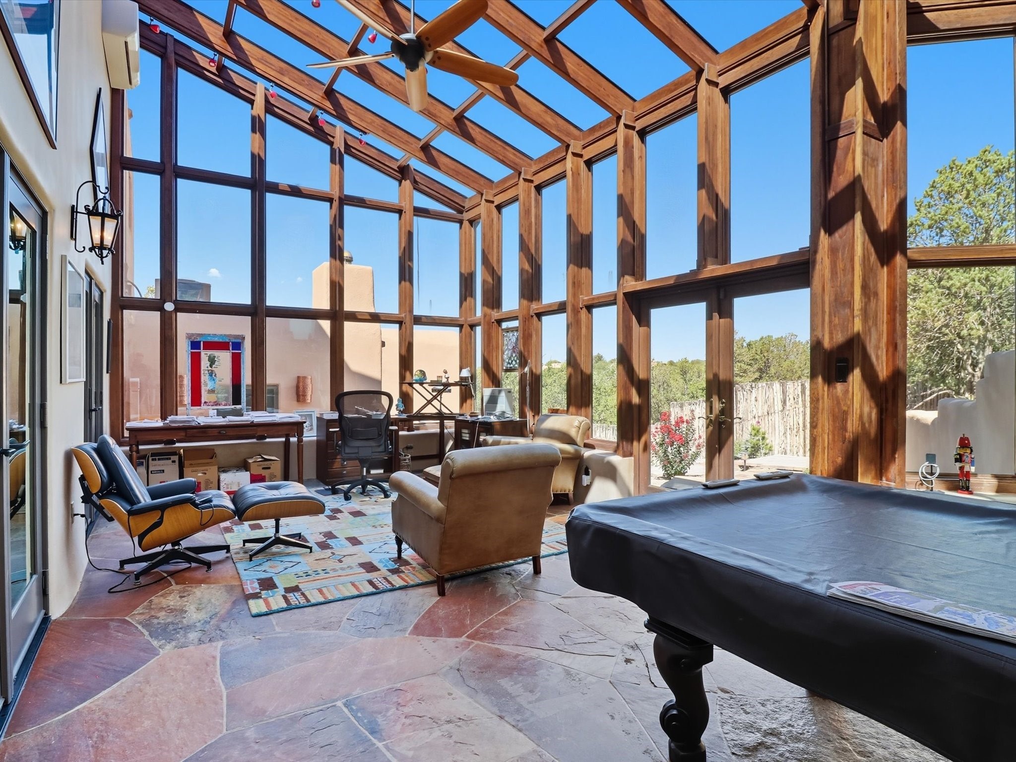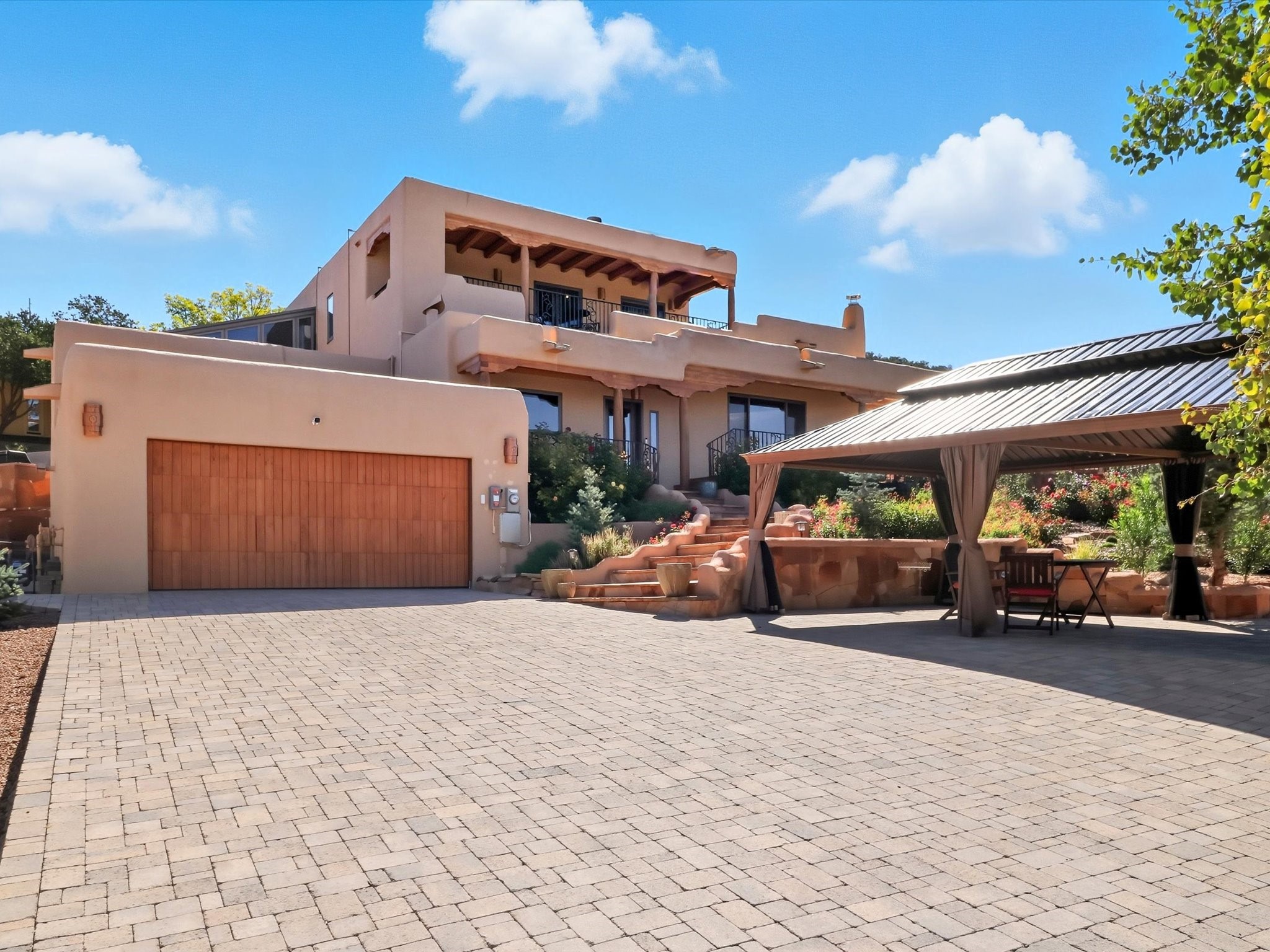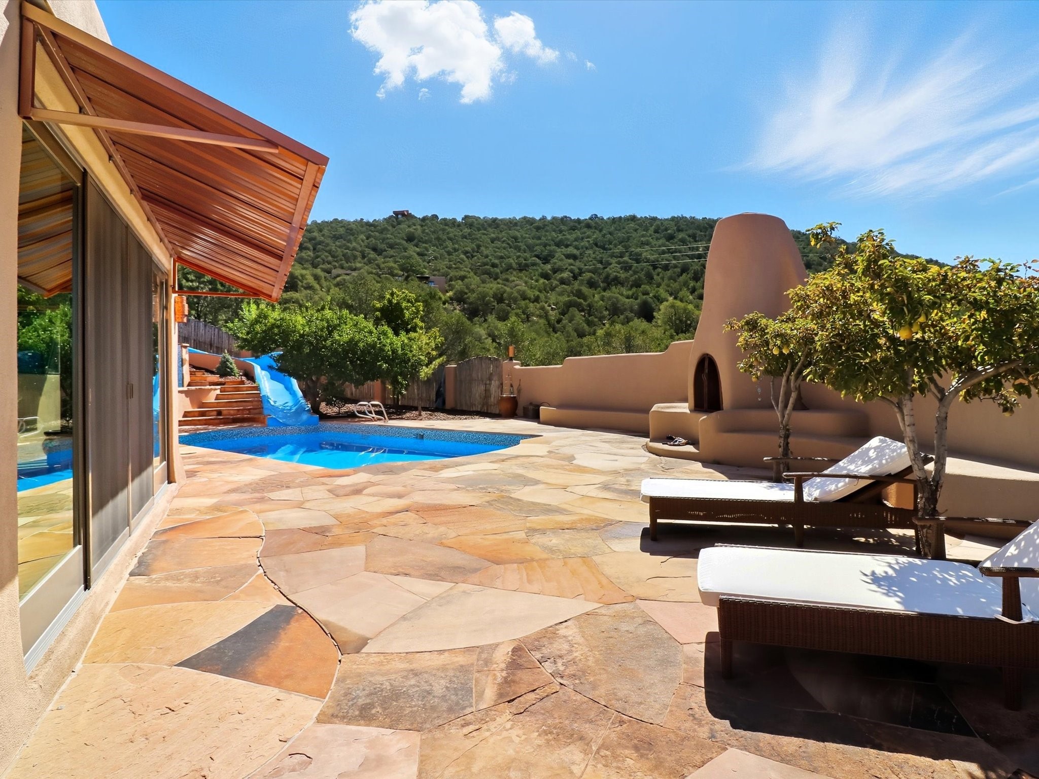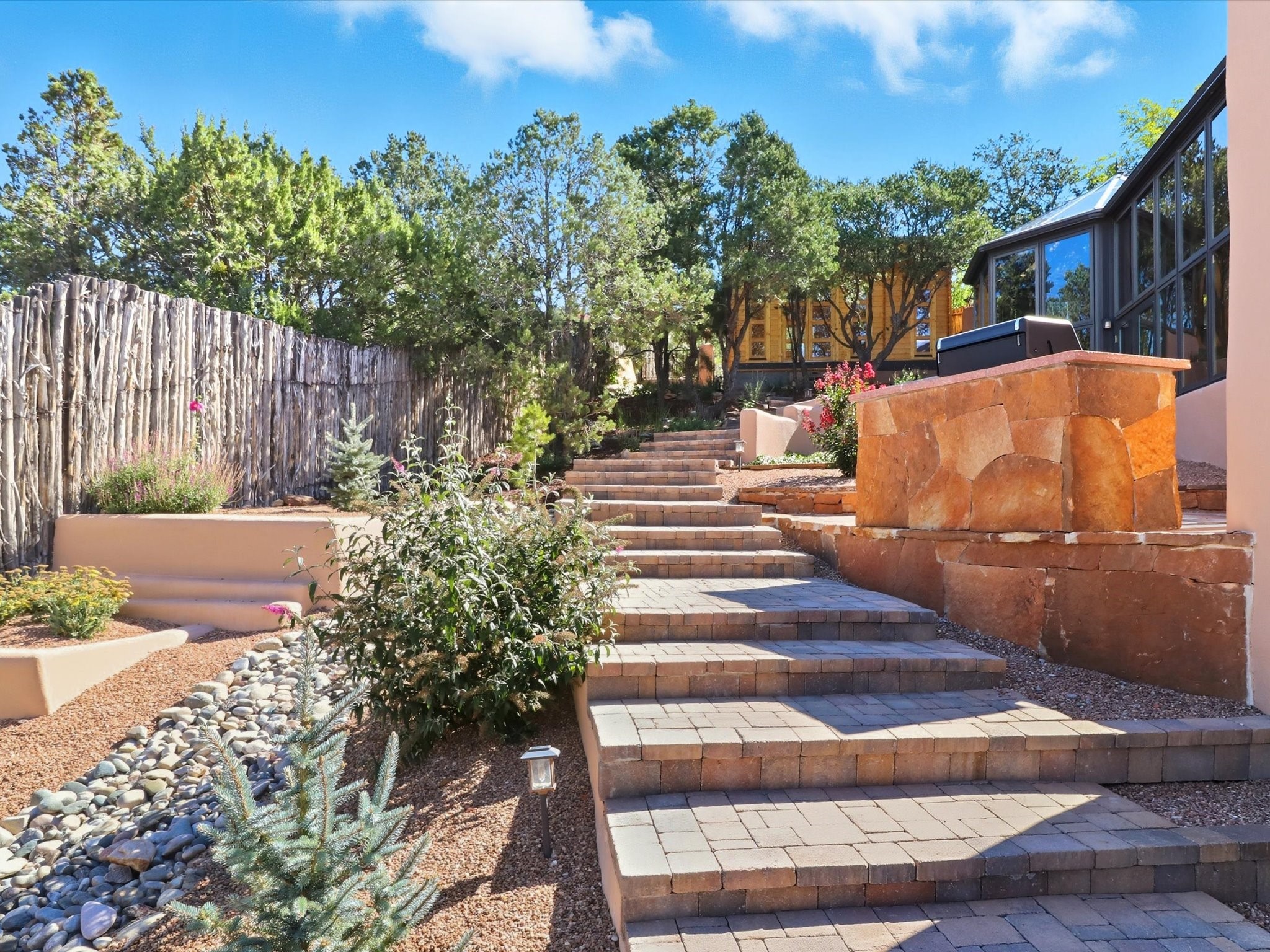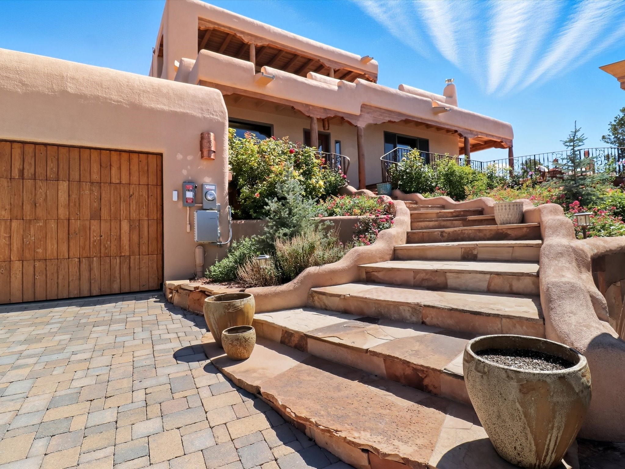 WANTED: A New Owner With a Taste for the Extraordinary! Be prepared to be inspired--inspired to live effortlessly in a mountain escape where Old World charm meets modern-day refinement. This elevated estate isn't just a home, it's a sanctuary, a hideaway, a place where sunsets stretch for miles and every corner whispers character. Step through newly designed gardens with stone walkways and an elegant driveway that sets the stage for what's within. Inside, custom wood accents, artisan ironwork, walnut floors, and hand-troweled plaster walls warm the soul. Two living areas -- plus a sunlit, heated, and cooled solarium with a sauna off to the side -- offer spaces to gather and relax. The primary suite is its own retreat, with custom entry doors, a sitting area anchored by a kiva fireplace, and direct access to a private deck where sunsets put on their nightly show. The owners have thoughtfully elevated this property with recent upgrades: a transformed garden landscape, extensive stonework, Anderson windows and doors, and major enhancements to the arroyo. Outdoors, the amenities read like a resort--solar panels, a pool with two hot tubs and a waterslide, plus all-new heating systems to keep each pool zone comfortable year-round. And there's more: an amazing shed ready for conversion to living space, plus the possibility of adding a casita at the top of the lot--perfect for guests or creative ventures. This isn't just a property. It's a rare opportunity to claim your own mountain retreat, one where history, craftsmanship, and modern comfort converge.REWARD: Unmatched views, inspired living, and the chance to call this mountain haven your own.