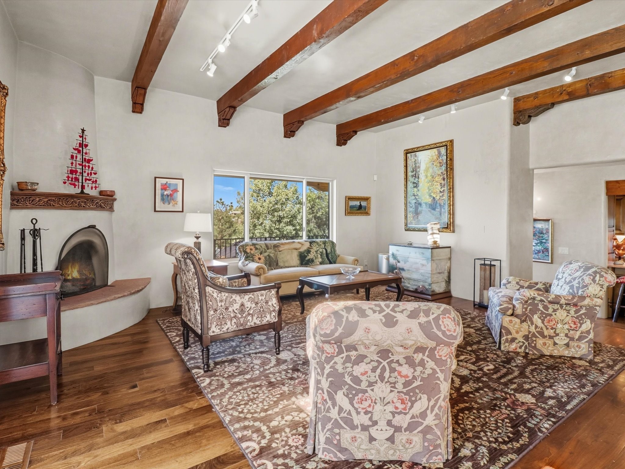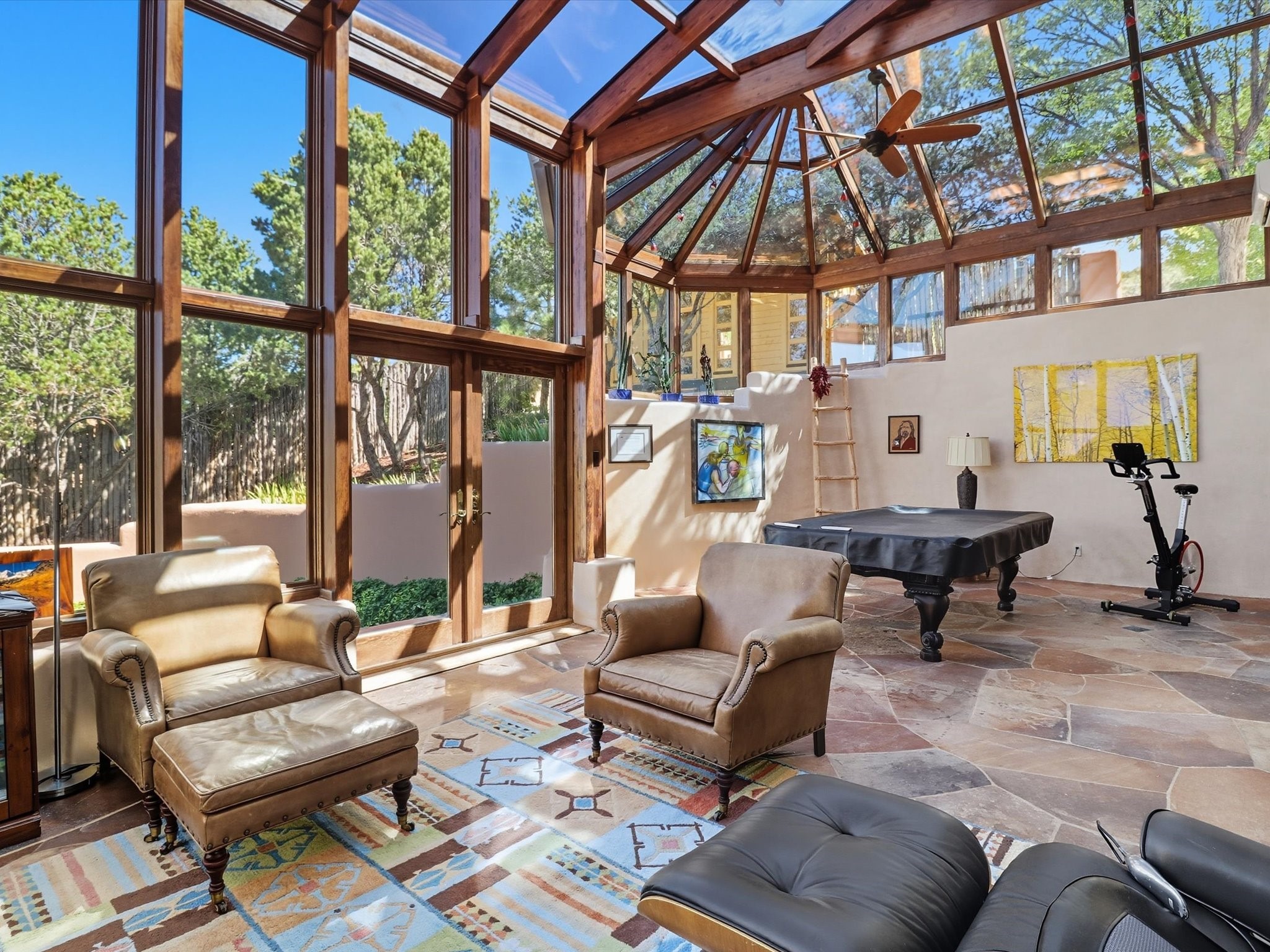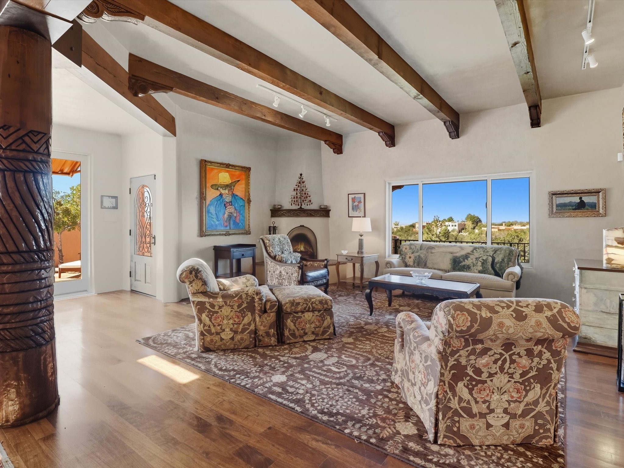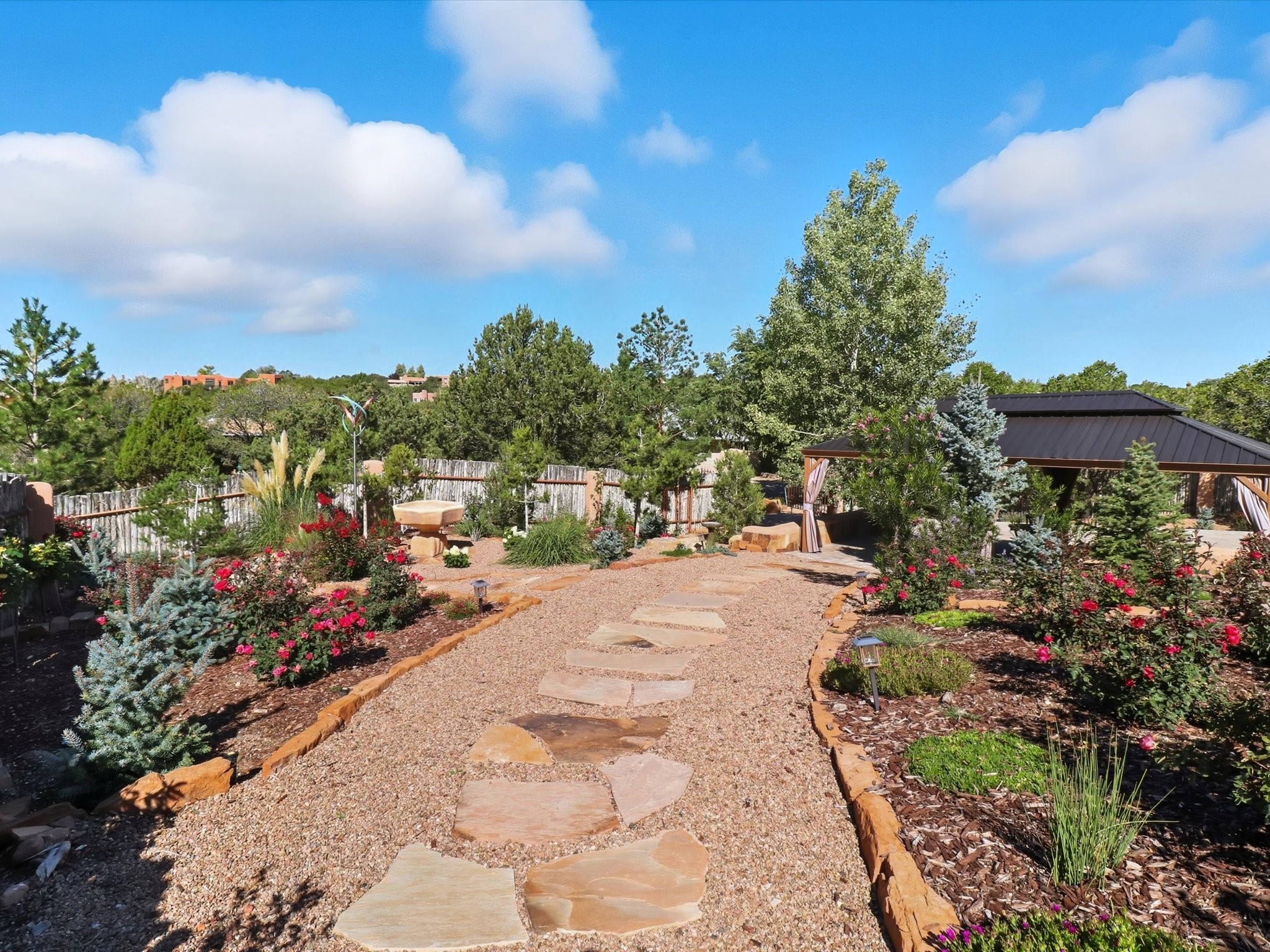 WANTED: A New Owner With a Taste for the Extraordinary! Be prepared to be inspired--inspired to live effortlessly in a mountain escape where Old World charm meets modern-day refinement. This elevated estate isn't just a home, it's a sanctuary, a hideaway, a place where sunsets stretch for miles and every corner whispers character. Step through newly designed gardens with stone walkways and an elegant driveway that sets the stage for what's within. Inside, custom wood accents, artisan ironwork, walnut floors, and hand-troweled plaster walls warm the soul. Two living areas -- plus a sunlit, heated, and cooled solarium with a sauna off to the side -- offer spaces to gather and relax. The primary suite is its own retreat, with custom entry doors, a sitting area anchored by a kiva fireplace, and direct access to a private deck where sunsets put on their nightly show. The owners have thoughtfully elevated this property with recent upgrades: a transformed garden landscape, extensive stonework, Anderson windows and doors, and major enhancements to the arroyo. Outdoors, the amenities read like a resort--solar panels, a pool with two hot tubs and a waterslide, plus all-new heating systems to keep each pool zone comfortable year-round. And there's more: an amazing shed ready for conversion to living space, plus the possibility of adding a casita at the top of the lot--perfect for guests or creative ventures. This isn't just a property. It's a rare opportunity to claim your own mountain retreat, one where history, craftsmanship, and modern comfort converge.REWARD: Unmatched views, inspired living, and the chance to call this mountain haven your own.