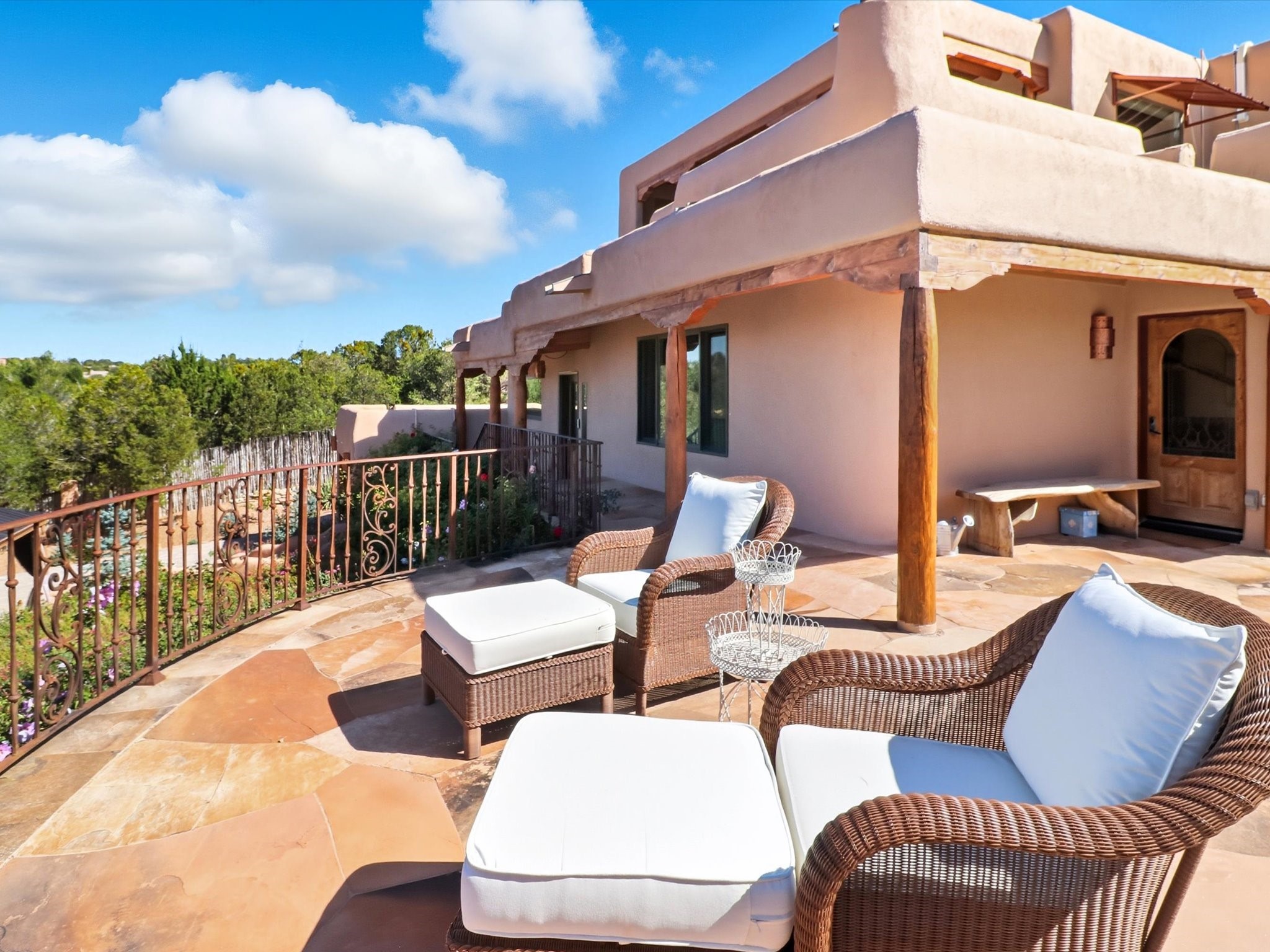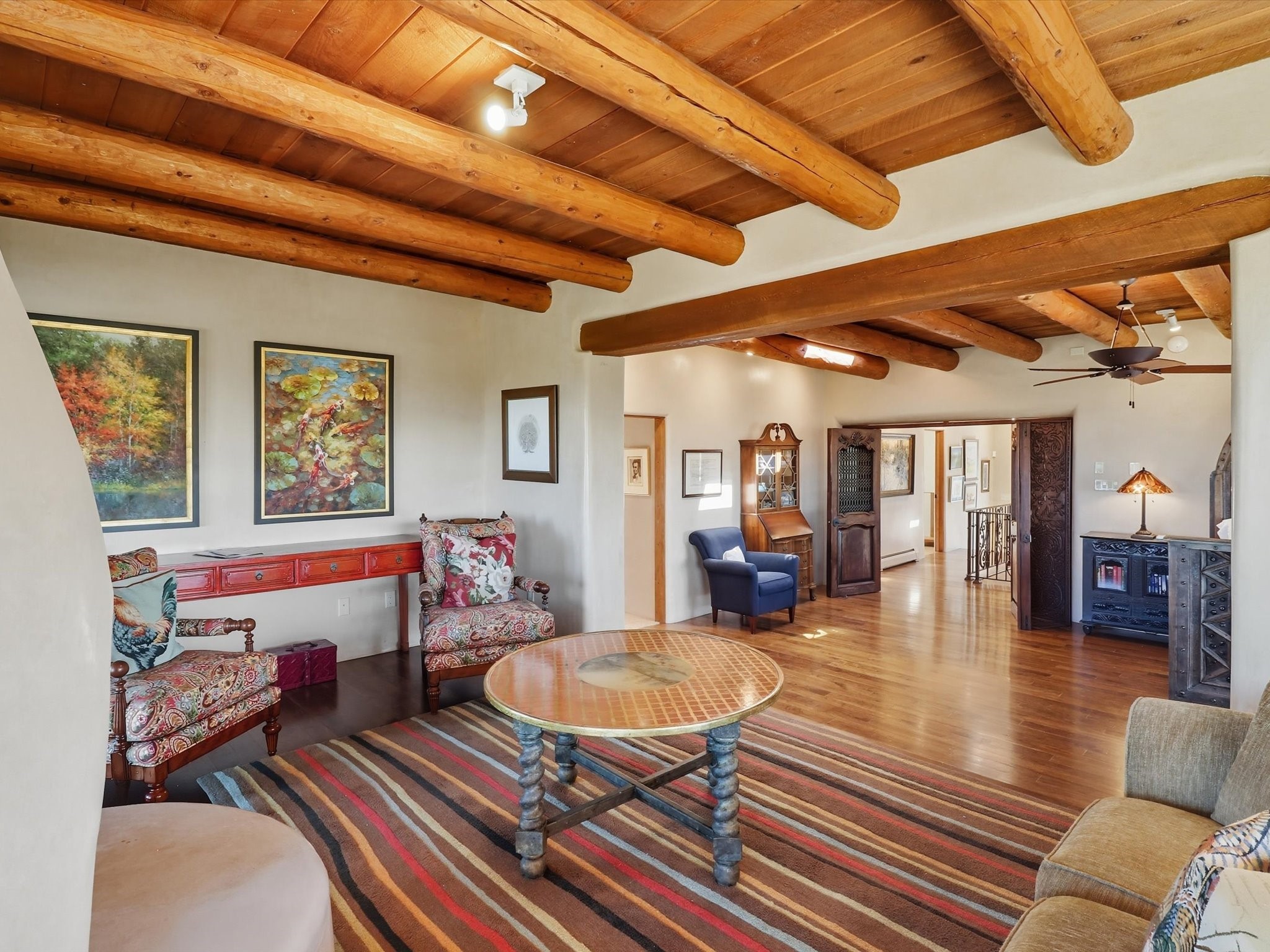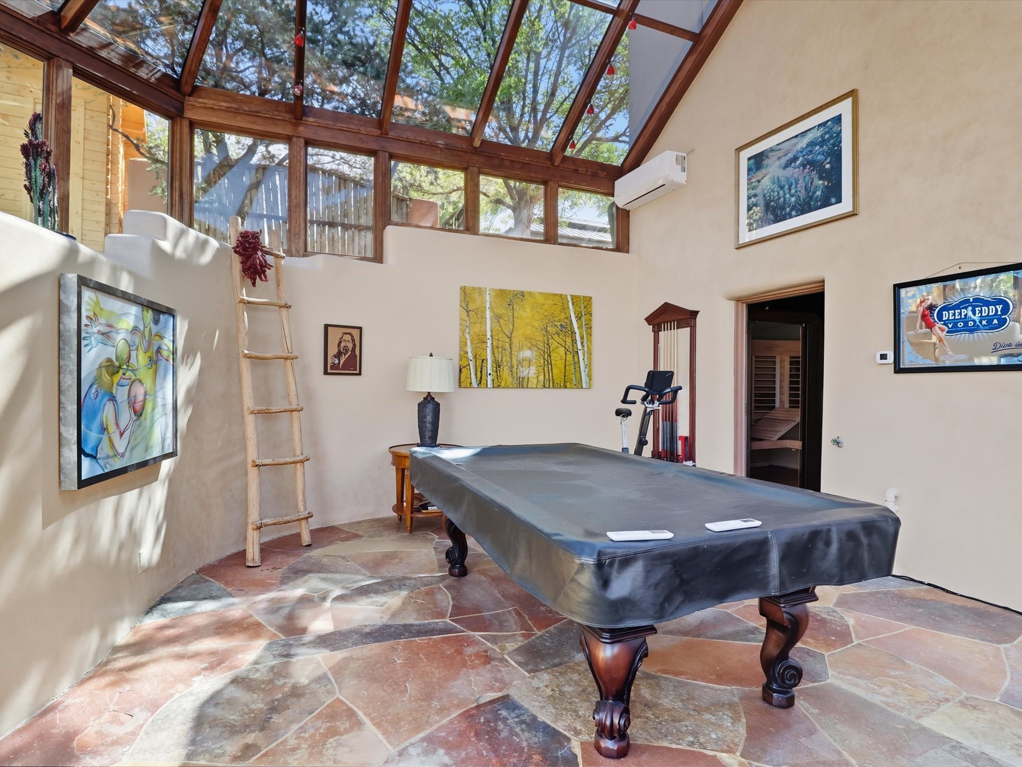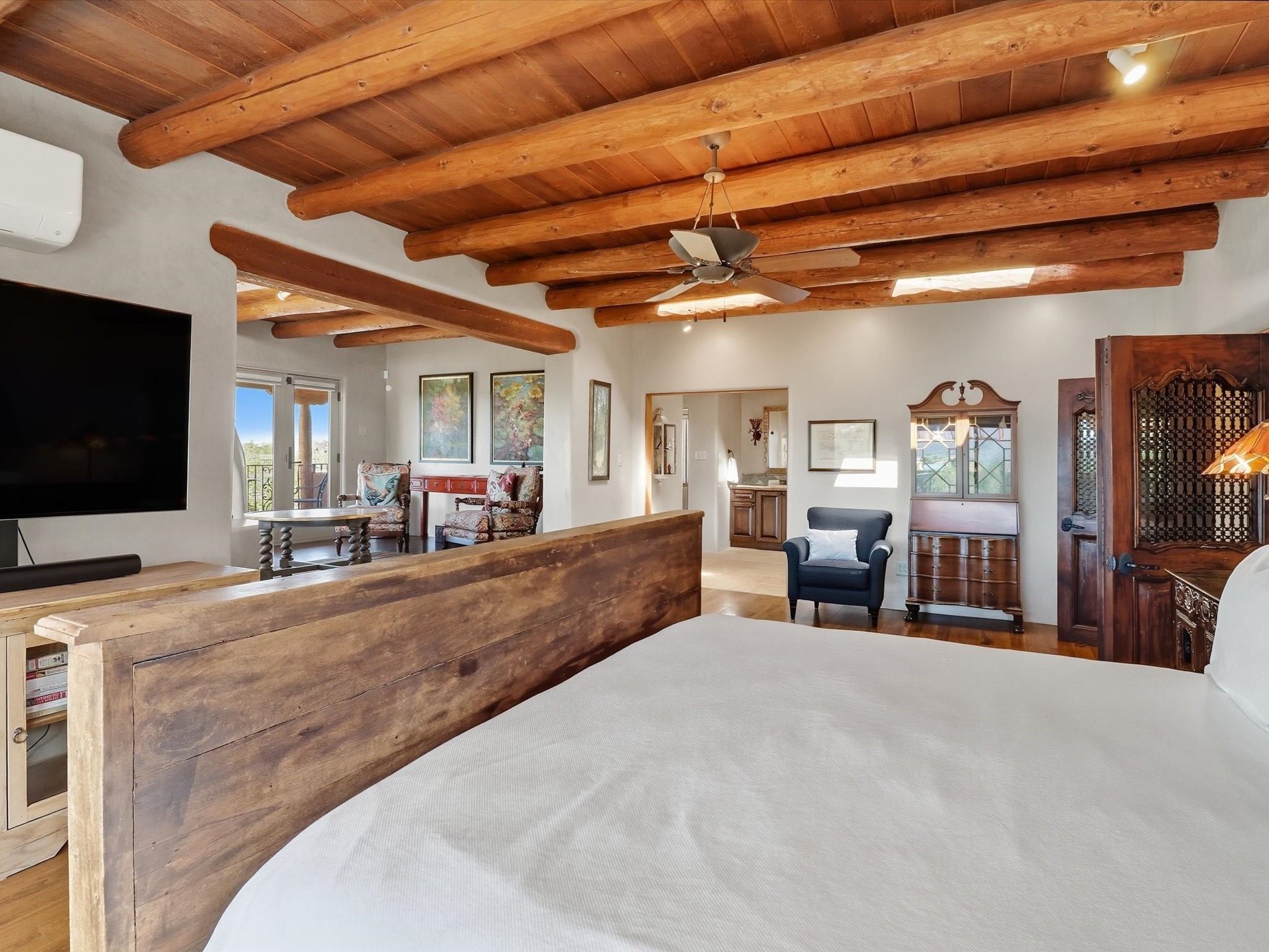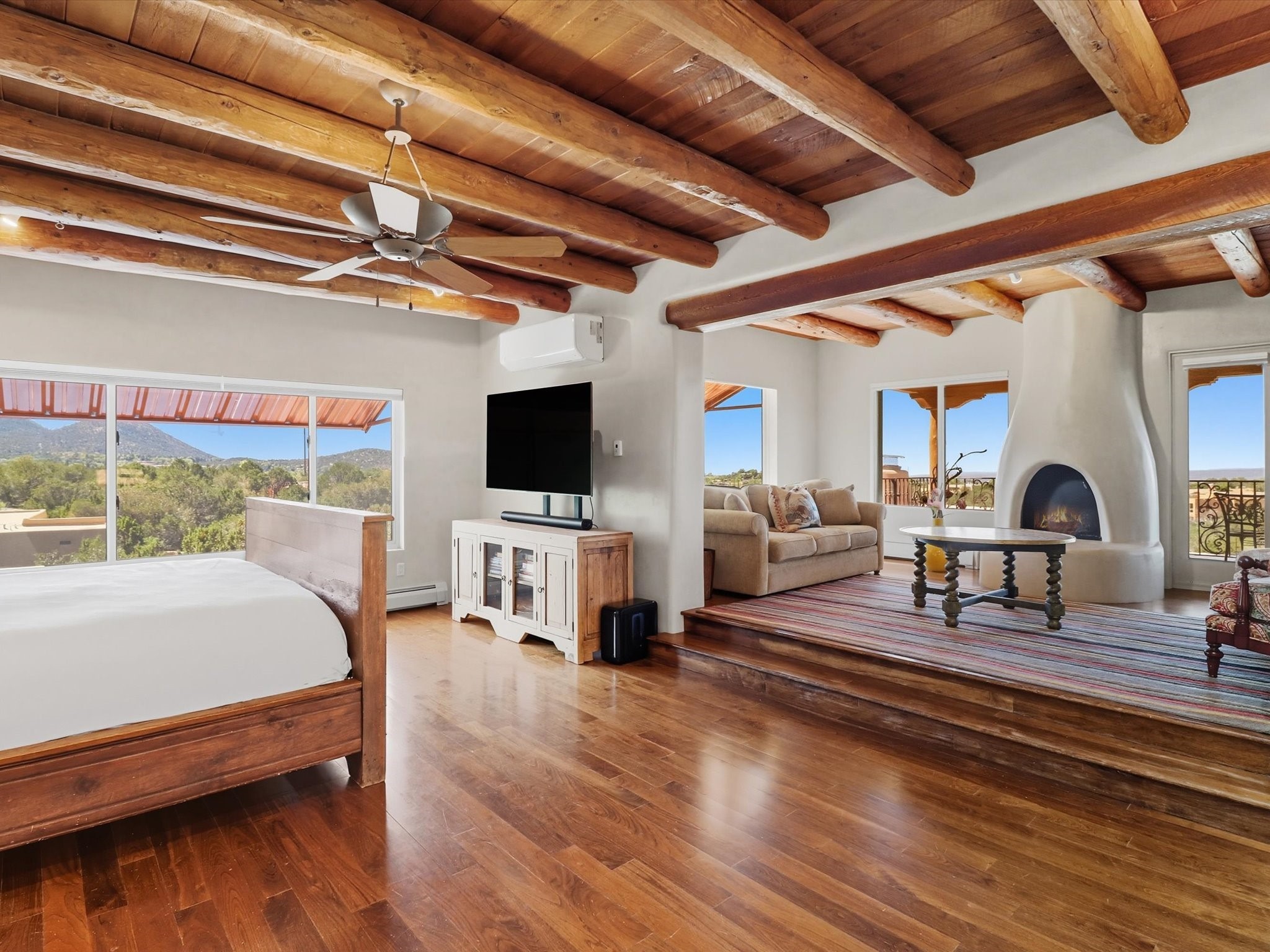 WANTED: A New Owner With a Taste for the Extraordinary! Be prepared to be inspired--inspired to live effortlessly in a mountain escape where Old World charm meets modern-day refinement. This elevated estate isn't just a home, it's a sanctuary, a hideaway, a place where sunsets stretch for miles and every corner whispers character. Step through newly designed gardens with stone walkways and an elegant driveway that sets the stage for what's within. Inside, custom wood accents, artisan ironwork, walnut floors, and hand-troweled plaster walls warm the soul. Two living areas -- plus a sunlit, heated, and cooled solarium with a sauna off to the side -- offer spaces to gather and relax. The primary suite is its own retreat, with custom entry doors, a sitting area anchored by a kiva fireplace, and direct access to a private deck where sunsets put on their nightly show. The owners have thoughtfully elevated this property with recent upgrades: a transformed garden landscape, extensive stonework, Anderson windows and doors, and major enhancements to the arroyo. Outdoors, the amenities read like a resort--solar panels, a pool with two hot tubs and a waterslide, plus all-new heating systems to keep each pool zone comfortable year-round. And there's more: an amazing shed ready for conversion to living space, plus the possibility of adding a casita at the top of the lot--perfect for guests or creative ventures. This isn't just a property. It's a rare opportunity to claim your own mountain retreat, one where history, craftsmanship, and modern comfort converge.REWARD: Unmatched views, inspired living, and the chance to call this mountain haven your own.