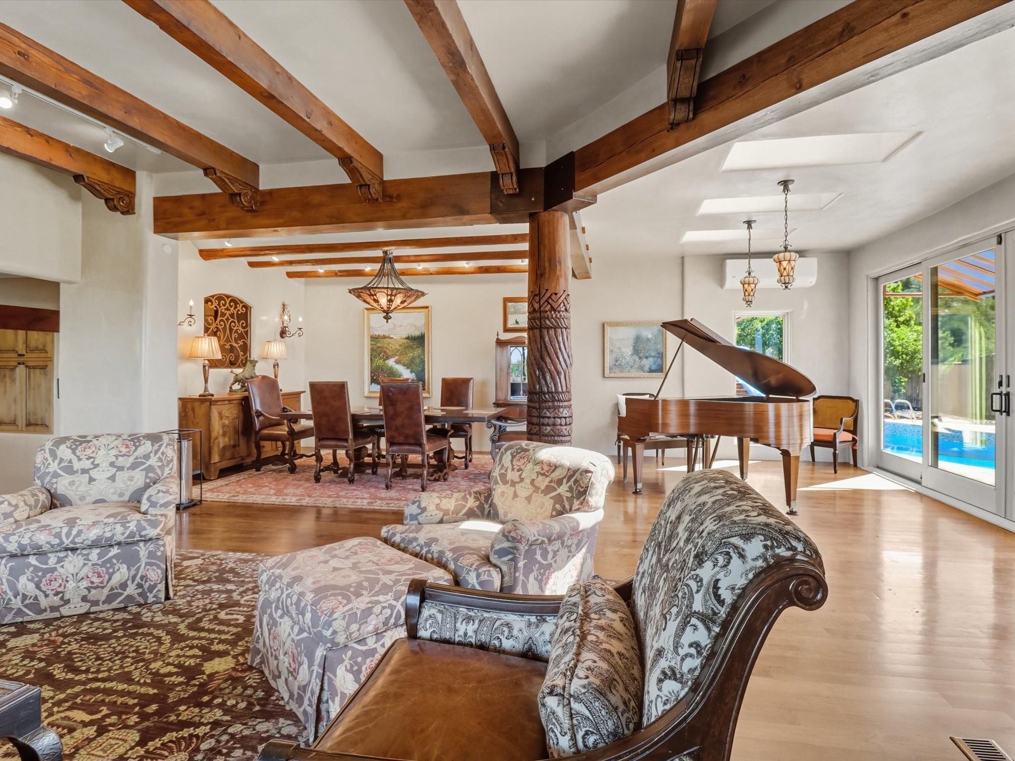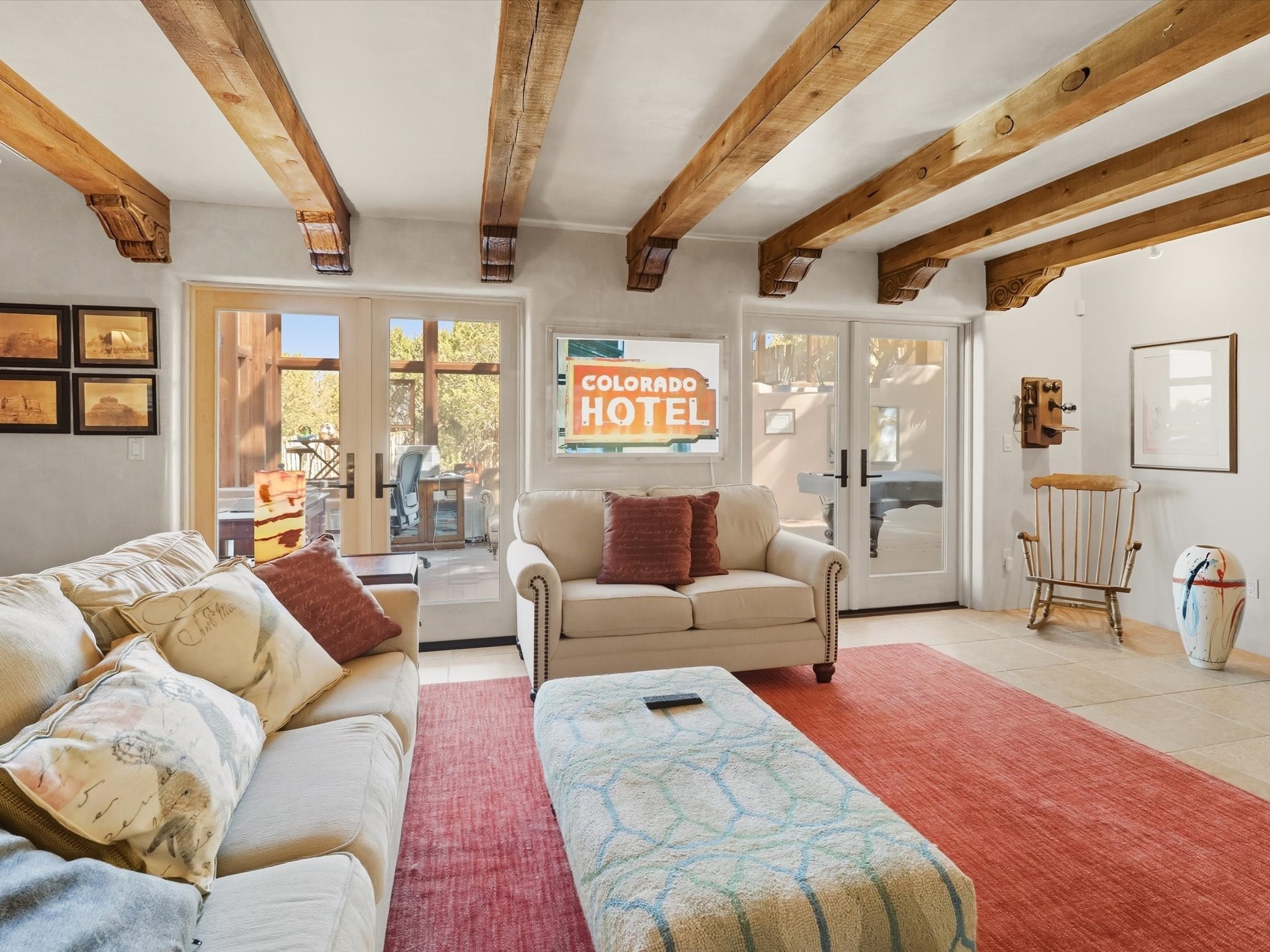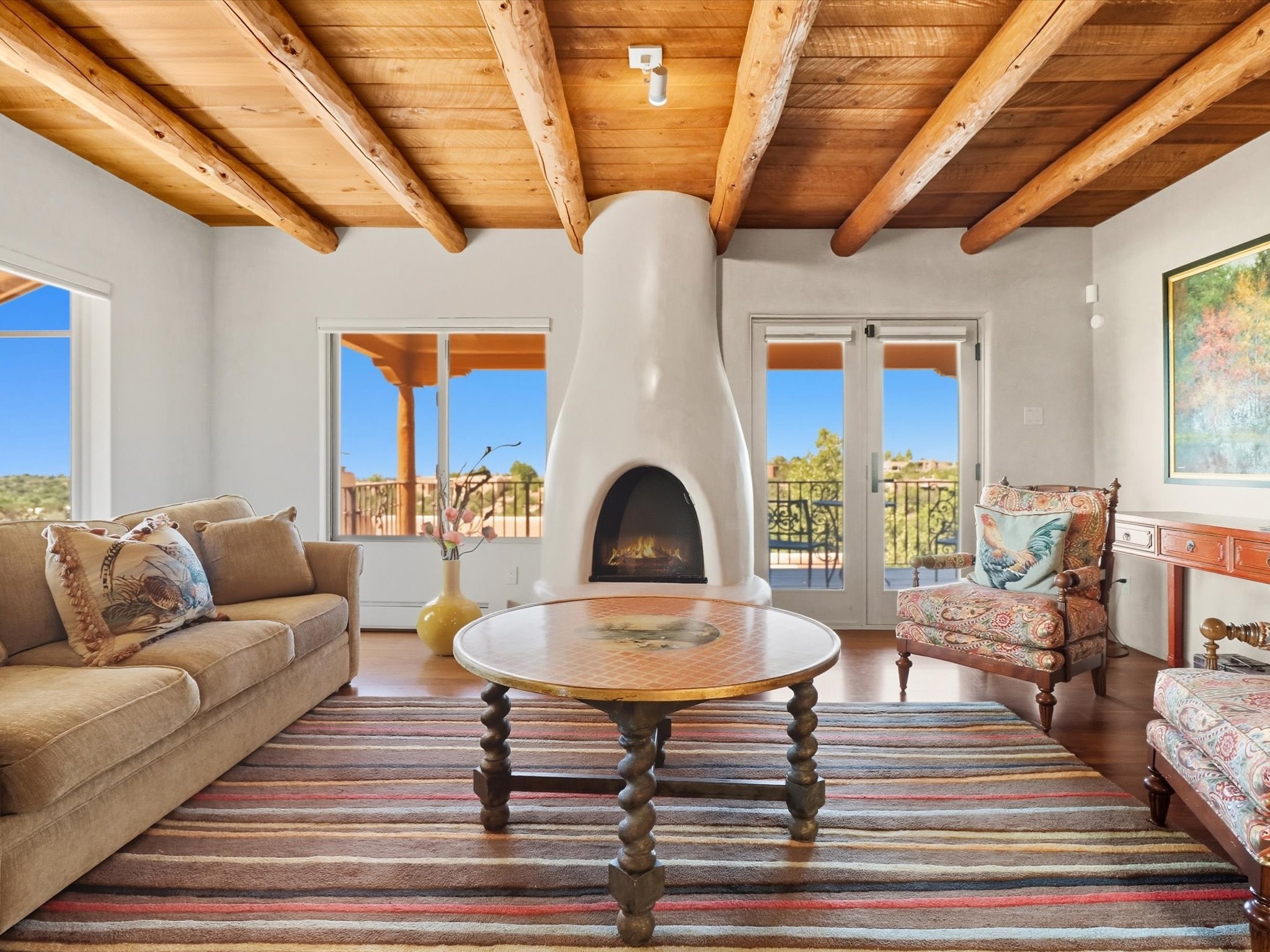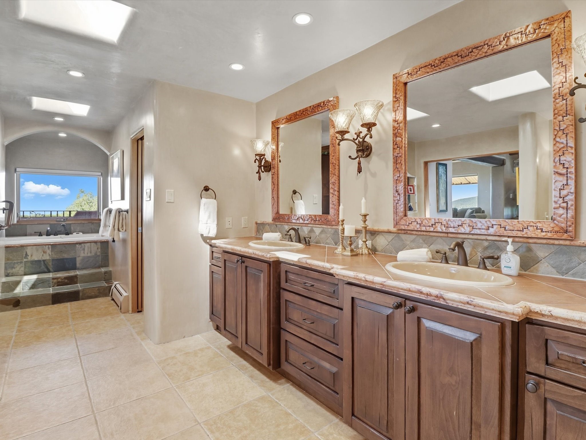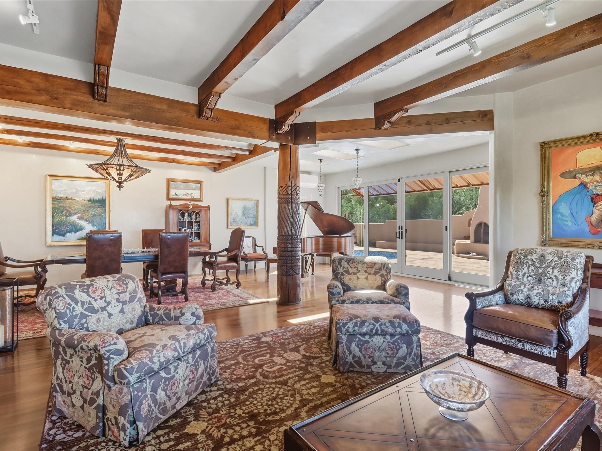WANTED: A New Owner With a Taste for the Extraordinary! Be prepared to be inspired--inspired to live effortlessly in a mountain escape where Old World charm meets modern-day refinement. This elevated estate isn't just a home, it's a sanctuary, a hideaway, a place where sunsets stretch for miles and every corner whispers character. Step through newly designed gardens with stone walkways and an elegant driveway that sets the stage for what's within. Inside, custom wood accents, artisan ironwork, walnut floors, and hand-troweled plaster walls warm the soul. Two living areas -- plus a sunlit, heated, and cooled solarium with a sauna off to the side -- offer spaces to gather and relax. The primary suite is its own retreat, with custom entry doors, a sitting area anchored by a kiva fireplace, and direct access to a private deck where sunsets put on their nightly show. The owners have thoughtfully elevated this property with recent upgrades: a transformed garden landscape, extensive stonework, Anderson windows and doors, and major enhancements to the arroyo. Outdoors, the amenities read like a resort--solar panels, a pool with two hot tubs and a waterslide, plus all-new heating systems to keep each pool zone comfortable year-round. And there's more: an amazing shed ready for conversion to living space, plus the possibility of adding a casita at the top of the lot--perfect for guests or creative ventures. This isn't just a property. It's a rare opportunity to claim your own mountain retreat, one where history, craftsmanship, and modern comfort converge.REWARD: Unmatched views, inspired living, and the chance to call this mountain haven your own.