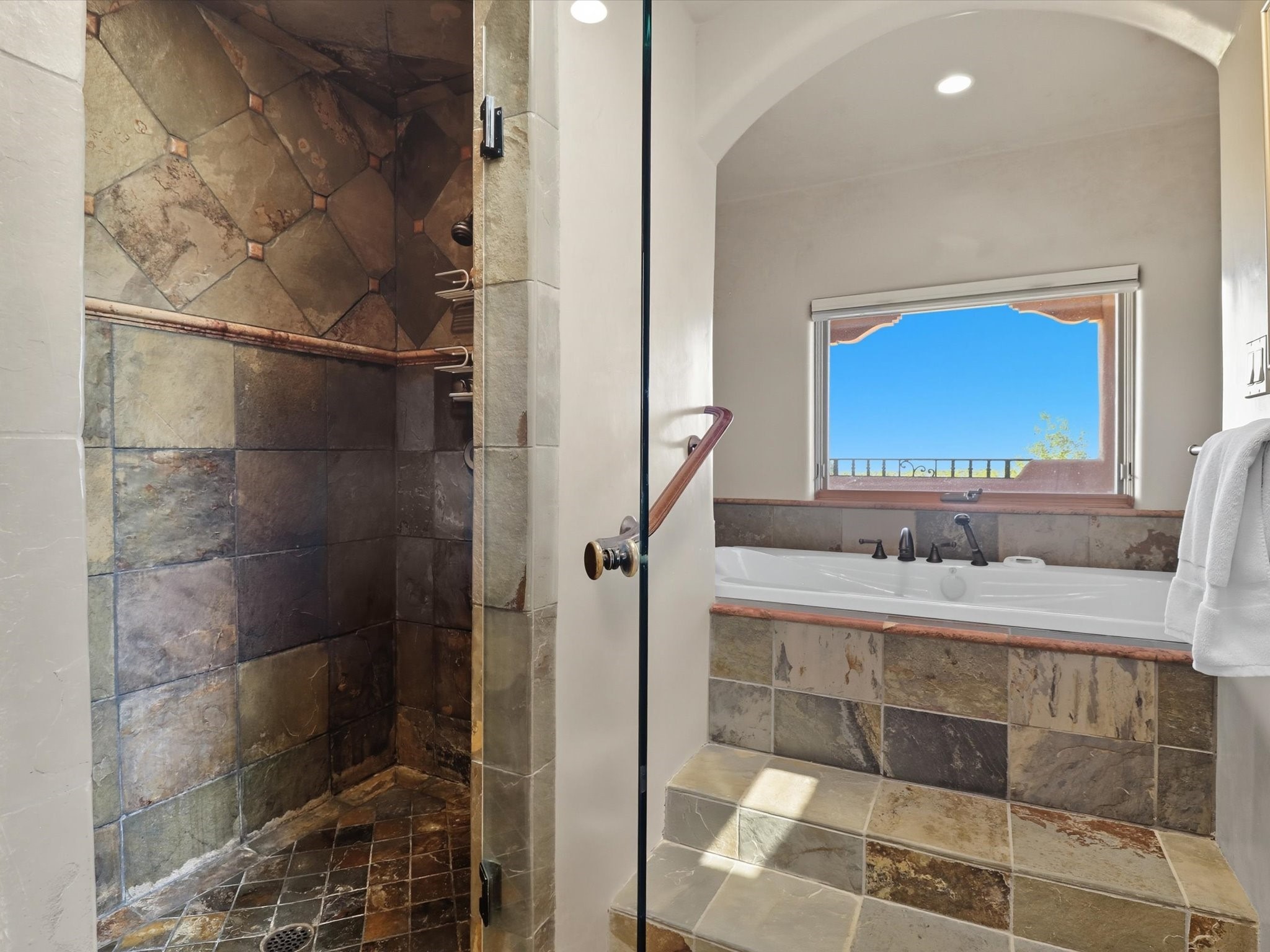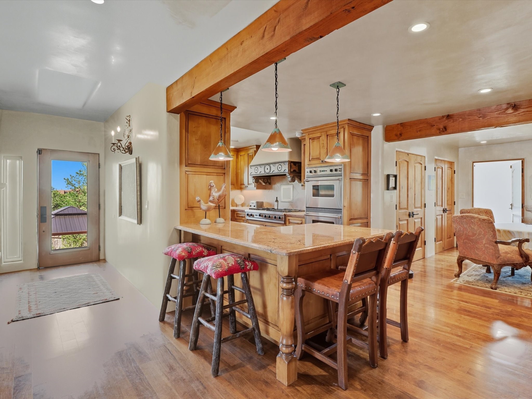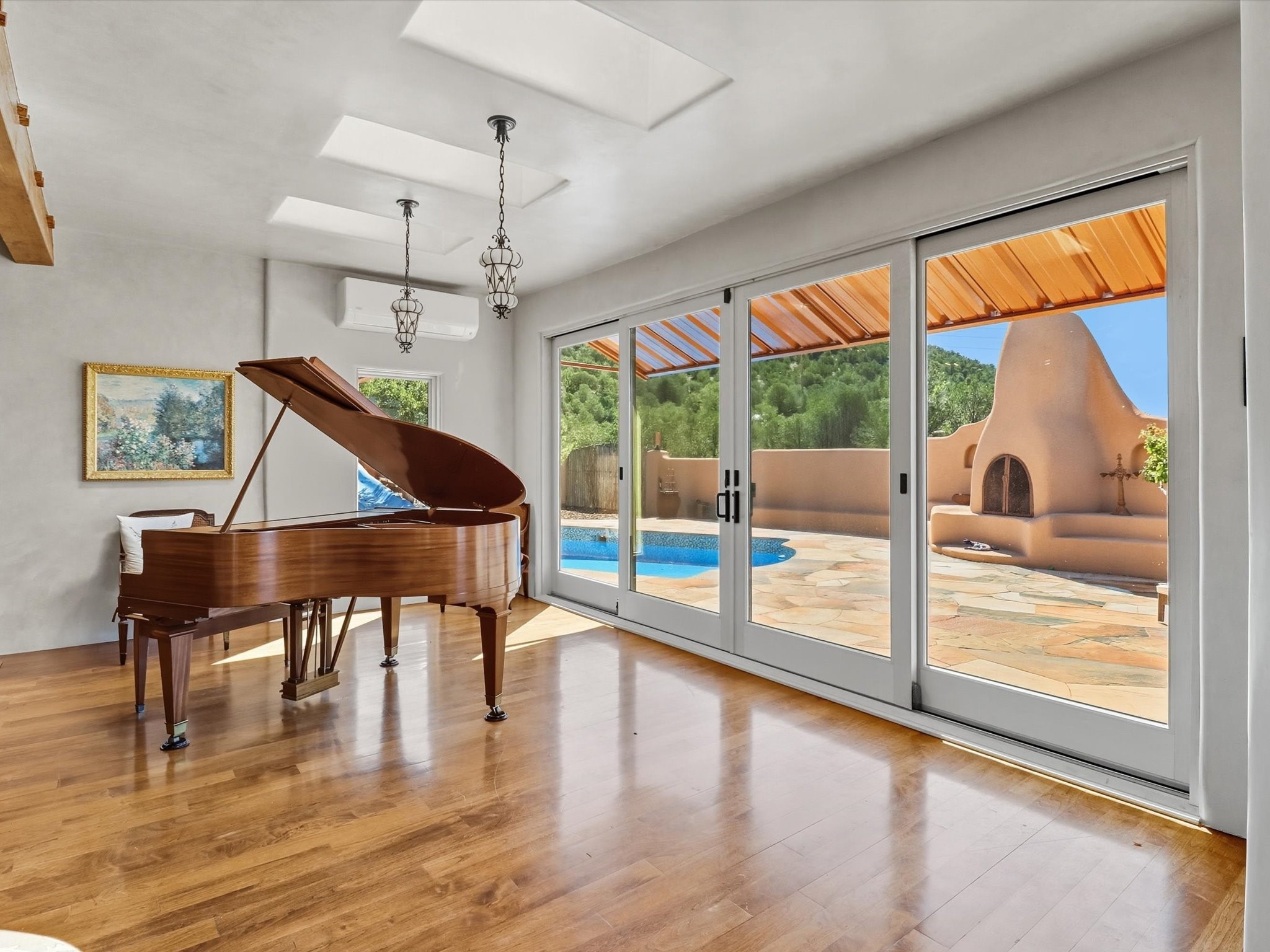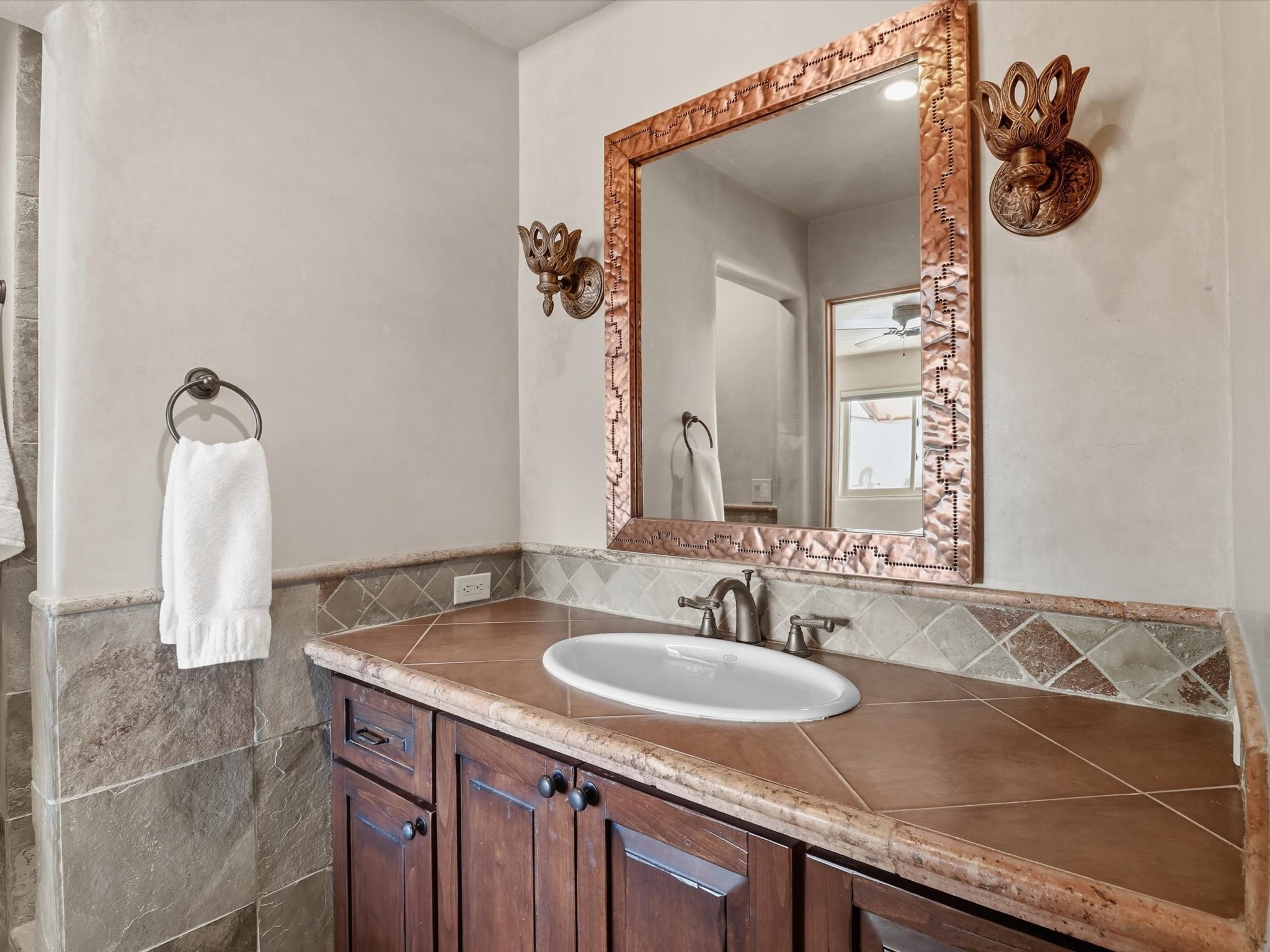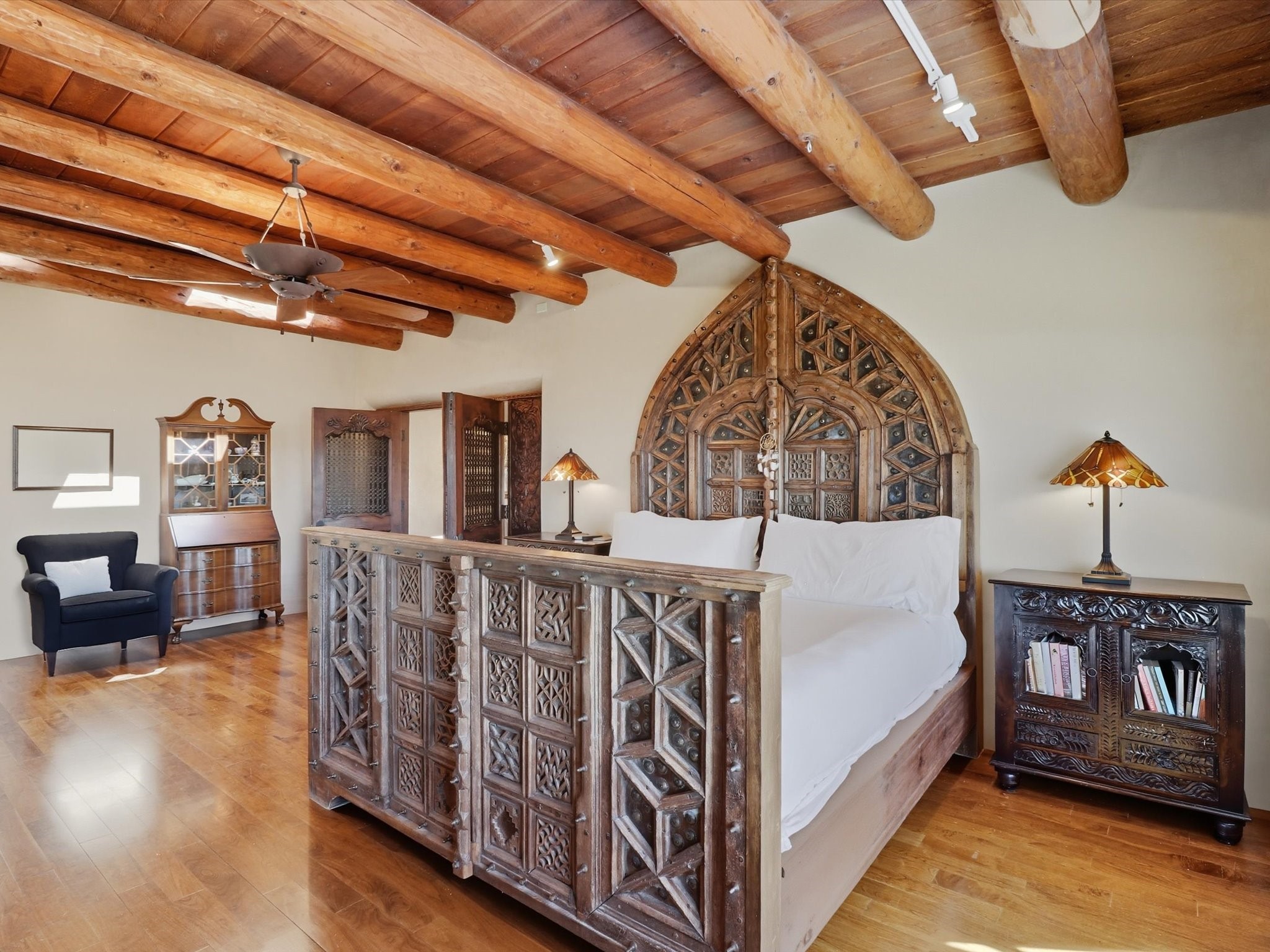 WANTED: A New Owner With a Taste for the Extraordinary! Be prepared to be inspired--inspired to live effortlessly in a mountain escape where Old World charm meets modern-day refinement. This elevated estate isn't just a home, it's a sanctuary, a hideaway, a place where sunsets stretch for miles and every corner whispers character. Step through newly designed gardens with stone walkways and an elegant driveway that sets the stage for what's within. Inside, custom wood accents, artisan ironwork, walnut floors, and hand-troweled plaster walls warm the soul. Two living areas -- plus a sunlit, heated, and cooled solarium with a sauna off to the side -- offer spaces to gather and relax. The primary suite is its own retreat, with custom entry doors, a sitting area anchored by a kiva fireplace, and direct access to a private deck where sunsets put on their nightly show. The owners have thoughtfully elevated this property with recent upgrades: a transformed garden landscape, extensive stonework, Anderson windows and doors, and major enhancements to the arroyo. Outdoors, the amenities read like a resort--solar panels, a pool with two hot tubs and a waterslide, plus all-new heating systems to keep each pool zone comfortable year-round. And there's more: an amazing shed ready for conversion to living space, plus the possibility of adding a casita at the top of the lot--perfect for guests or creative ventures. This isn't just a property. It's a rare opportunity to claim your own mountain retreat, one where history, craftsmanship, and modern comfort converge.REWARD: Unmatched views, inspired living, and the chance to call this mountain haven your own.