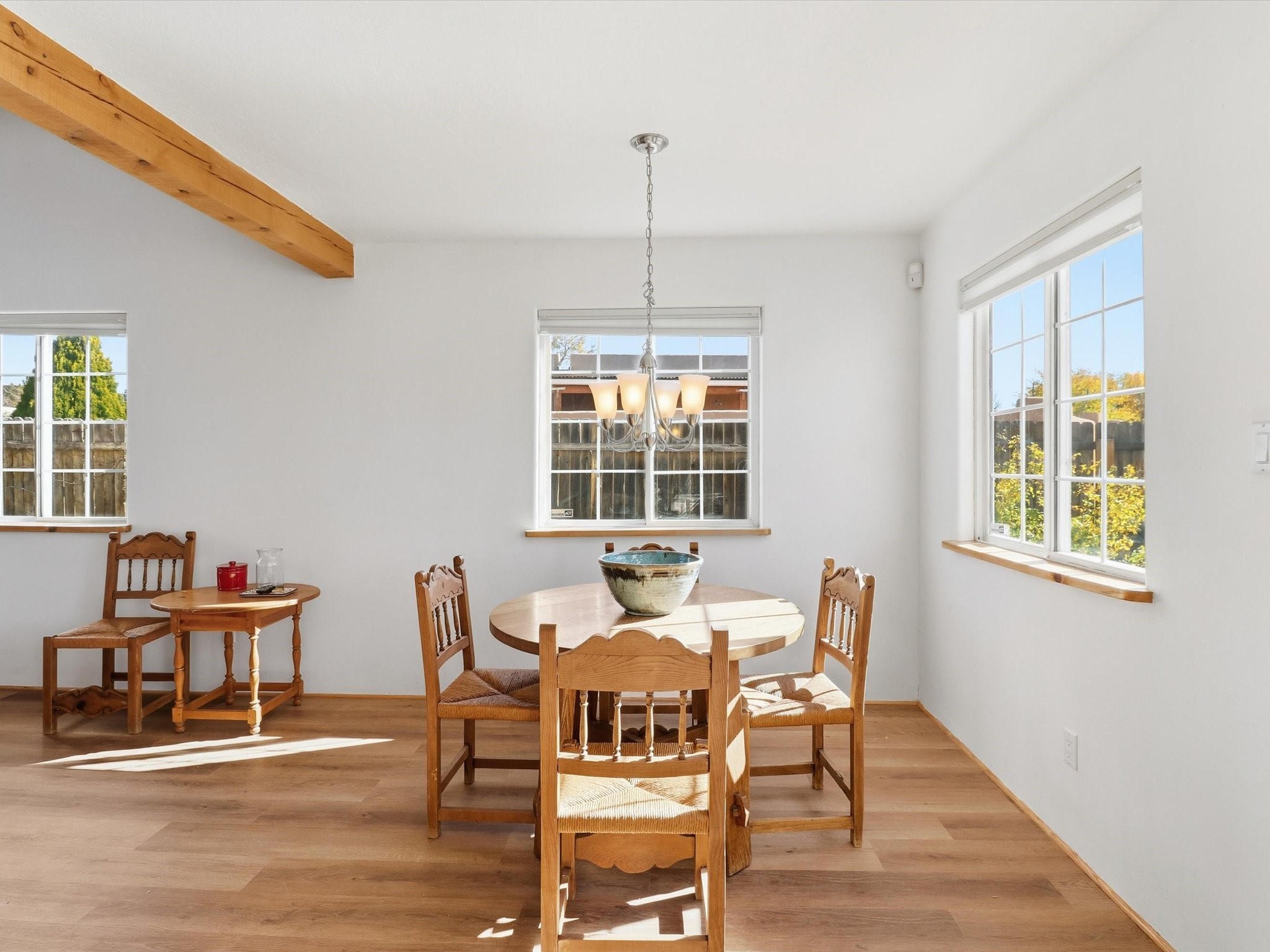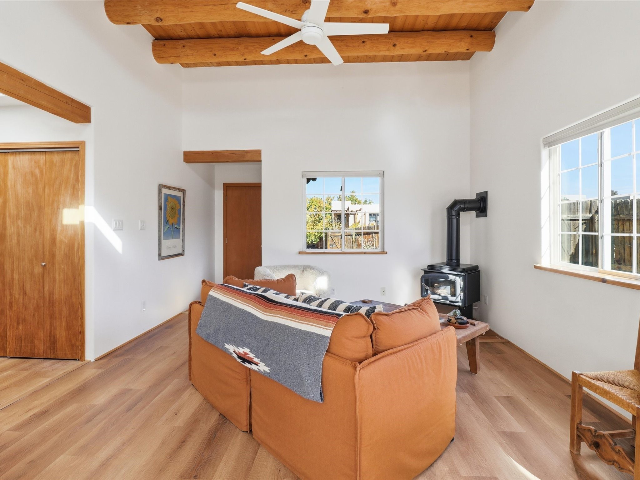 This light and inviting Pueblo-style home in Tierra Contenta offers Santa Fe charm with modern updates and an ideal location. With over 1,100 square feet, two bedrooms, and two baths, the home features new vinyl plank flooring throughout, updated kitchen counters, fresh bathroom vanities, and stylish new lighting and ceiling fans. The roof is under warranty for added peace of mind. Enjoy easy access to I-25, Highway 599, local hospitals, shopping, dining, and schools, all just minutes away. Warm, bright, and move-in ready, this home combines comfort, convenience, and classic Santa Fe style. Imagine the Possibilities and schedule your showing today!