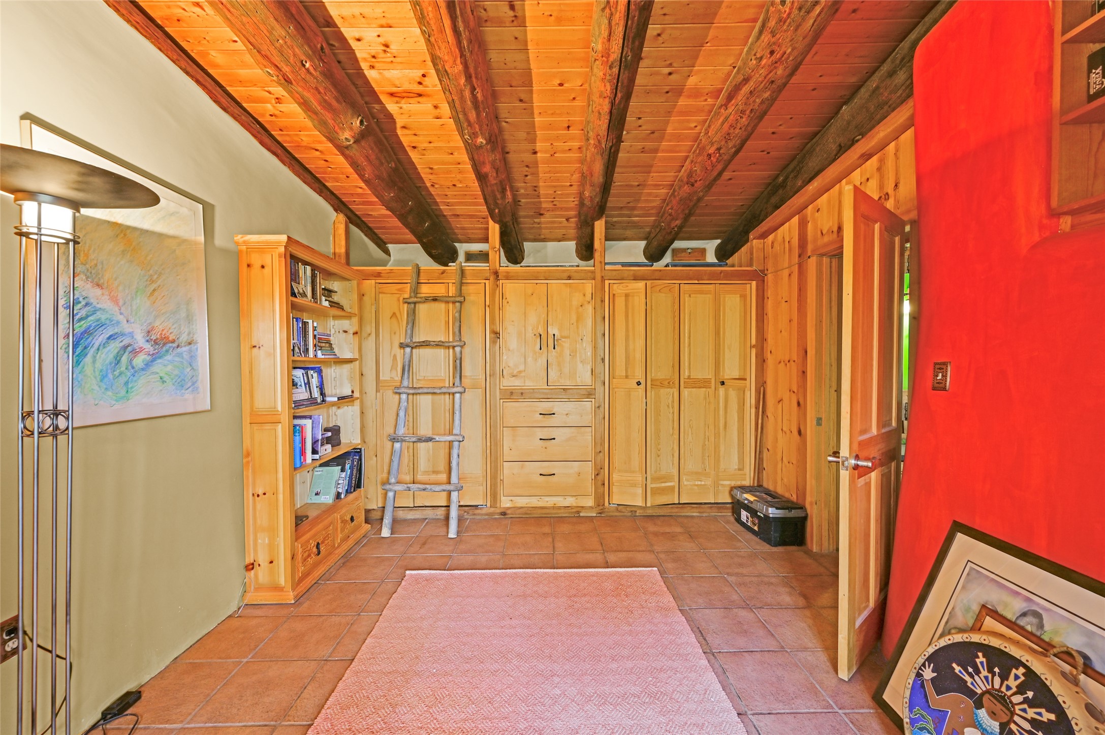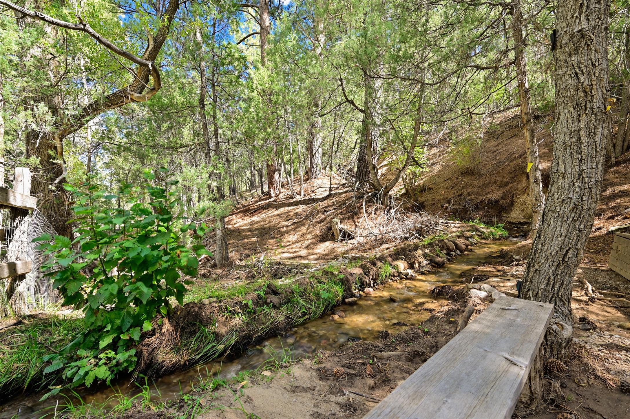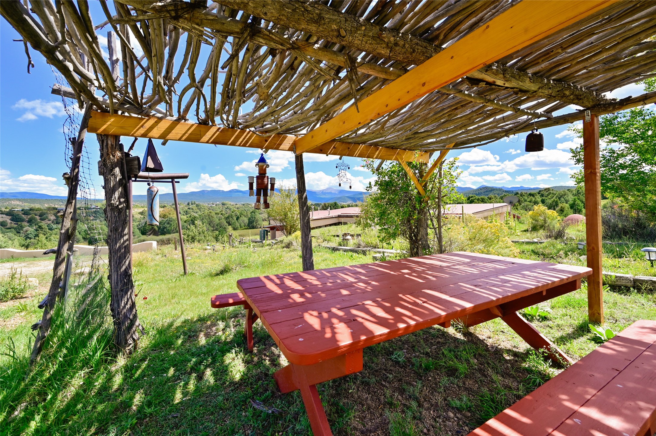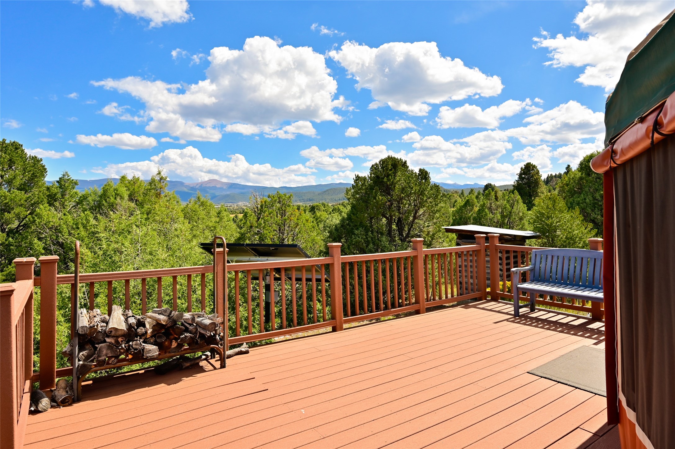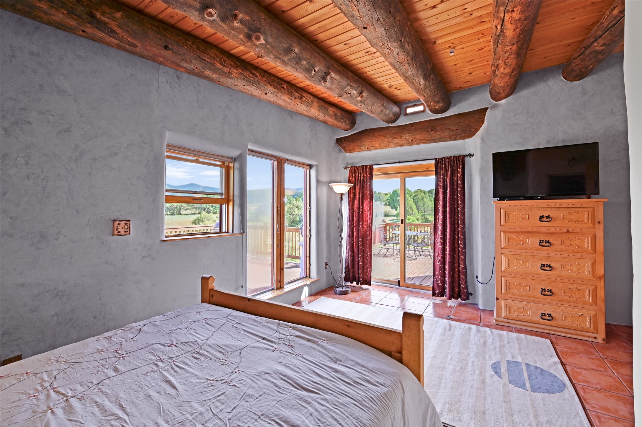 A truly rare 34-acre mountain retreat awaits, nestled in the Sangre de Cristo Mountains with stunning views of Jicarita Peak and Truchas Peaks. This exceptional, self-sufficient, and sustainably developed property is perfect for a small family business, equestrian estate, or serene retreat center.The total living space of 4,100 sq ft includes a charming 1,600 sq ft earth-bermed 2-bedroom home featuring custom stone floors, vigas, radiant in-floor heat in the kitchen and master suite, and an updated kitchen with a Wolf Stove and granite countertops. The home is designed for energy efficiency, maximizing solar gain, and has a wrap-around deck with captivating pond and mountain views.The property also boasts a 2,225 sq ft office/mixed-use building (zoned for cottage industry, previously a successful institute), a 275 sq ft studio/guest house with a half-bath, and a 30' insulated yurt with off-grid solar, ideal for meditation or a classroom--offering immense flexibility and separate spaces for living, working, and gathering.Outside, find unparalleled amenities dedicated to Earth Stewardship and conservation: 10 irrigated acres with water rights for farming or grazing. Rustic 3-stall horse barn and tack room, horse fencing throughout property. 33' geodesic Growing Dome for year-round production. A comprehensive water catchment system utilizing heavy-duty roof guttering on all buildings and multiple cisterns. A quarter-acre pond with a Trex deck, fed by wetlands and springs, and aerated by a windmill. A vast network of maintained trails on forested acres (thinned and managed), offering direct access to the Carson National Forest.Additional features include an owned grid-tied solar array, a root cellar, a 40' cargo container, and extensive landscaping with drip irrigation. This property is a rare gem, beautifully developed, and ready for its next steward.