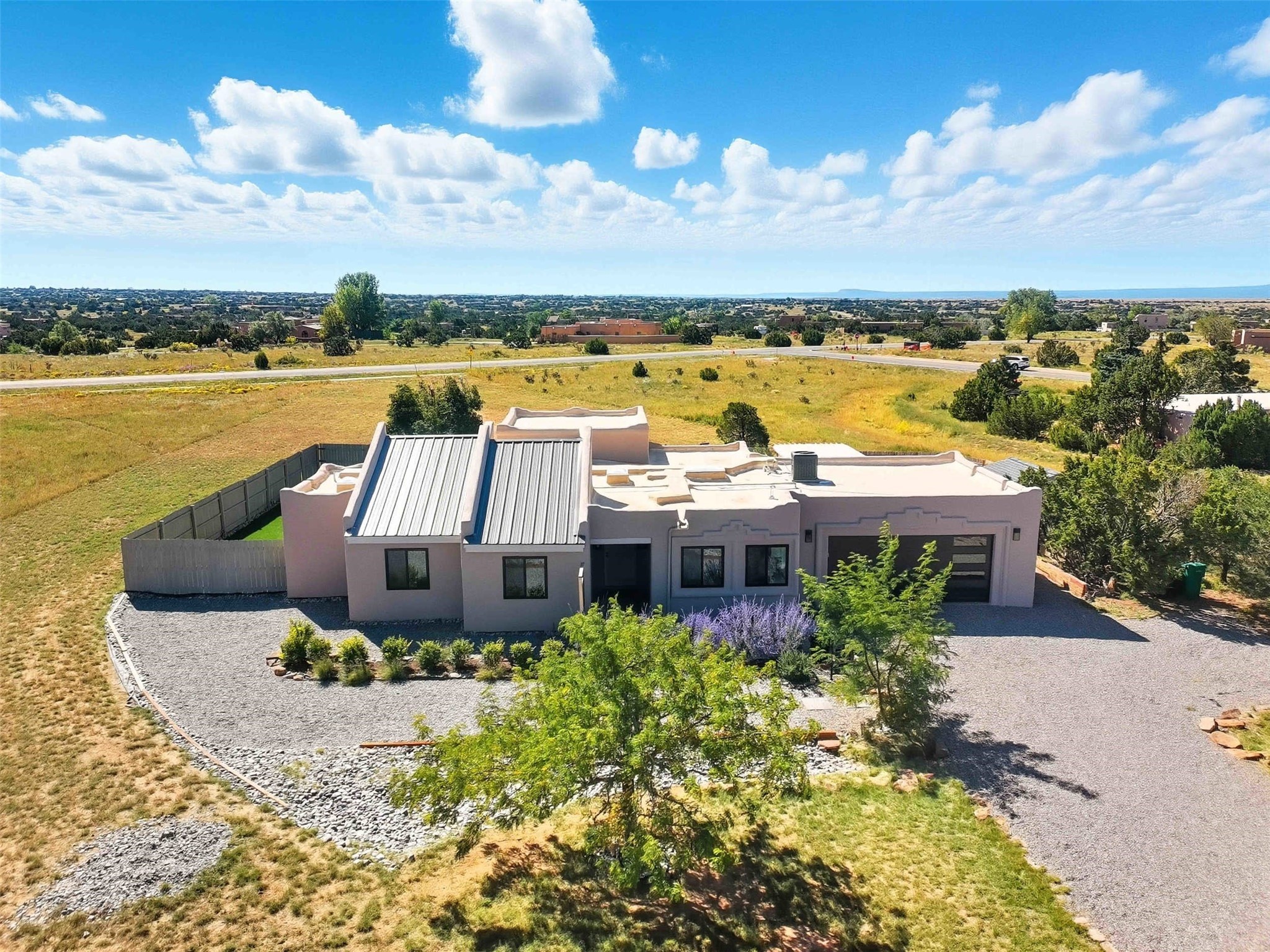 Huge price reduction! Welcome to a beautifully remodeled Eldorado home--truly move-in ready! Every detail has been thoughtfully updated to provide comfort, style, and ease of living. Recent improvements include new stucco, a durable TPO roof, energy-efficient windows, a modern HVAC system, updated electrical, and newer appliances.Set on 1.4 acres, this property offers both space and privacy. Inside, you'll find light-filled, inviting spaces perfect for everyday living and entertaining. Outdoors, enjoy al fresco dining beneath the Santa Fe skies, a fenced yard with a lush grass area ideal for pets or relaxation, and a storage shed for convenience.This Eldorado gem combines modern upgrades with the charm of Santa Fe living. Don't miss your chance--this home won't last long! Photos in this listing may have been enhanced. Buyers to verify all information.