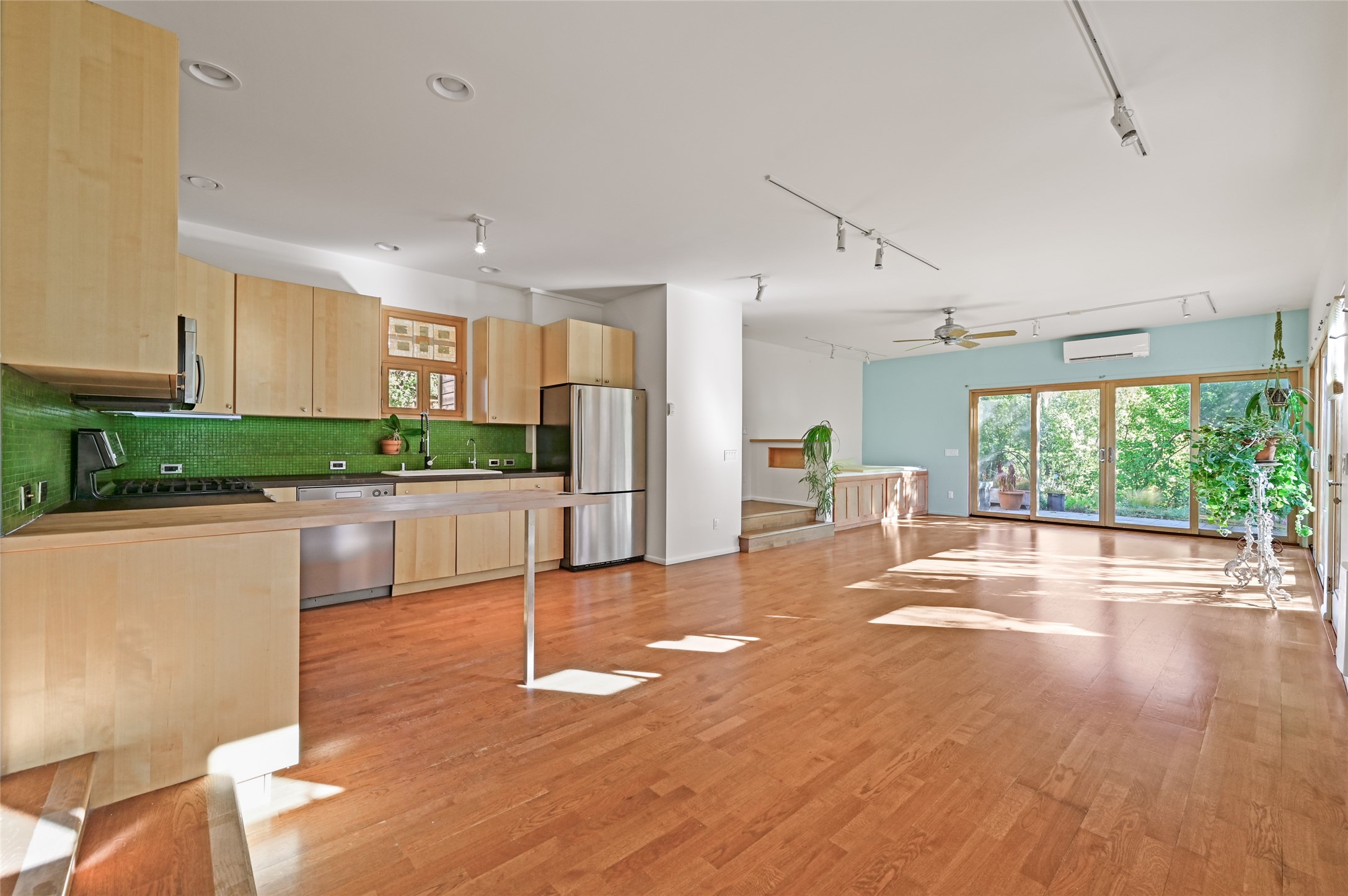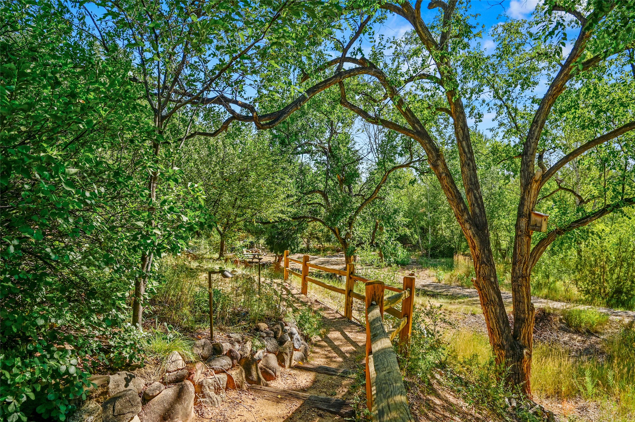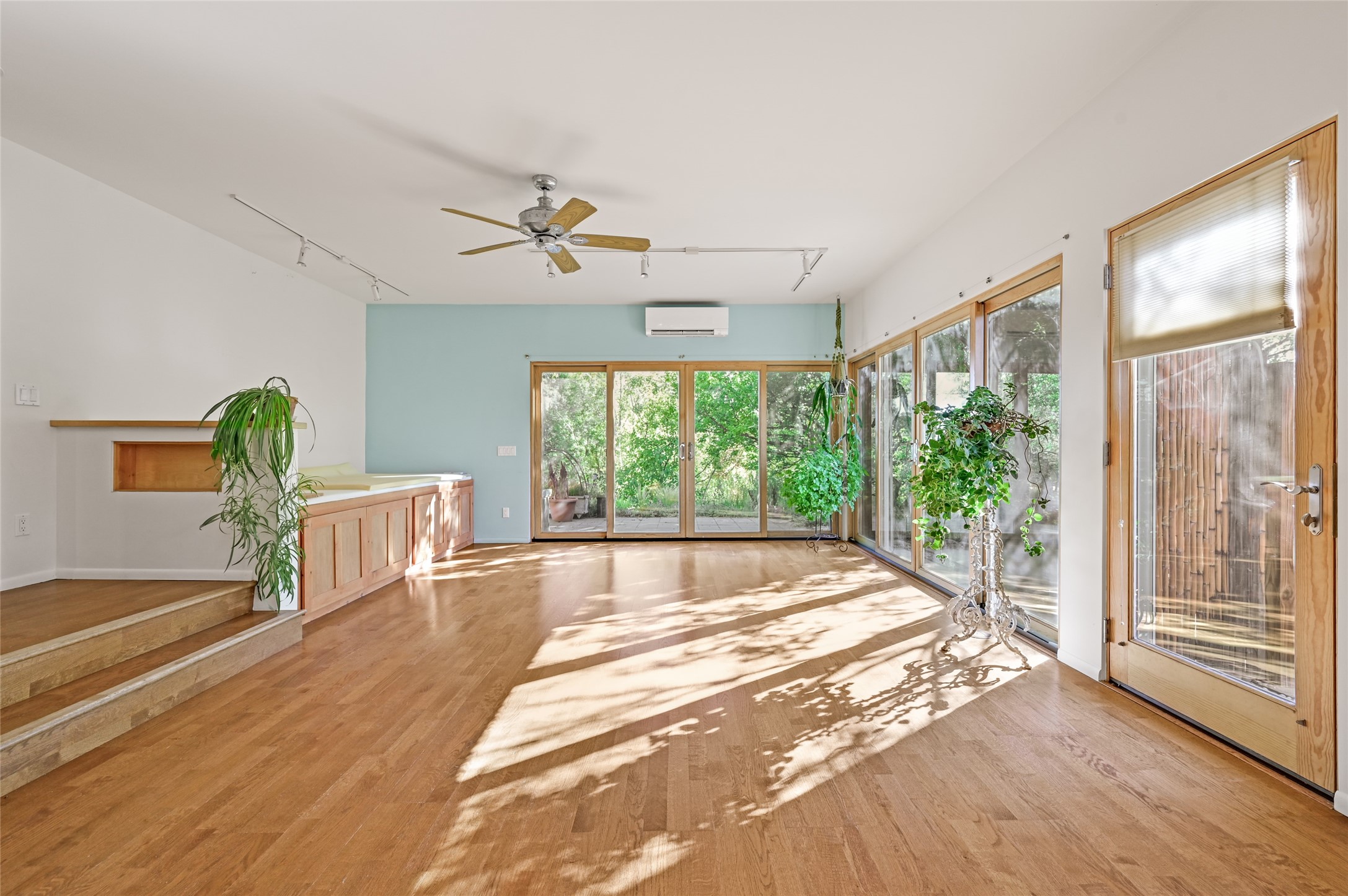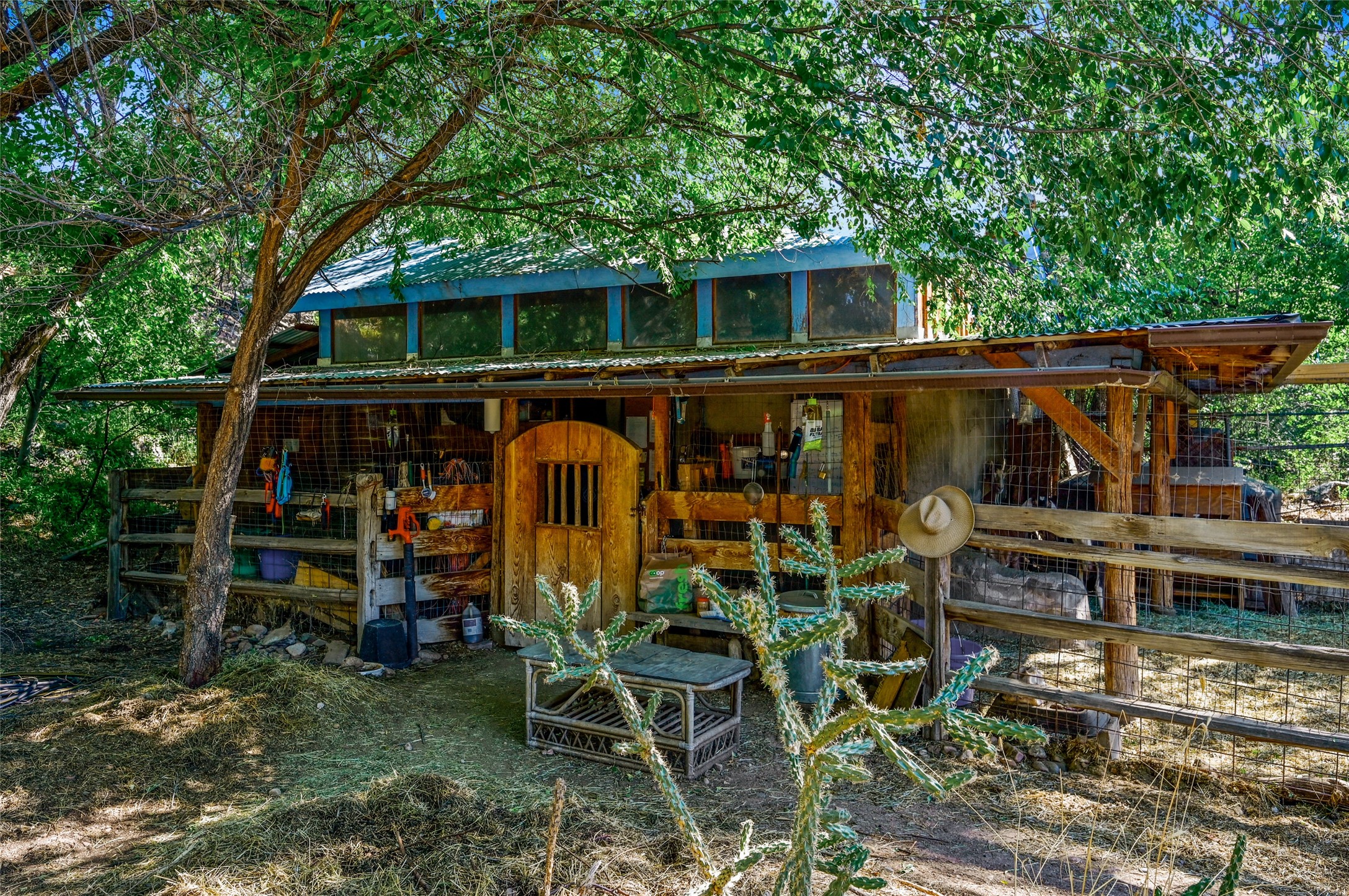 Nestled in the serene Tres Placitas del Rio Co-housing, an intimate enclave of only 11 homes on 2.5 acres. This 3 bedroom, 3 bath residence offers a rare blend of ecological living and artistic inspiration. Set along the Western banks of the Santa Fe River, this unique community is designed for those who cherish nature, creativity and connection.The home itself provides comfortable light filled spaces with a warm, inviting character. Ideal for families, gardeners or artists seeking both privacy and a sense of belonging. Solar panels on the roof provide energy efficiency, while a spacious basement awaits your creativity, perfect for a studio, workshop or additional living space. Beyond the private residence, residents share access to beautifully landscaped common areas featuring terraces, walking paths, an outdoor dining pavilion, an organic garden, fruit trees and a charming barn with goats and chickens.More than a home, this is a sustainable sanctuary where community and nature harmonize. Just minutes from all the cultural and culinary delights of downtown Santa Fe.