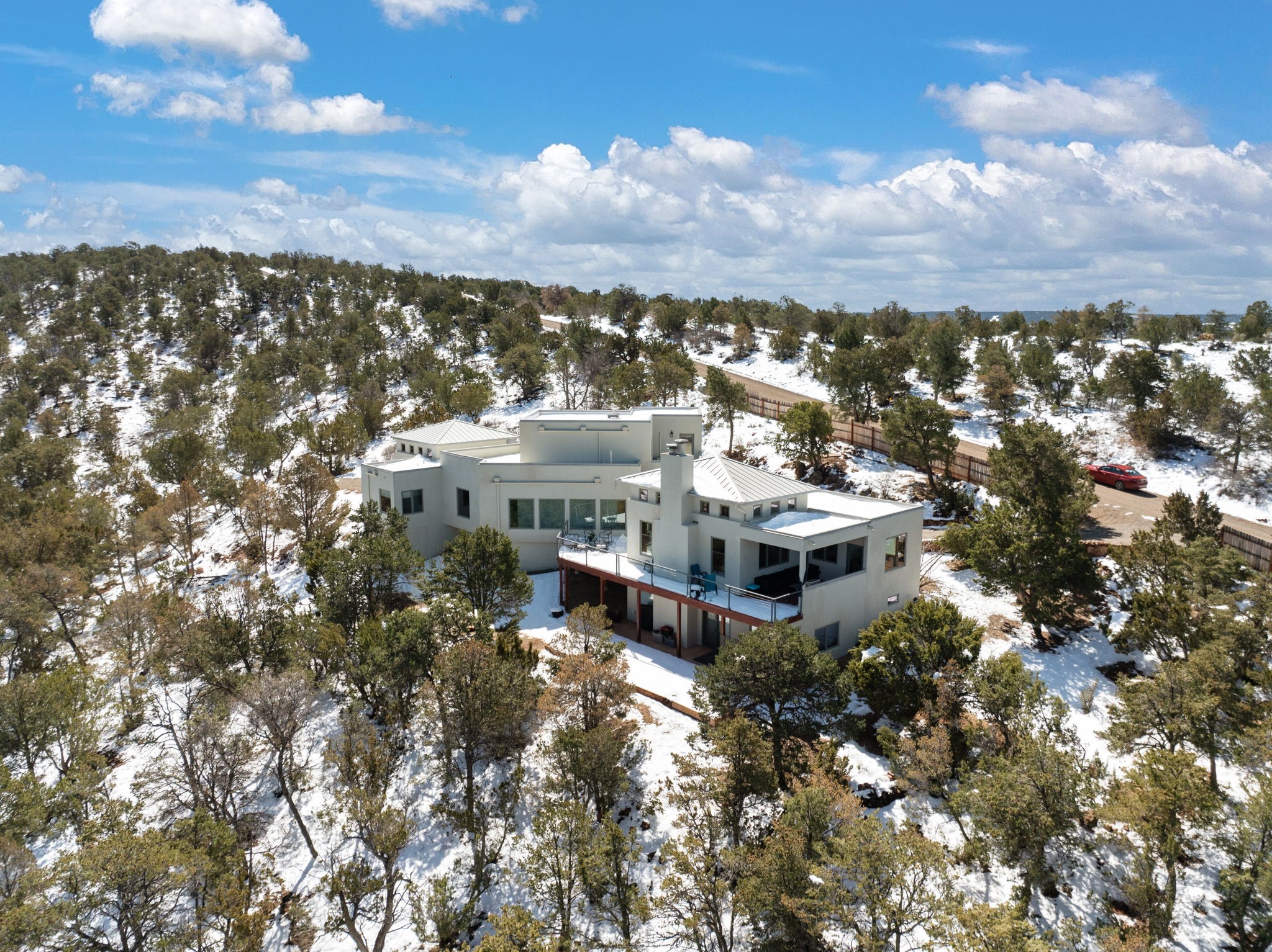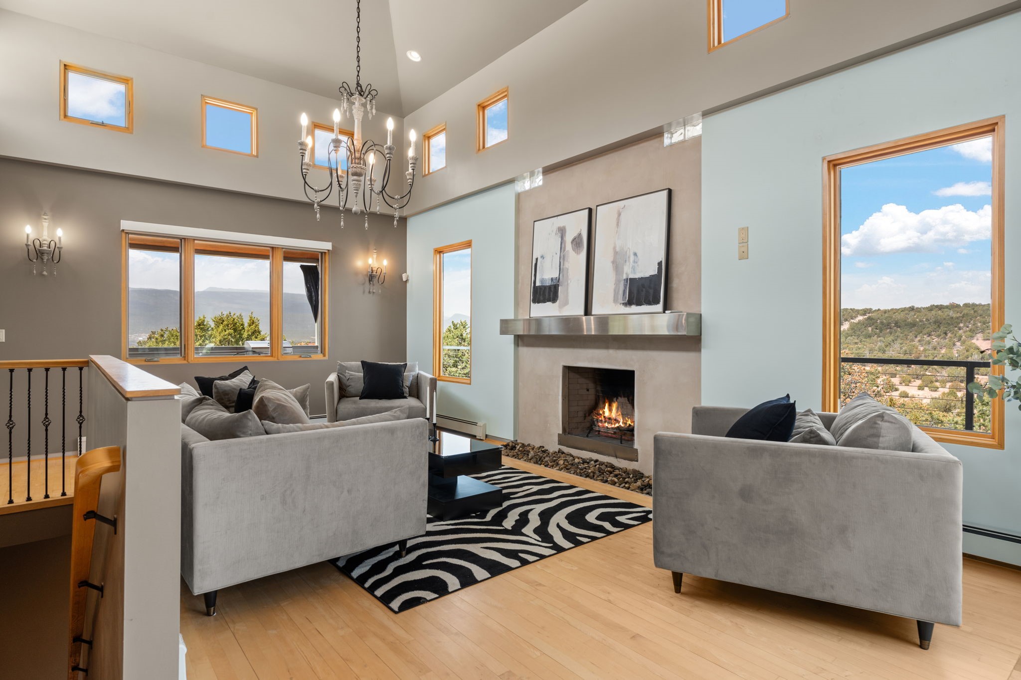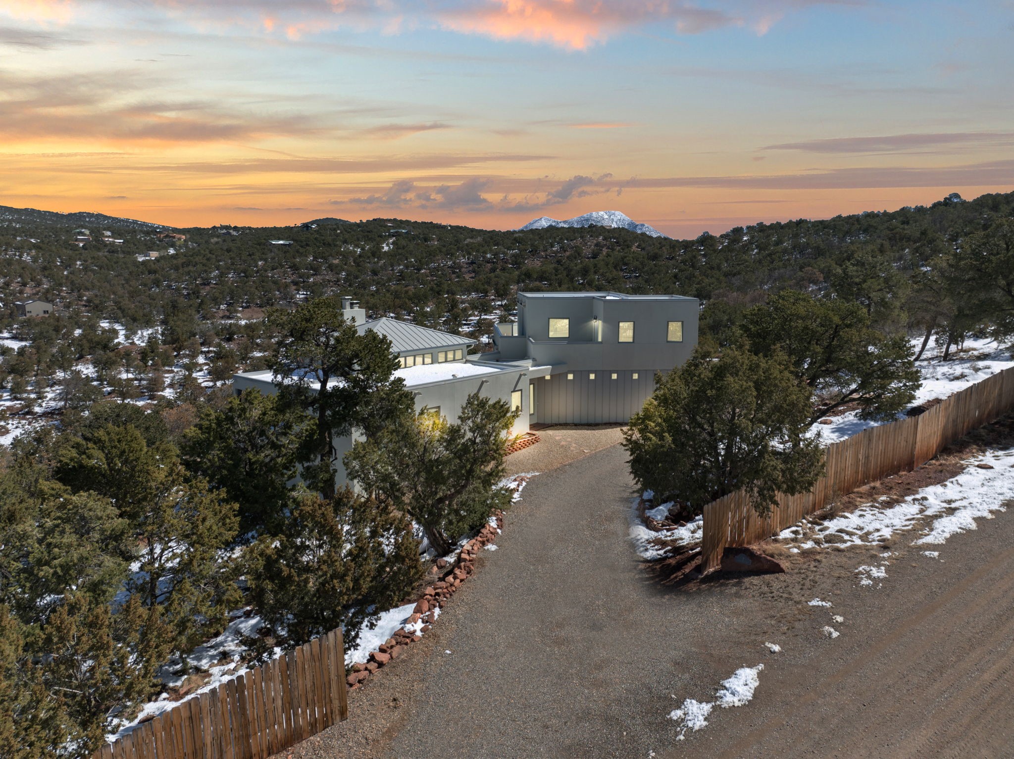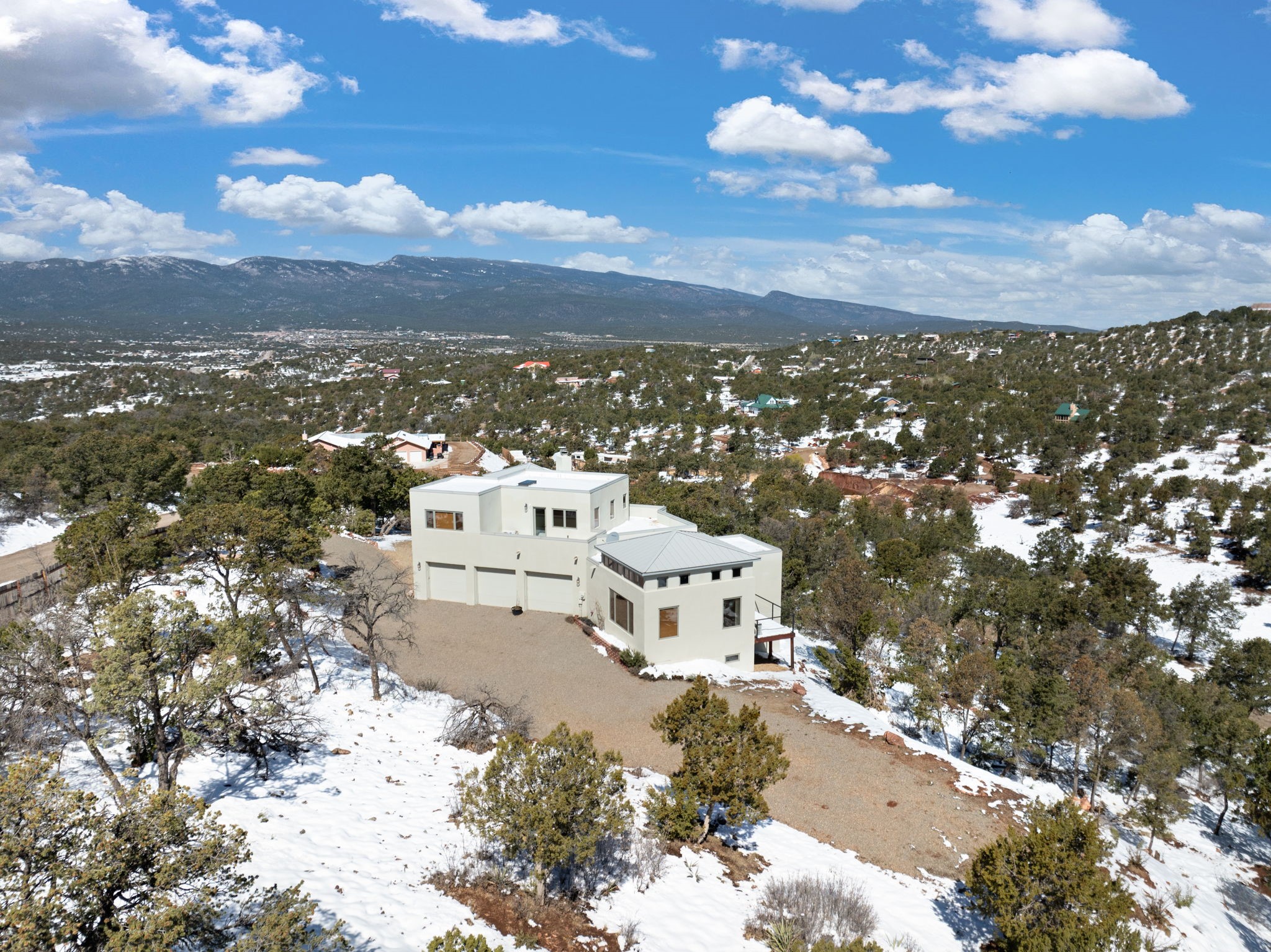 SELLERS ARE READY TO SELL! Modern luxury mountain living, Easy drive to Albuquerque and SF. Perfect for entertaining or as a quiet retreat. Private, gated neighborhood: 5-acre + lots, custom homes. Drenched in natural light. Sweeping views of the entire east slope of the Sandias. Expansive views from the many picture windows. Energy efficient FIRE RESISTANT ICF construction. Private decks off of every bedroom. Mini-splits throughout. 6-burner gas range with pot filler. Wine fridge. Giant walk-in laundry room. Over-sized, finished 3-car garage. Lots of extra storage. Easily accessed crawl space with even MORE storage! Solid hardwood/carpet/and ceramic tile flooring. Custom solid wood cabinetry throughout. 2 wood-burning fireplaces. Horses allowed. See supplement and docs for more. BRING US AN OFFER!
