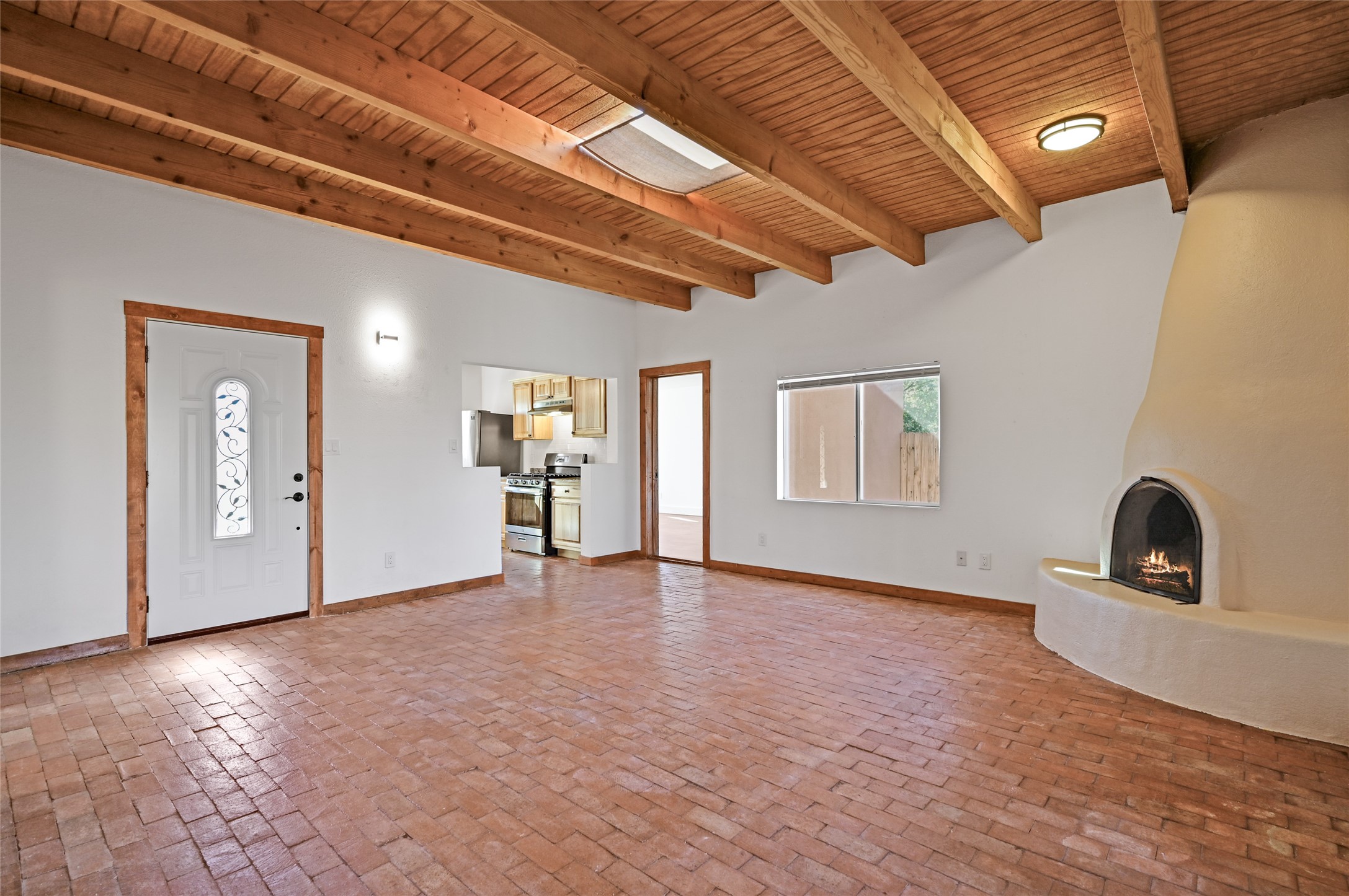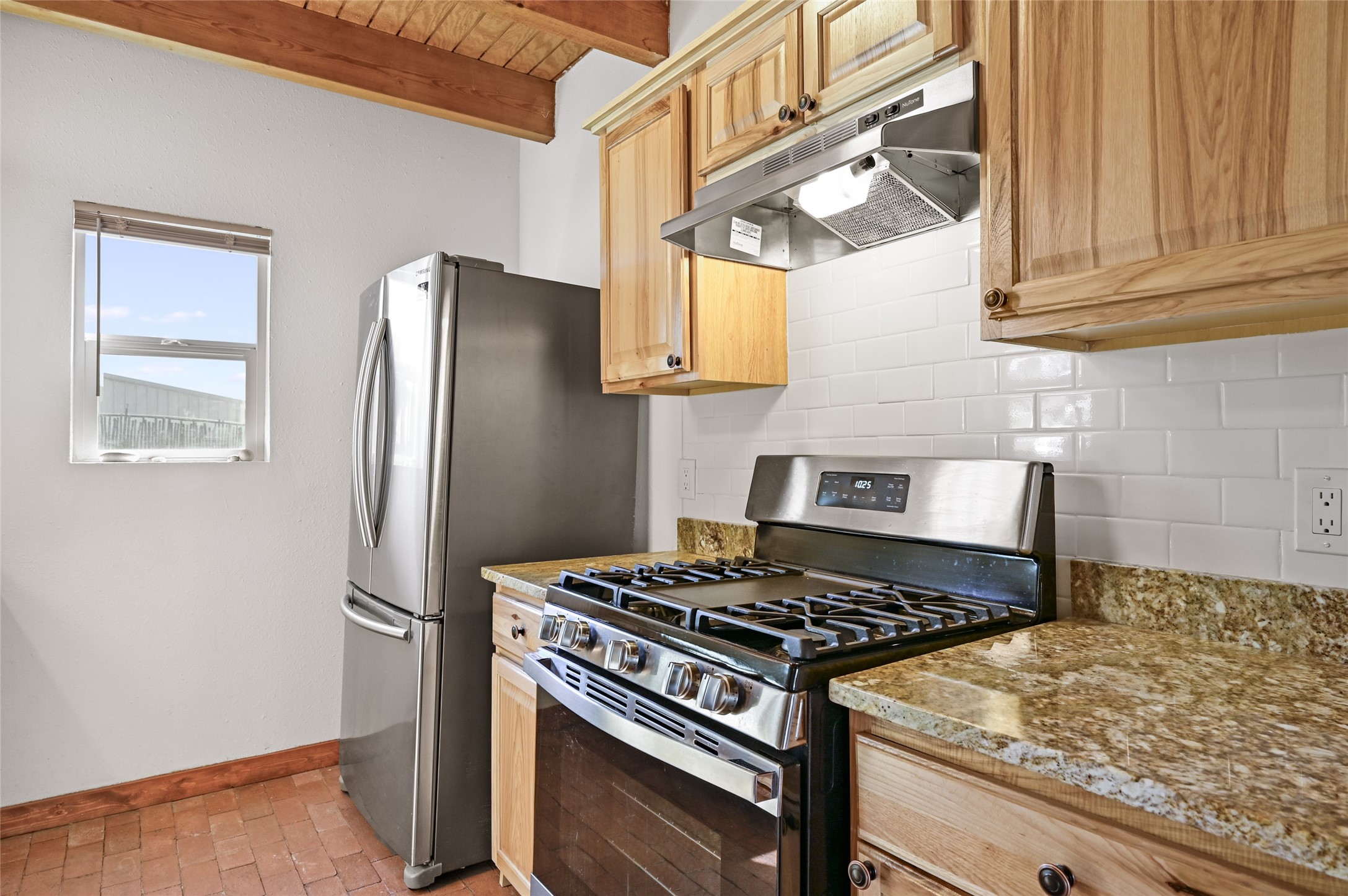 One of Santa Fe's hidden gems, the 12-unit Charles Siringo Ranch Condominiums live like single family homes in the center of town on land once part of the original Charles Siringo Ranch. This home offers 1,511sqft of heated living space with a 3BD-2BA + bonus room configuration. The bonus room offers wonderful versatility and would make for a great office, fourth bedroom, studio, or den! Santa Fe-style finishes include a wood burning kiva fireplace, brick floors throughout, and high beam ceilings. The kitchen has been recently updated with granite countertops, stainless steel appliances and beautiful solid wood cabinetry. Thoughtful updates extend into both bathrooms with updated vanities, lighting, and other fixtures. Outside, the backyard is a low-maintenance, peaceful retreat with a large shaded wood deck, storage shed, and is completely enclosed. Conveniently located near grocery stores, restaurants, parks and other amenities, this gem off- the-beaten-path is not one to skip!