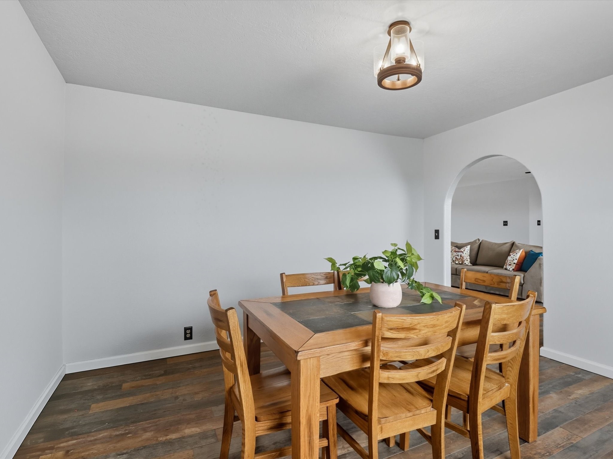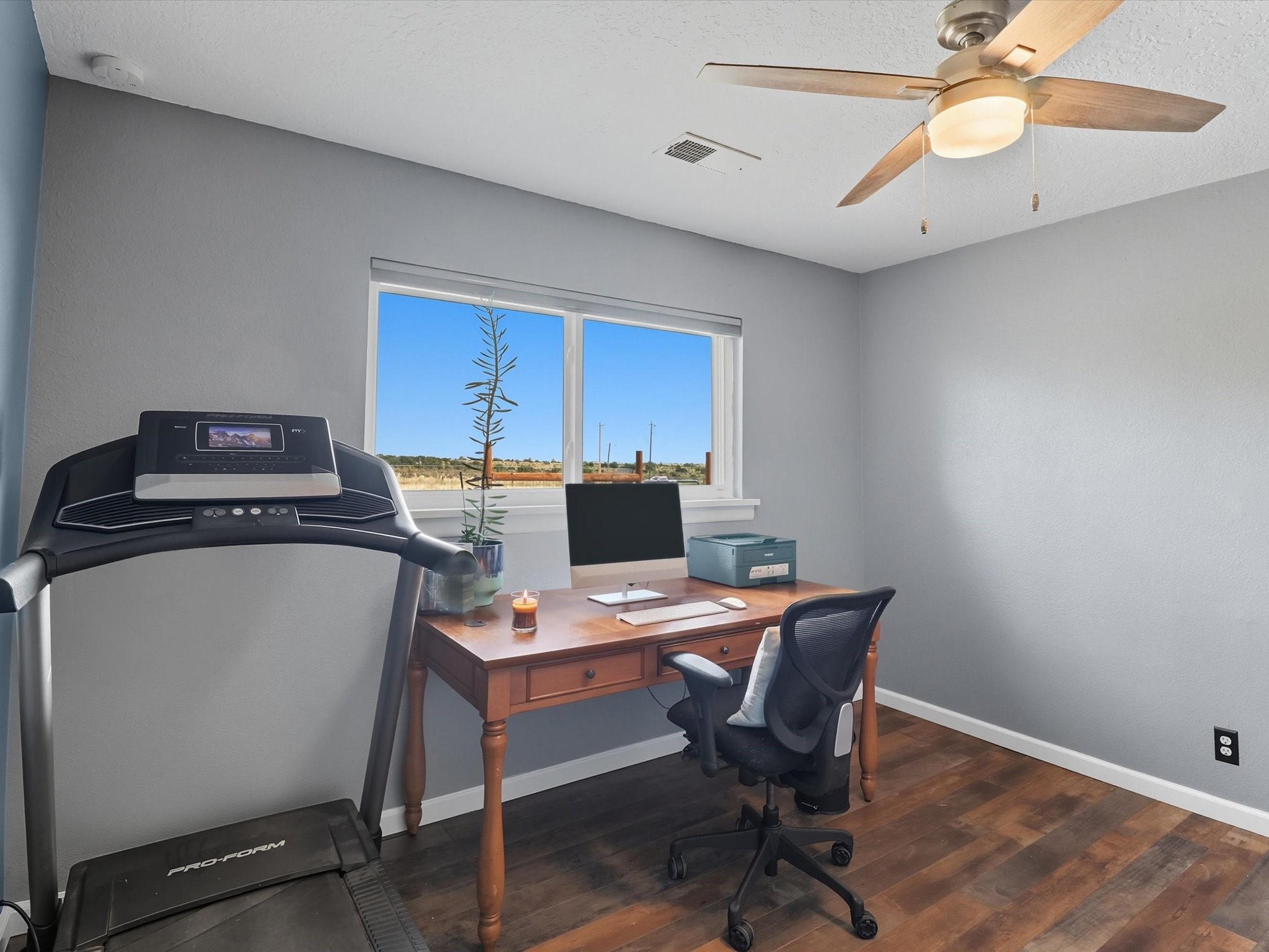 Discover peaceful, single-level living on a sprawling 3-acre lot in Edgewood, where modern luxury meets tranquil country charm. The heart of this home is the fully remodeled kitchen, featuring custom-crafted cabinetry, sleek granite countertops, and new luxury vinyl flooring that flows throughout the home. In 2021 new windows were put in the home, including a large living room window that frames a spectacular view of the mountains and surrounding landscape. The property includes a fully fenced acre ideal for pets or outdoor recreation, leaving 2 acres for horses or recreational vehicles. The spacious, detached garage offers ample room for vehicles, storage, or a workshop, catering to any hobbyist. No HOA offers unmatched freedom and flexibility. This property is full of upgrades and ready for you to move in.