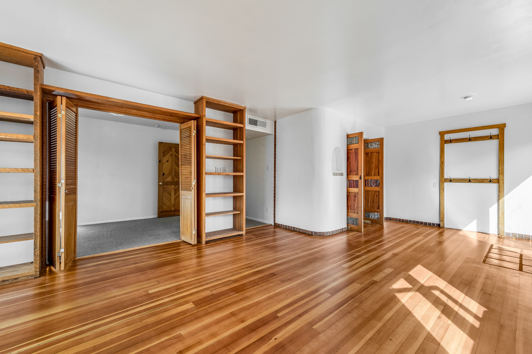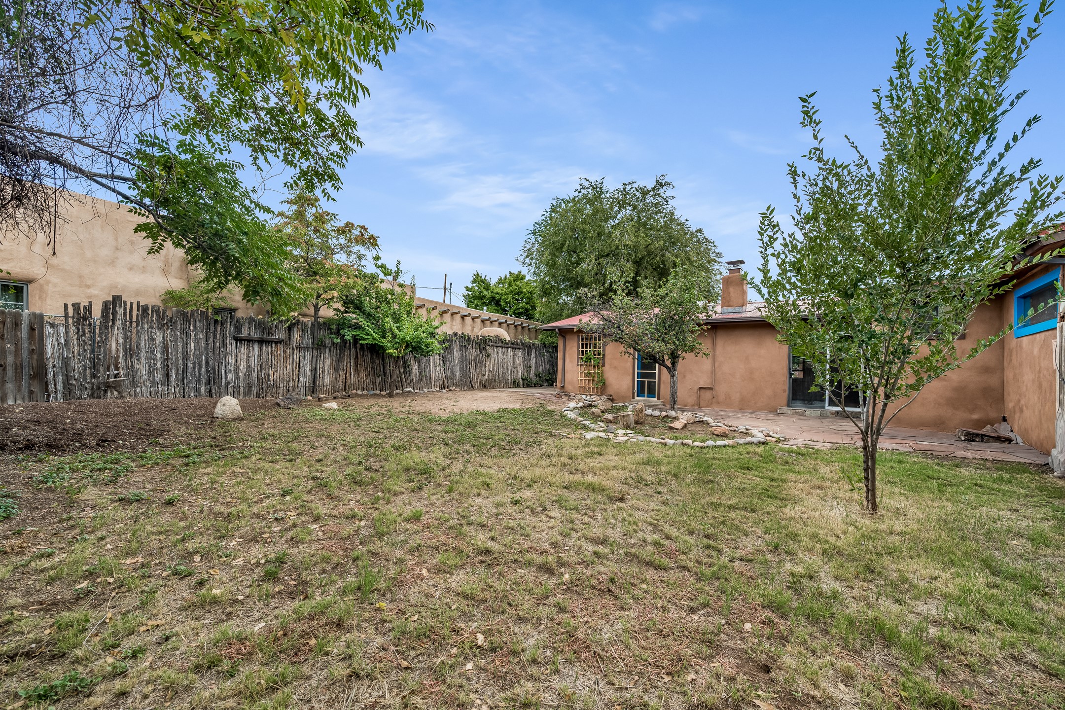 This quintessential Santa Fe style property offering Kiva fireplace, willow doors, Talavera and Saltillo tile, nichos, a walled courtyard, and off-street parking is tucked away in the much sought after Railyard Arts District. The setting is peaceful and quiet yet only a quick 5 minute jaunt to The Violet Crown, Farmer's Market, park, outdoor concerts, coffee shop, pubs, restaurants, and the vibrant vibe offered along Guadalupe Street! About a 15 minute walk to The Santa Fe Plaza where you will find shopping, world-class dining, and galleries along with stellar museums. Walking and cycling trails are minutes away making this the perfect urban home. One can even hop on the train for a ride to Albuquerque! Opportunities Abound for this property which features a home with attached guest house. You can live in one unit and rent the other or rent them both! There is even room to add a casita! Easy access to St. Francis Drive is a plus for those who commute to Los Alamos! Both units offer office space for those who work from home. A Must See!