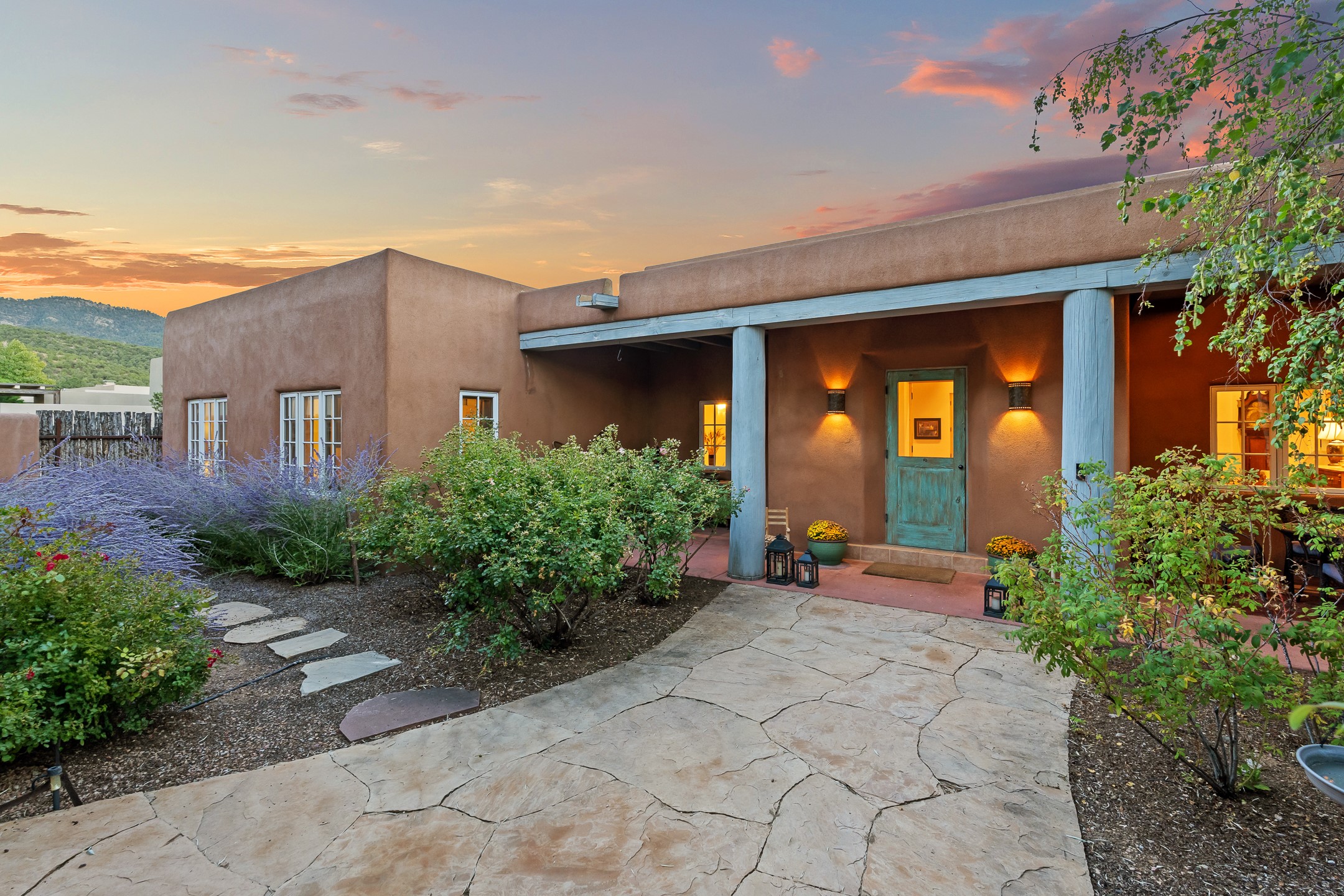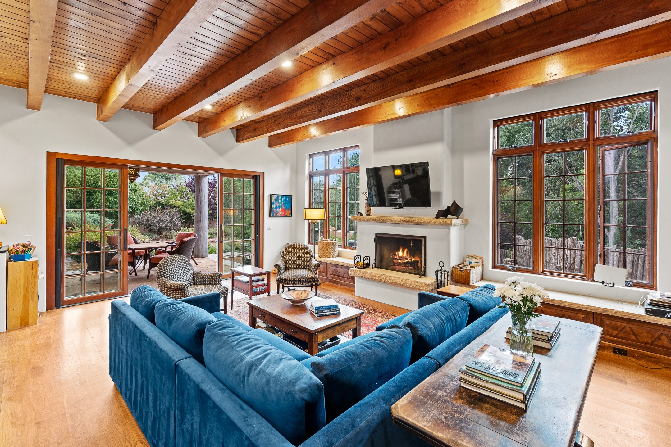 Nestled on just under half an acre in Santa Fe's highly sought-after historic Eastside, this incredible single-level residence offers serene privacy, lush landscaping, and the soothing sounds of the nearby Santa Fe River. Thoughtfully designed for effortless indoor-outdoor living, the home features extensive patios and terraces with beautiful eastern views--perfect for morning coffee or evening entertaining beneath the stars.The main house boasts four bedrooms, including two with en suite baths, providing flexible spaces for family and guests. A separate guesthouse, conceived by acclaimed architect Trey Jordan, serves as a true artist's sanctuary with soaring ceilings, abundant natural light, and a creative, inspiring atmosphere.Step outside to enjoy immediate access to walking trails that connect to the Santa Fe River Walk and the famed Dale Ball Trails. From this idyllic setting, you can stroll to The Teahouse for a quiet morning coffee or wander down Canyon Road to enjoy world-class dining and galleries. This rare Eastside property offers the best of Santa Fe's historic charm, natural beauty, and vibrant cultural life--just steps from your door.