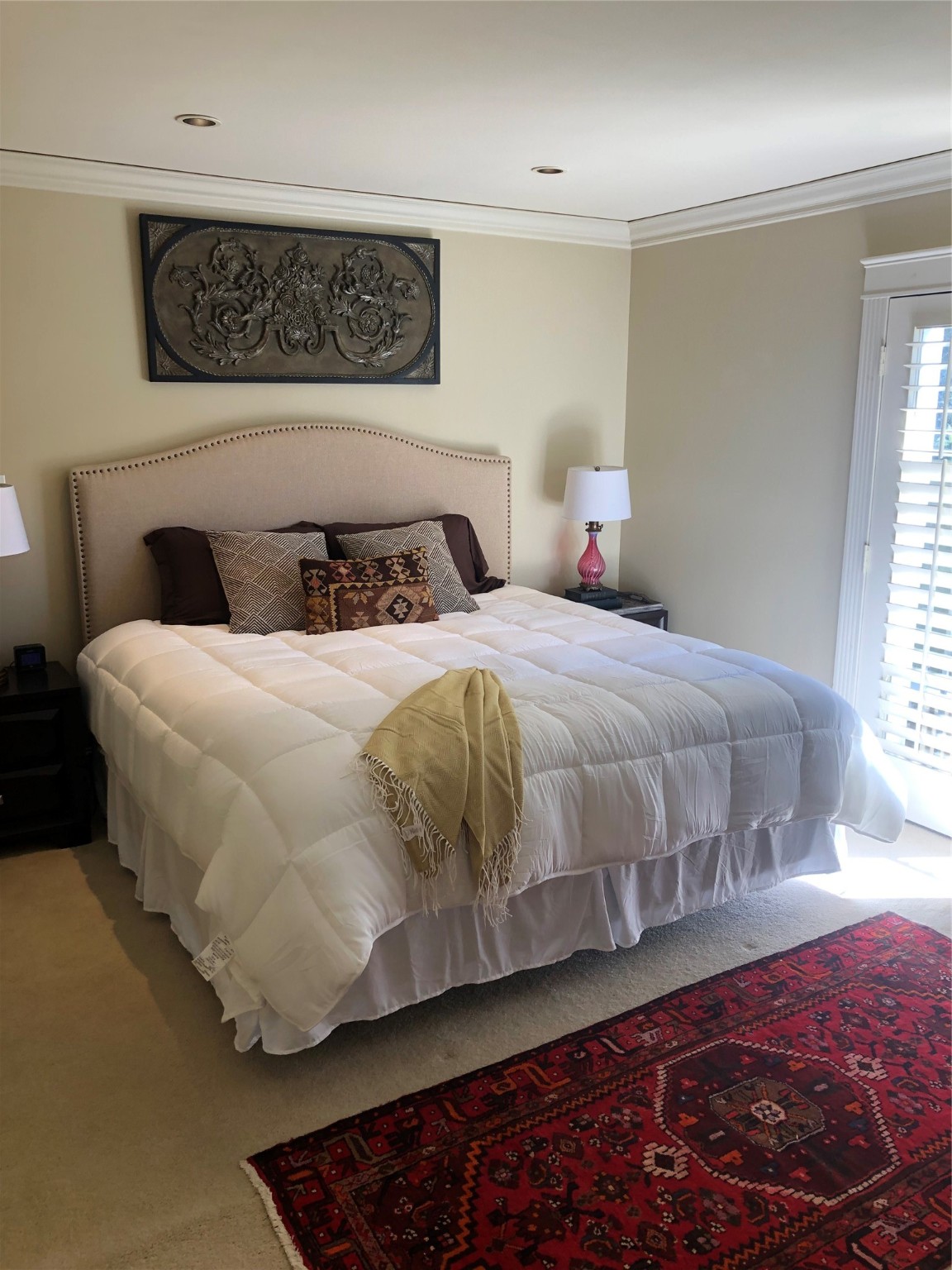 Tantalizing opportunity to live walking distance to the Plaza. Behind the gates of El Matador, you will find this sweet two bedroom one bath off the courtyard with eagle's eye view of the beautifully landscaped courtyard. You'll have a patio to enjoy Santa Fe air and it leads into the open concept of living space graced with crown molding and plantation shutters. Built in shelving offers additional storage along with an elegant fireplace. The kitchen/dining area has been upgraded with all new LG Suite appliances, soft lighting, and efficient cabinetry. LVP and tile flooring throughout. Furnace with refrigerated air installed in 2023, as well as newer washer/dryer combo allowing extra space. Remodeled bathroom is filled with light and ambiance. One bedroom with a full balcony and extra storage, the other bedroom with a Juliette balcony, have built-in drawer/hanging closets with auto light system. Somewhat unique to El Matador is two covered parking spaces. The easy access to Los Alamos, the National Forest, and The Plaza are crowning jewels.