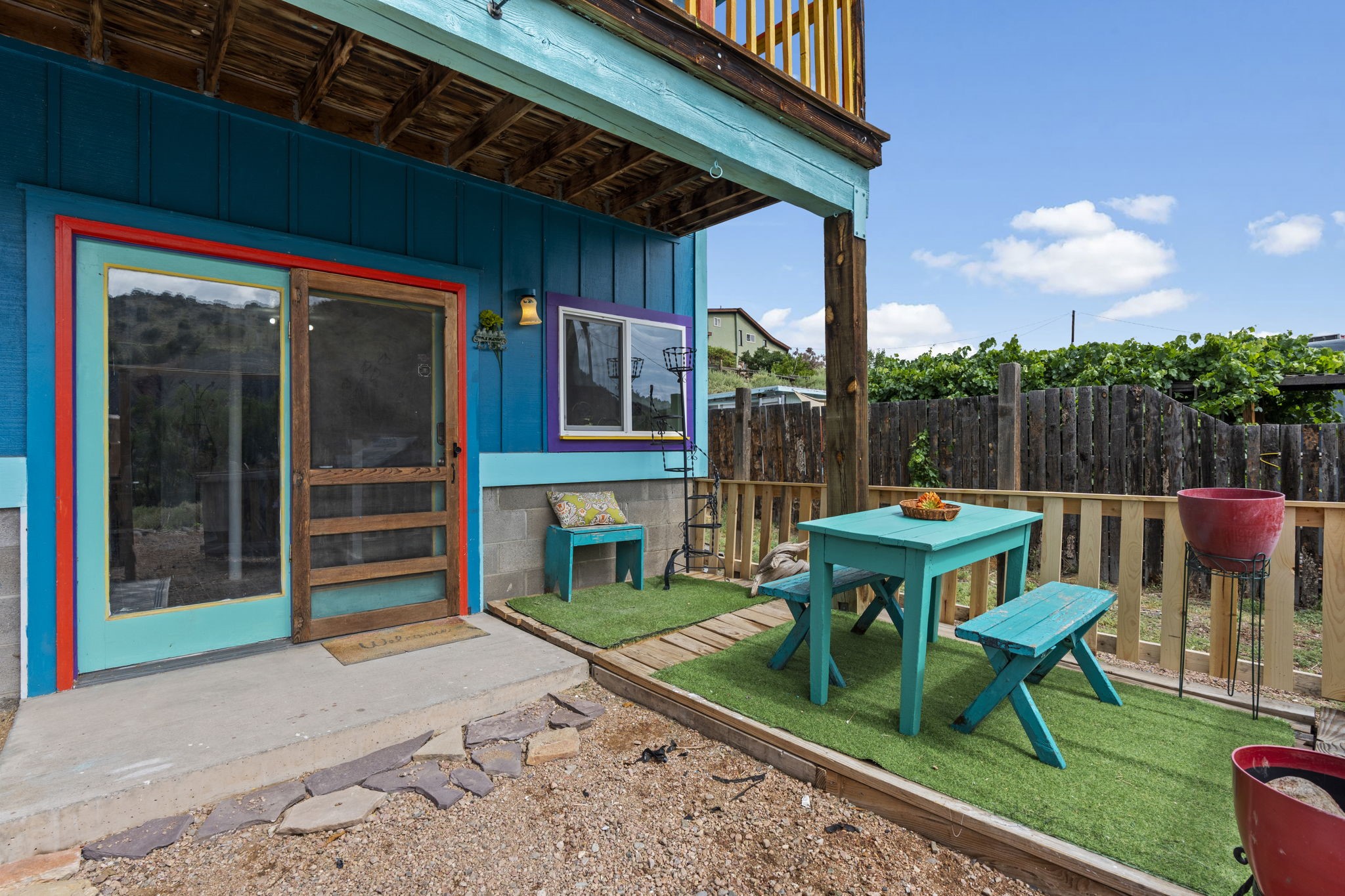 Authentic Magical Madrid Cottage with Creative Spaces! This sun-soaked gem blends possibility with artistic living. The upper level features a one-bedroom, one full bathroom, full kitchen owner's suite with a private deck perfect for morning coffee or stargazing. Below, features a flex space like no other. Open floorplan with one bathroom and full kitchen. Great family home. With a separate entrance, the downstairs is perfect for a full-time rental or a short-term rental. Commercial space to display your unique art, local jewelry, homemade candles, local apparel, or anything your heart desires, while living upstairs and walking to enjoy all that Madrid has to offer! PLUS, lot next door is included. Perfect for additional parking or bldg. Amy Biehl Elem, Milagro Middle, SF High. YOU'RE HOME!