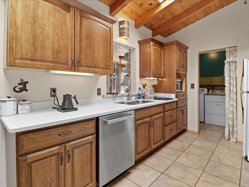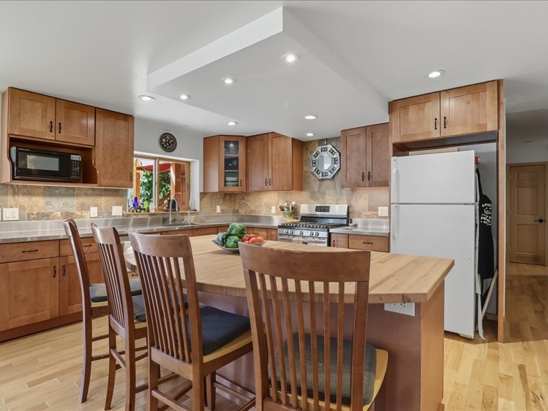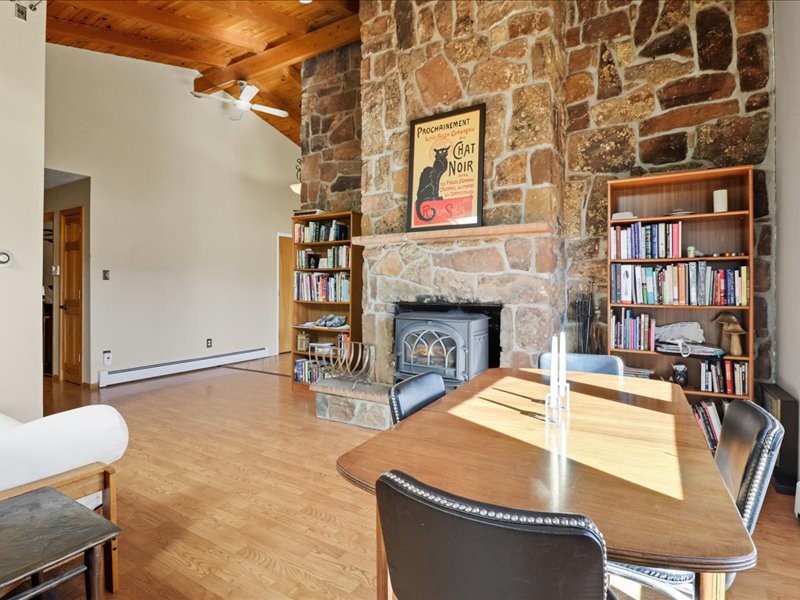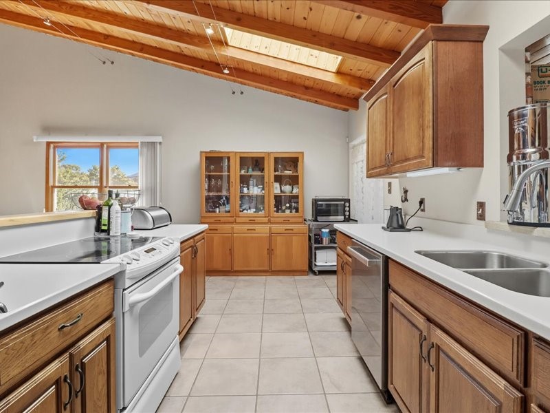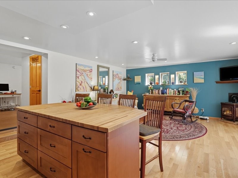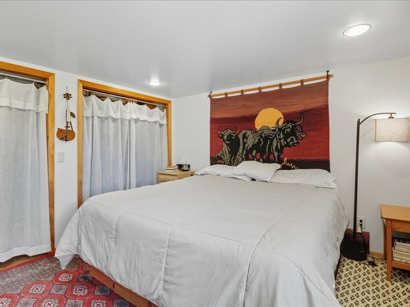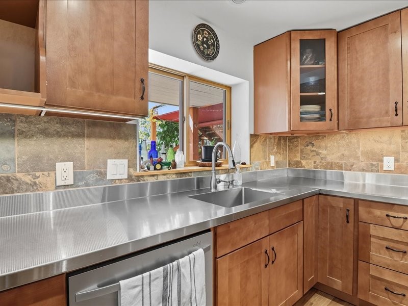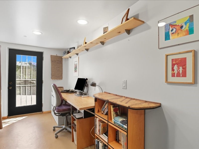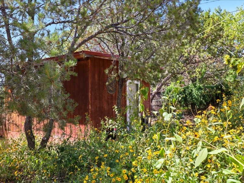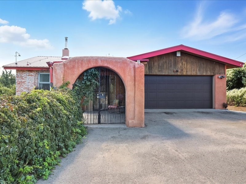 Welcome to this exceptional Santa Fe property, where classic brick construction meets timeless character and thoughtful updates. With 3242 sq ft of well-designed space, the property offers two connected but separate living quarters plus a charming studio, ideal for multigenerational living, rental income, or guest accommodations. Set on a lush, private lot, this is a true garden sanctuary, boasting a pitched metal roof, inviting brick exterior, fruit trees, greenhouse, water rights, and both city and well water. Multiple porches and patios extend the living space outdoors, perfect for enjoying Santa Fe's blue skies, and endless sunsets. A sustainable grey water system nourishes the gardens, while solar panels add efficiency. The upper 3-bedroom residence offers soaring ceilings with wood beams, recessed lighting, windows framing mountain views, and a striking interior rock wall with wood stove, brings rustic charm. Tile and laminate floors flow throughout. The primary suite features a full bath, while a second bath serves guests. A south-facing porch captures warmth and light.The lower 3-bedroom residence highlights warm wood details, butcher block and steel counters, and new windows. The primary suite has a walk-in closet, patio access, and en-suite bath. Multiple heating zones, gas stove, and ceiling fans ensure year-round comfort. Additional highlights include 6 heating zones, established rental history, and a flexible design perfect for live/rent or guest accommodations. A separate utility meter enhances rental potential. Completing the property is a detached studio, perfect for an artist studio or private retreat. With it's brick exterior, solar power, greenhouse, gardens, fruit trees, patios, hot tub, 2 car garage, ample storage, and mountain views, this home embodies the Santa Fe lifestyle. Whether envisioned as a family compound, income-producing property, or serene retreat, it offers unmatched character, flexibility, and lasting value.