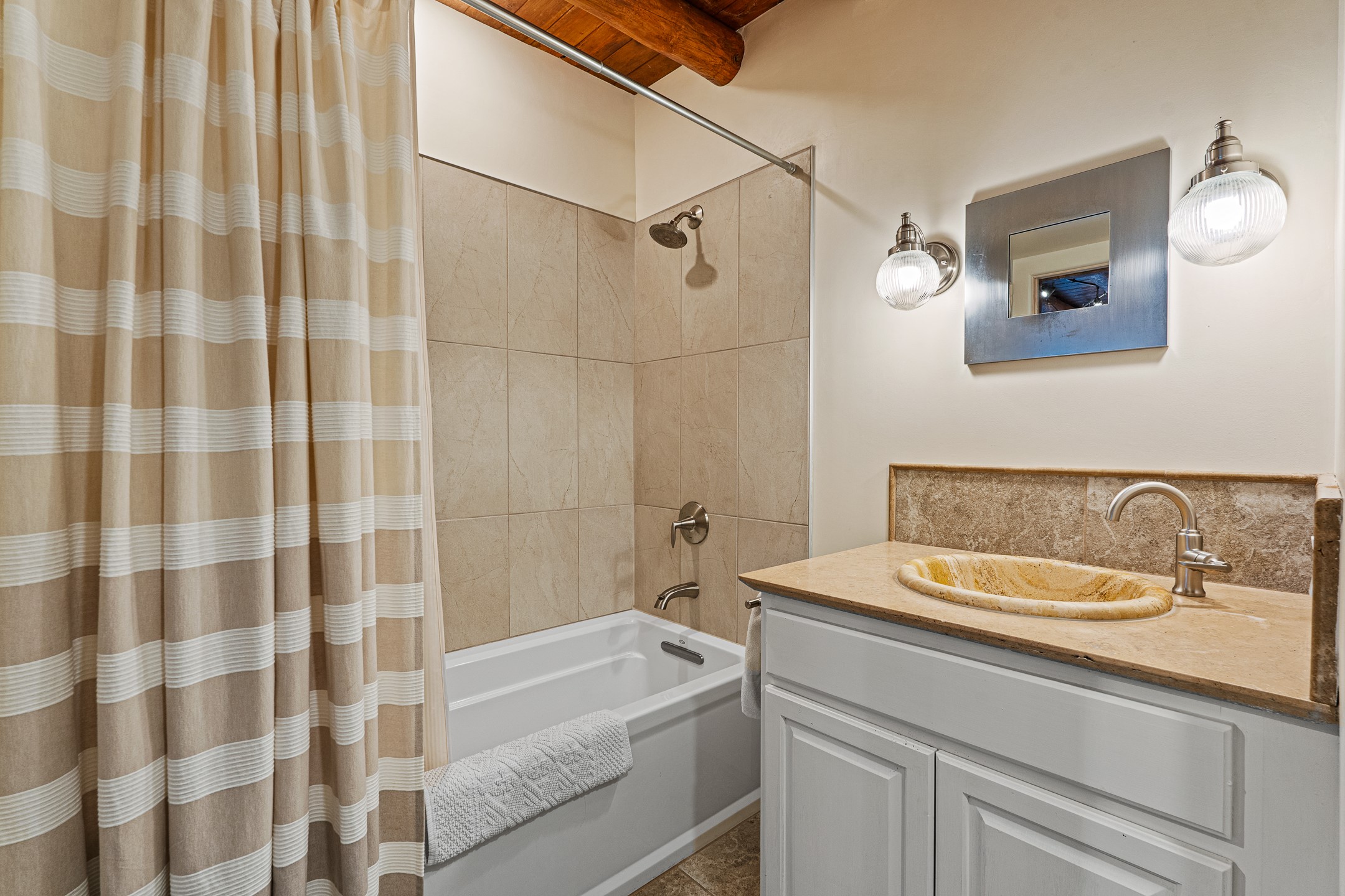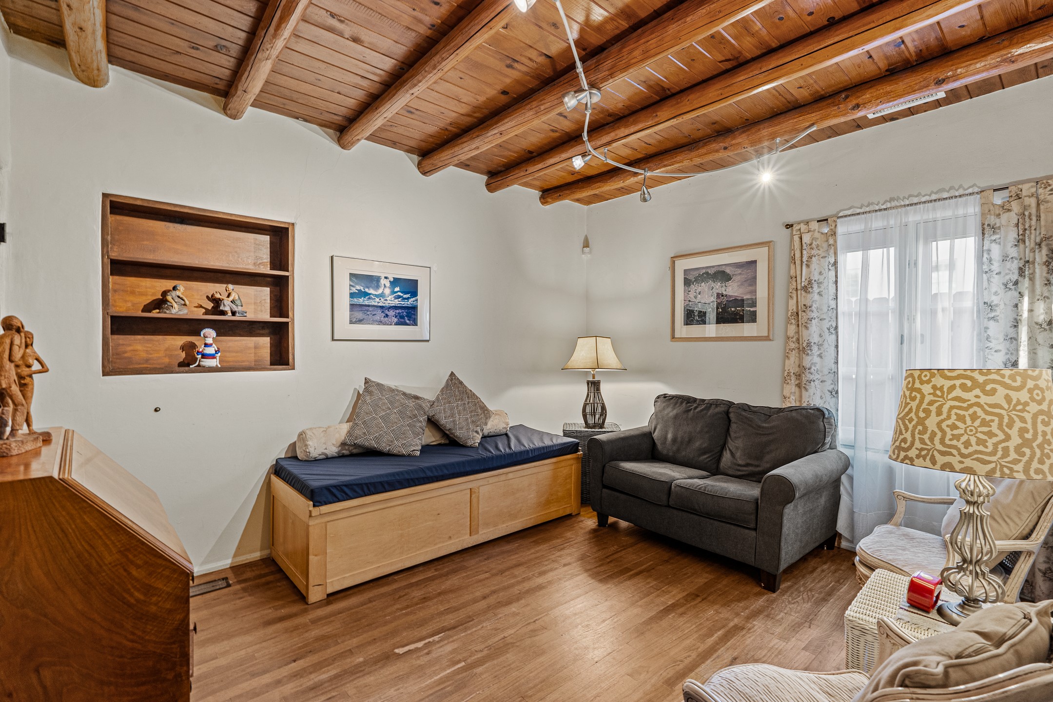 Beautifully renovated commercial property featuring sustainable, green design elements in the bustling S. St. Francis corridor, designed by Scott Irving. Step into a welcoming reception and waiting area with hardwood floors and viga ceilings throughout. The front of the building includes three windowed offices and two restrooms, one of which is ADA accessible. The updated kitchen/breakroom features track lighting and modern appliances.Toward the back of the building, you'll find a private office with an en suite restroom and hardwood floors, along with a large office or conference room that opens to a private, fenced, landscaped courtyard shaded by mature trees. Additional features include washer/dryer connections, abundant storage, and on-site parking. This property is ideal for office users, medical professionals, and many other business types. Don't miss this opportunity!