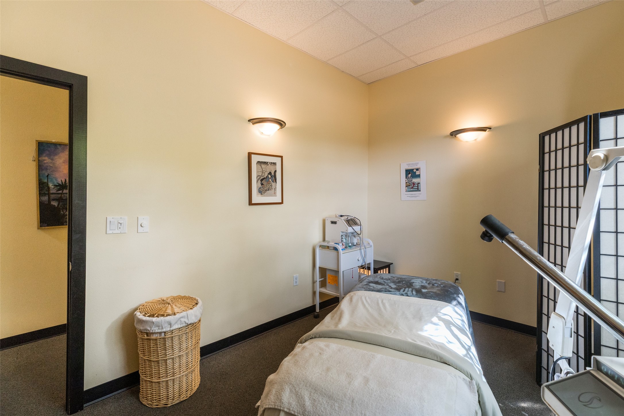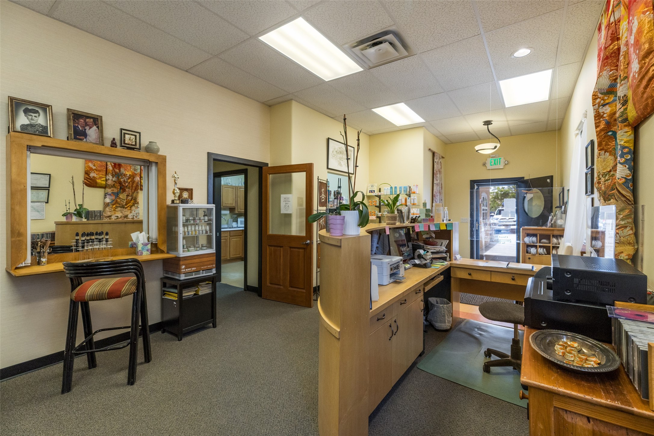 Set within the Galisteo Center Condominium development, this single owner commercial space is highly versatile. This professional development offers ample parking, ADA access, and green space, making for a tranquil setting that is both convenient and inviting. The 1,223-square-foot office features a welcoming reception area that includes a tiled entry, high ceilings, and a custom built desk. A central hallway leads to five rooms (four of those rooms are plumbed with built in cabinetry and sinks) that can serve as offices, treatment rooms, storage, and/or a lab. Further enhancing the appeal are 2 ADA bathrooms, washer and dryer hookups, a regularly maintained HVAC system for heating and cooling, a newly installed roofing system (c. 2022), and a newer water heater. Exterior maintenance is handled by the COA ($285/mo, paid quarterly), making upkeep a breeze. Located in the heart of the health & wellness corridor of St. Michaels Drive, this office is near major hospitals, other business parks, amenities, and major transportation lines. Whether you're a massage therapist, acupuncturist, aesthetician, or healthcare provider, this space is well-suited to support your entrepenuerial vision. Let your next business chapter begin here.