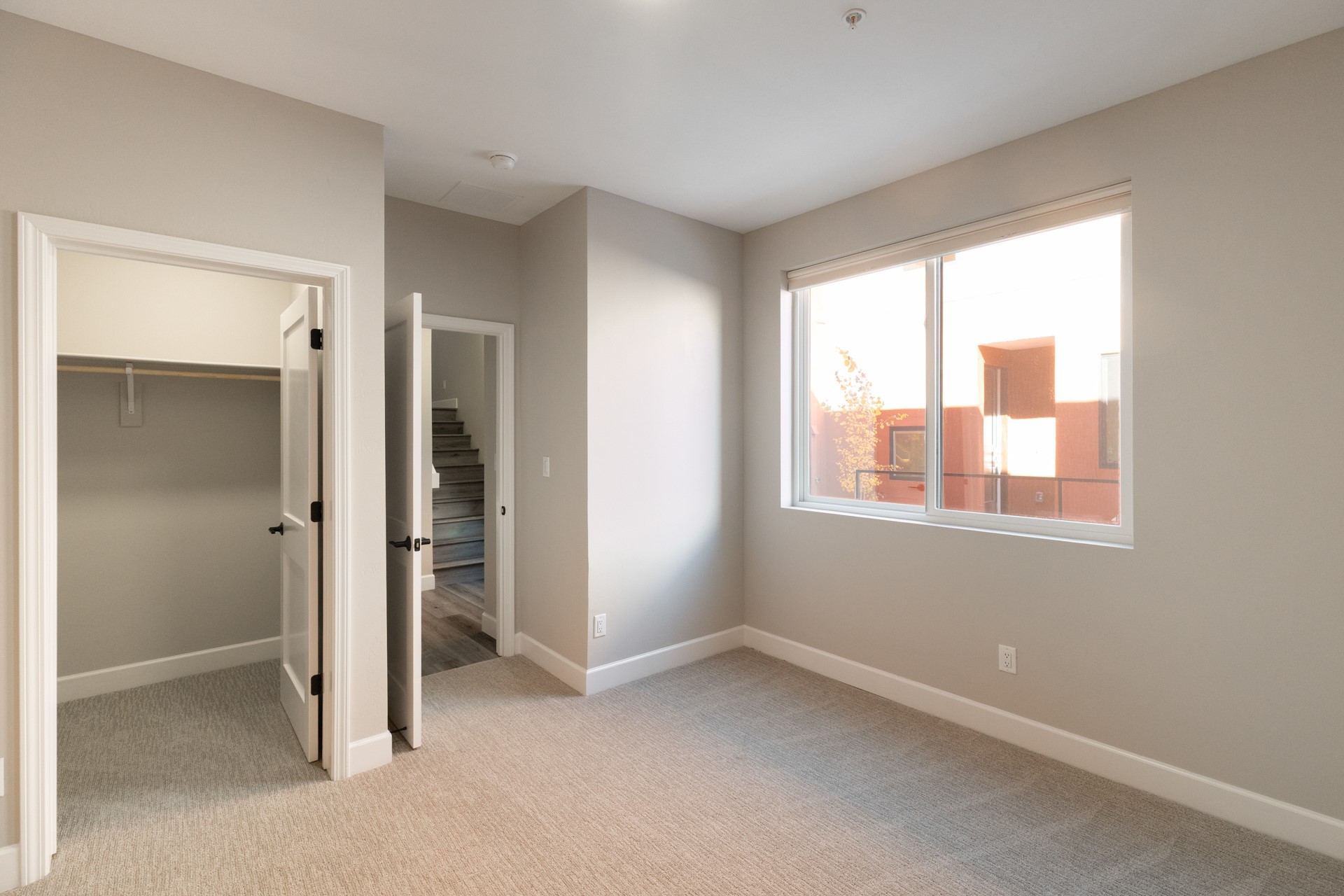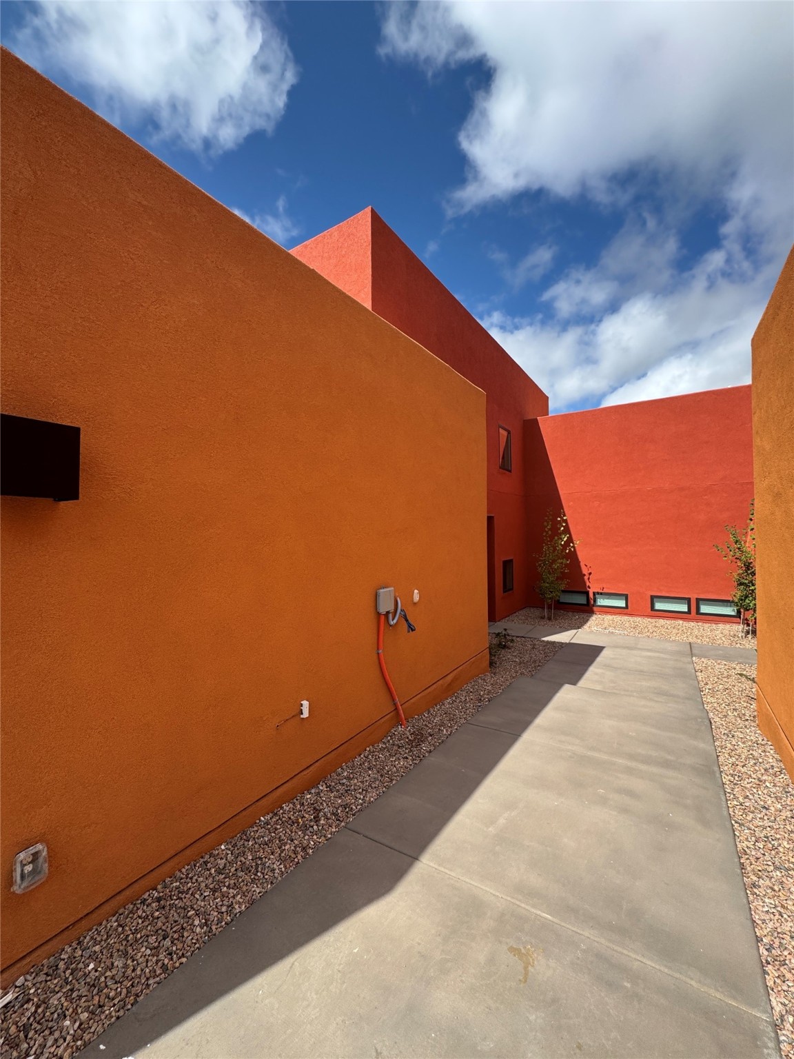 Welcome to Unit #45 at Zocalo, Santa Fe--A refined interior unit that perfectly melds luxury with comfort. As you step into the inviting foyer, you are presented with two enticing options: descend to the lower level where the expansive great room awaits, complete with modern grey toned, sophisticated brushed nickel finishes, and contemporary maple-finished flooring that radiates modern elegance. This level also houses the well-appointed kitchen and provides access to the beautifully landscaped patio, ideal for both vibrant entertainment and serene relaxation.Alternatively, ascend to the upper level where you will find the luxurious primary suite, featuring a cozy second fireplace that creates an opulent sanctuary perfect for restful nights. Atop boasts a junior suite offering additional comfort and privacy.