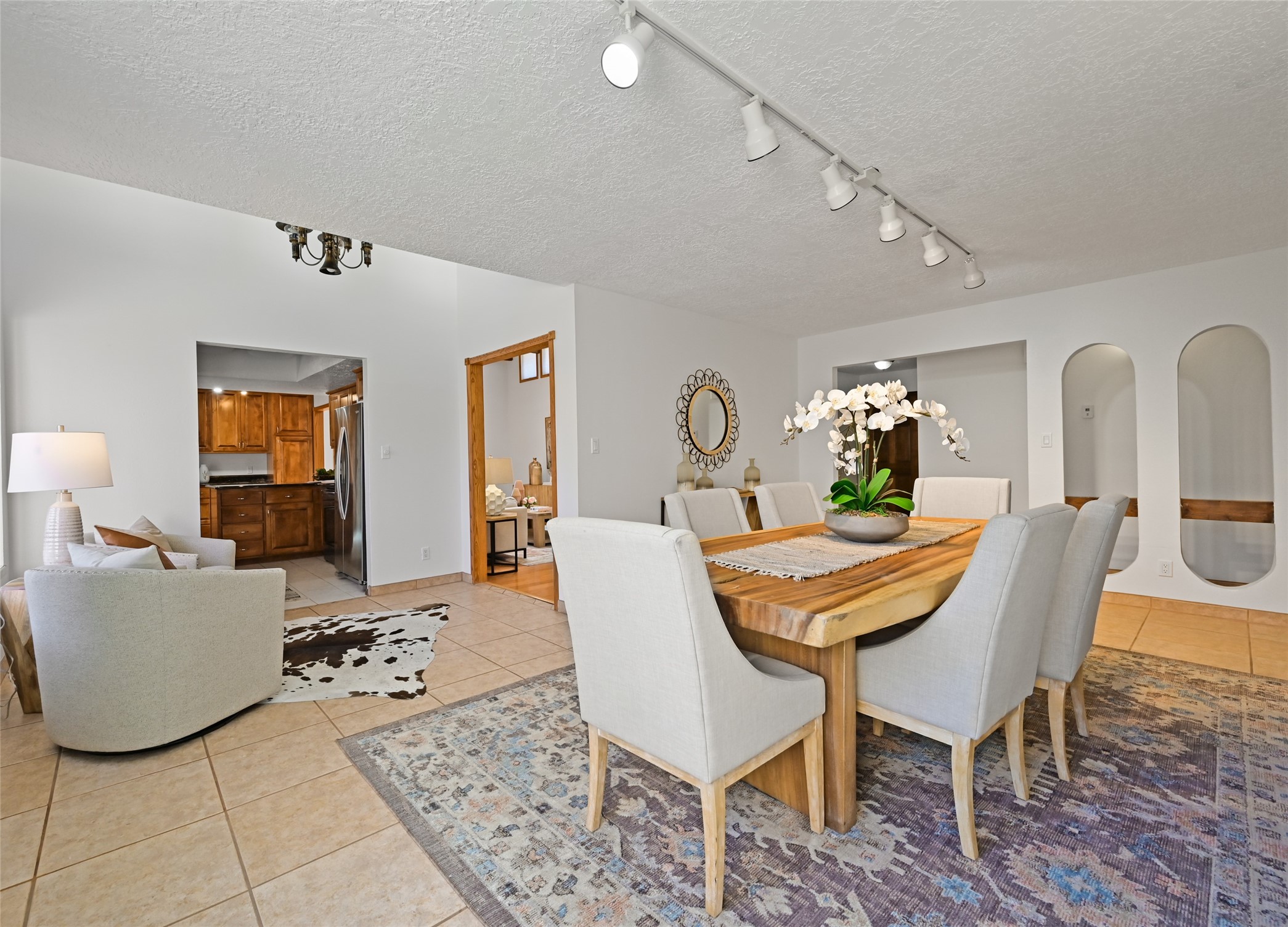 This house feels like a home. It's the real estate equivalent of comfort food! From the mid century modern details in the living/dining area to the updated kitchen to a lovely sunroom opening onto the large, private patio and rose garden, everything about this place is welcoming. The primary suite offers many options with a spacious bedroom, ensuite bath, huge walk-in closet and two adjoining rooms that can be configured to suit many needs -- home office, media room, workout space, nursery, play room, yoga shanti, you name it! Two additional bedrooms and another full bath, all with ample storage, complete the picture. On a corner lot in a true neighborhood where people watch out for one another, you will be minutes from grocery shopping, schools, restaurants, healthcare facilities with easy access to the Railrunner and I-25. Take advantage of the recent price reduction and start your new chapter in this versatile and meticulously maintained home.