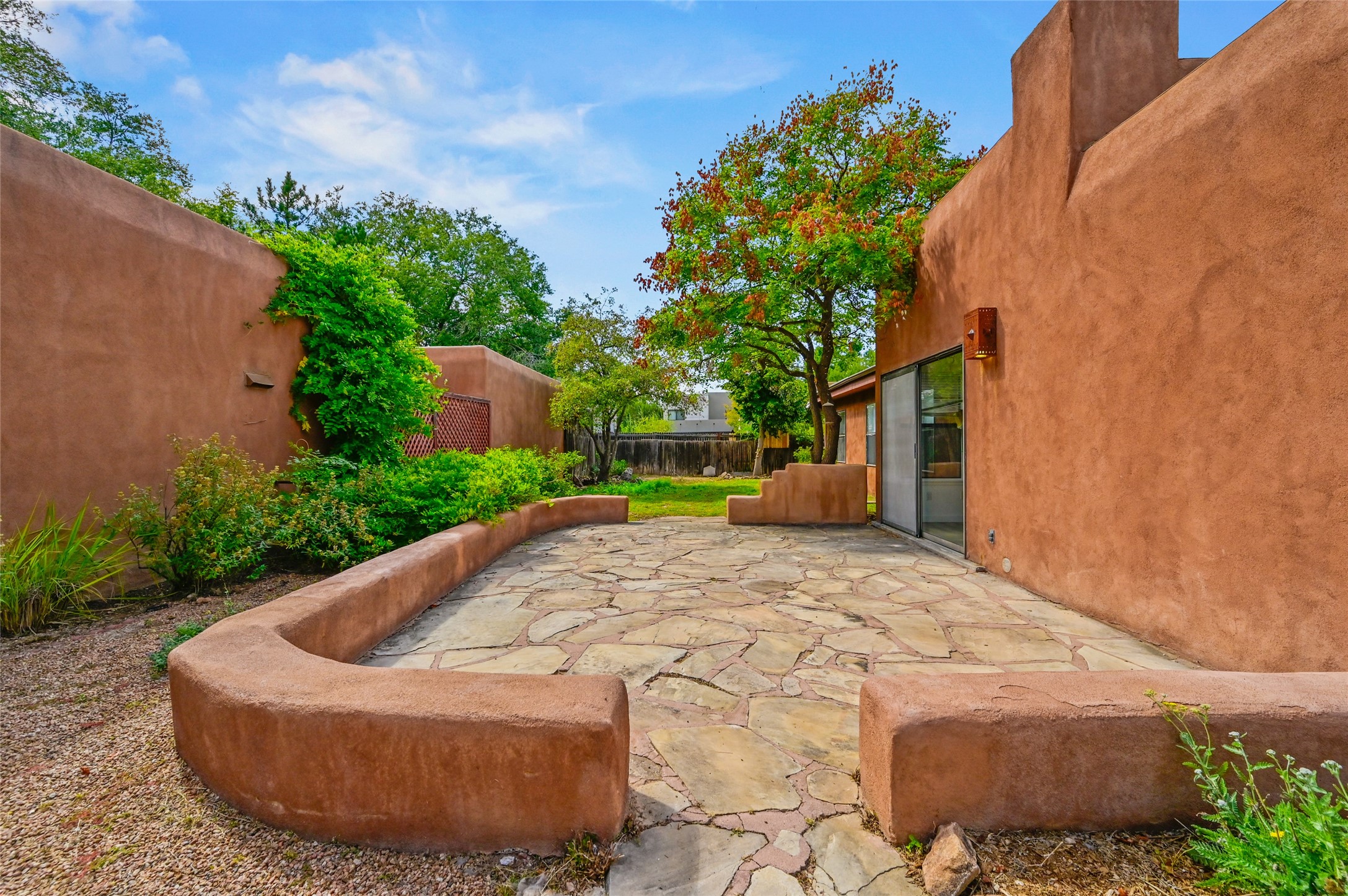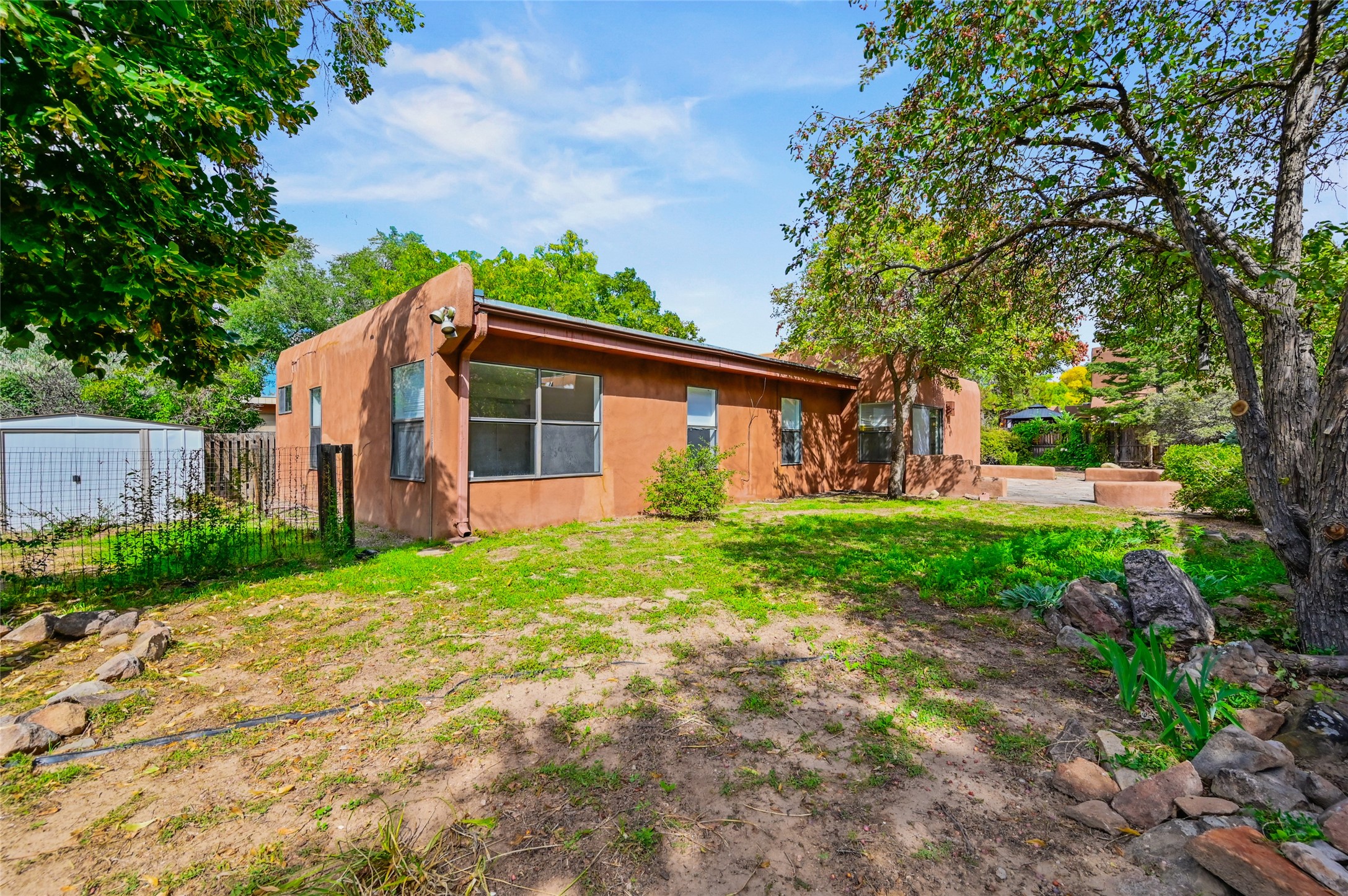 Nestled in the serene Pueblo Alegre neighborhood at the end of a quiet cul-de-sac, this bright and inviting home combines comfort with convenience. Situated opposite a lush park and surrounded by mature fruit trees, a vegetable garden, and a flagstone patio, the outdoor spaces are perfect for relaxation and connecting with nature. Inside, you'll discover new flooring and a well-maintained interior featuring a spacious, open layout and a primary bedroom with natural light and a custom closet. Enjoy easy access to scenic walking and biking along the nearby Santa Fe River Trail. Pueblo Alegre, a beloved subdivision opposite Frenchy's Field City Park, offers two small parks and a children's playground--creating an ideal setting for peaceful living just minutes from all Santa Fe has to offer.