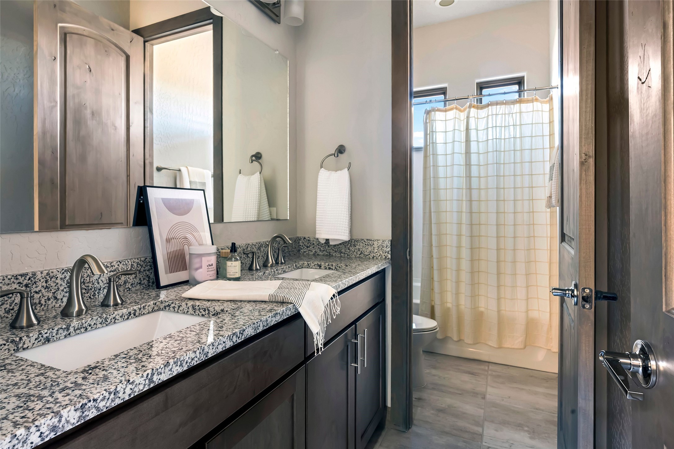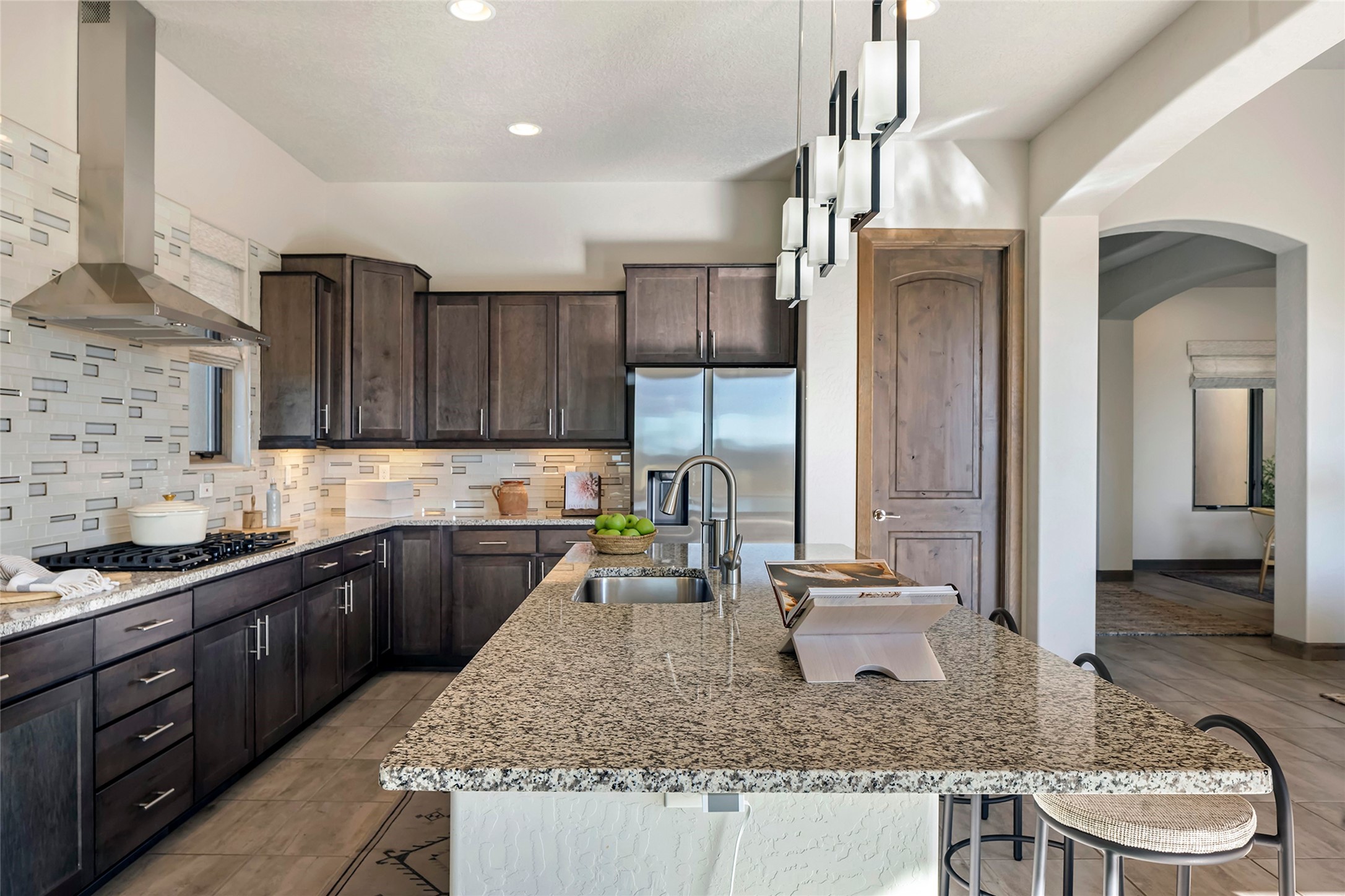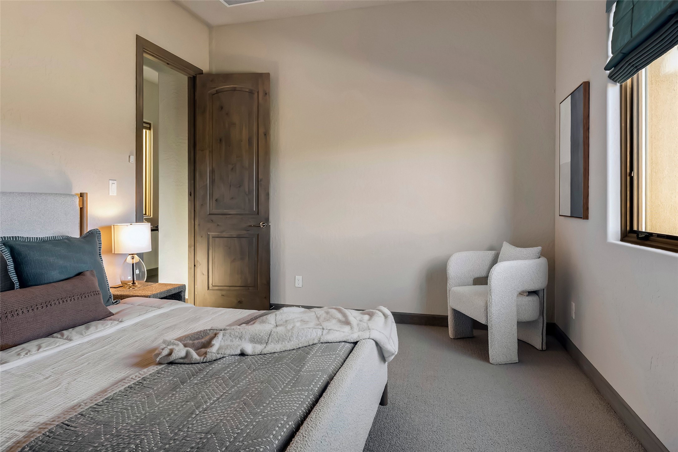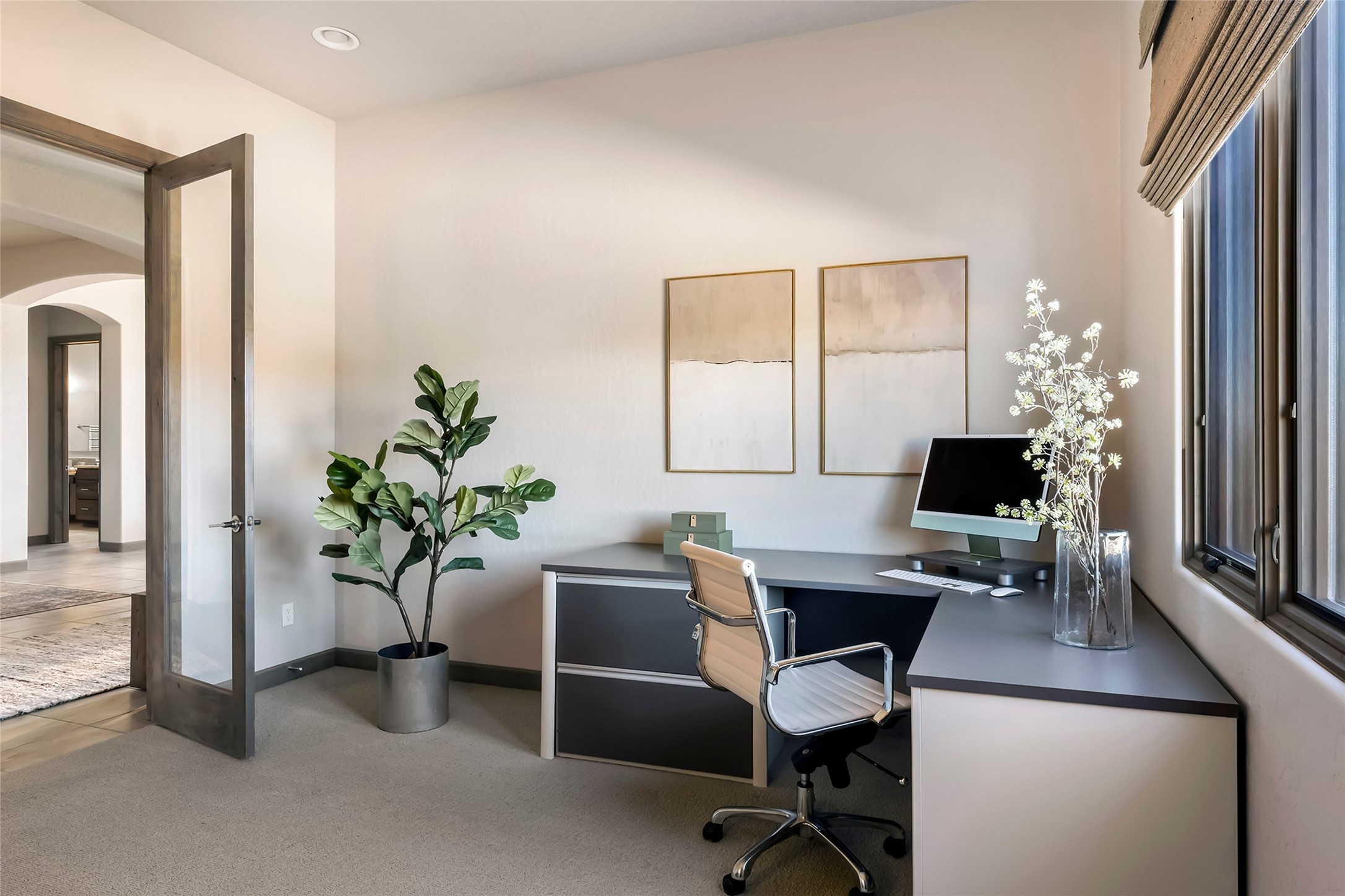 Live the Ultimate Las Campanas Lifestyle. Beautifully sited on a premier elevated corner lot, this exceptional 4-bedroom residence captures breathtaking Jemez Mountain and dramatic sunset views. Located within walking distance of The Club at Las Campanas, this home perfectly blends sophisticated modern design with the timeless essence of Santa Fe. The thoughtfully designed floor plan impresses from the moment you enter, featuring a spectacular living room ideal for both relaxed living and grand entertaining. Western views frame the space, while a modern gas fireplace with stone surround and mantle, and retractable glass doors, create a seamless indoor-outdoor living experience. The chef's island kitchen delights with a generous natural stone breakfast bar, modern appliances, and a large walk-in pantry. This culinary haven flows effortlessly into both a gracious formal dining room and a casual dining area--each with mountain views, designer lighting, and portal access for al fresco dining. The private, luxurious primary suite offers Jemez Mountain views, a cozy sitting area, and a spa-inspired bath with a spacious walk-in shower, dual vanities, and an expansive walk-in closet. Separate from the main living areas, the light-filled office (or 4th bedroom) with glass French doors provides the perfect work-from-home retreat. Two additional guest suites, each with ensuite baths, share a comfortable secondary living area or media room. The outdoor living experience is elevated with vast entertaining areas, a covered portal, an outdoor fireplace, and tranquil landscaping that enhances the home's serene ambiance. With its quality finishes, soft natural light, welcoming gated front entrance courtyard, newly installed carpet and a neutral palette throughout, this special Las Campanas home defines refined living and represents an exceptional value--move-in ready and not to be missed. The owner's Equity Golf Membership to The Club at Las Campanas is available for purchase.