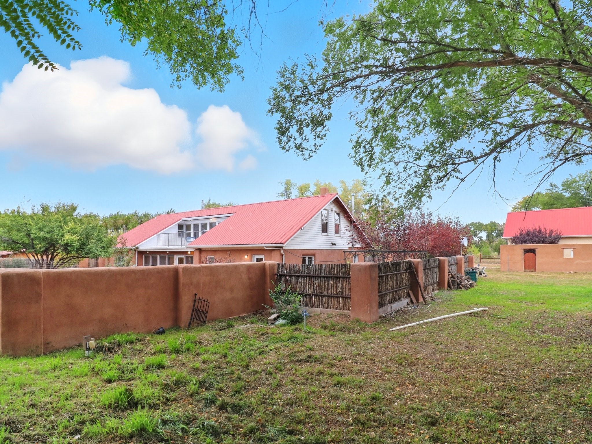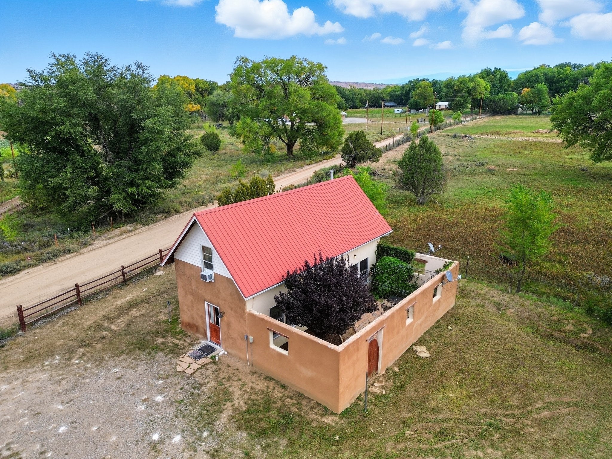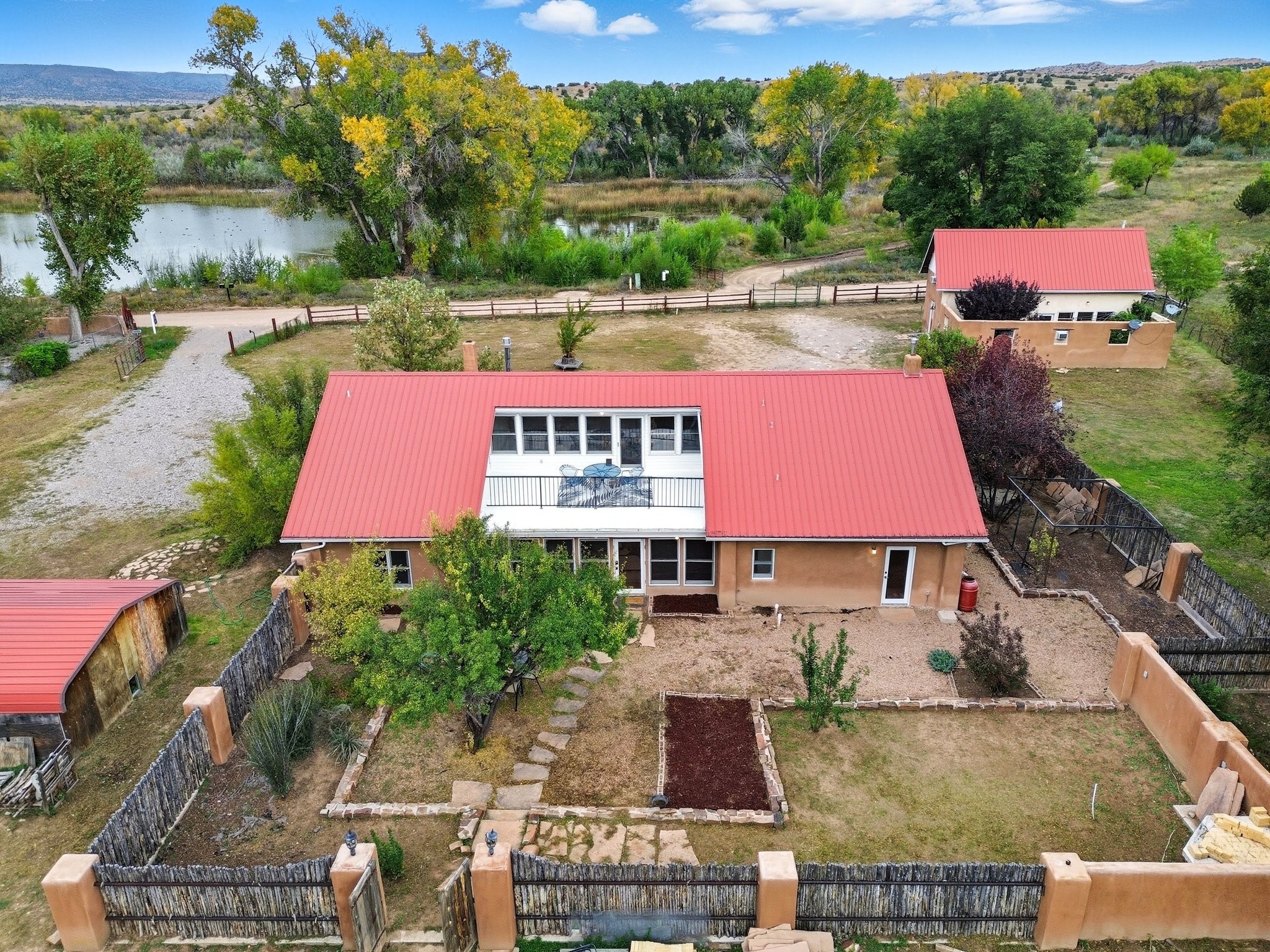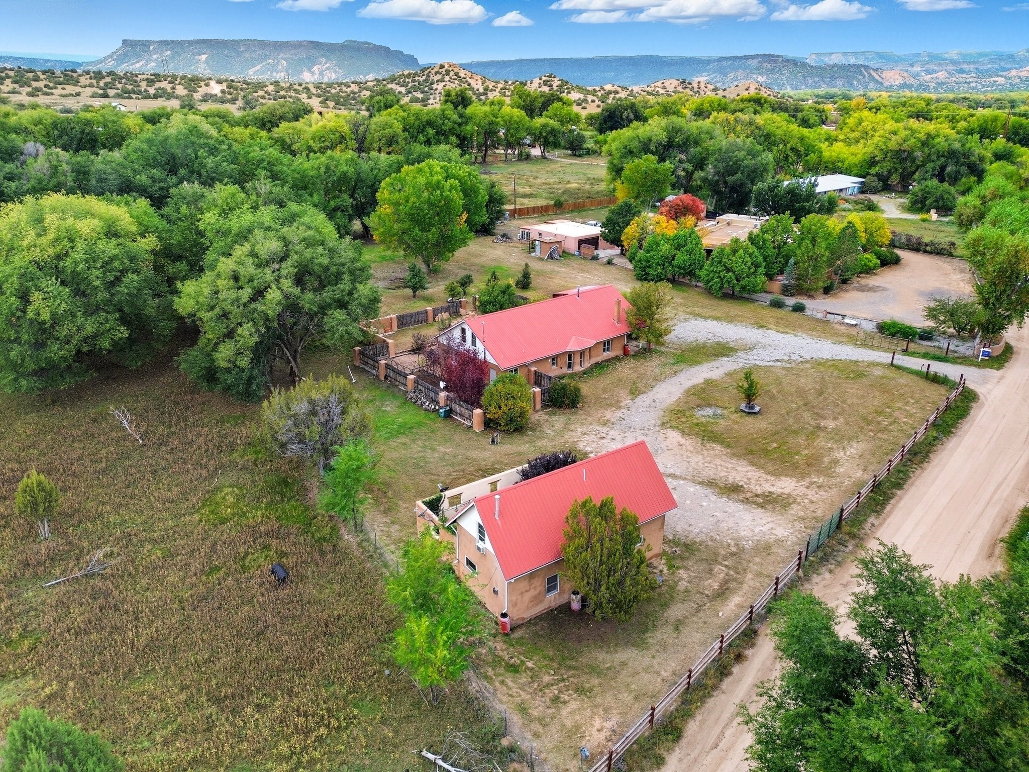 Your Private Northern New Mexico Retreat -- Two Residences, One Unforgettable PropertyNestled in the serene Pojoaque Valley and perfectly positioned between Santa Fe's historic charm and Los Alamos' thriving innovation hub, 40 County Road 84B is a rare find offering two distinct homes on a beautifully landscaped 1.46-acre parcel.The main residence is a warm and inviting 4-bedroom, 2.5-bath adobe-style home that exudes classic New Mexico character. Soaring with natural light, this 2,450 sq ft home boasts both a cozy family room and a separate living room, ideal for multi-generational living or work-from-home flexibility. Rich wood and brick accents, traditional touches, and thoughtful flow create an atmosphere of rustic elegance. Step onto the upstairs deck or into the walled backyard to soak in tranquil views of cottonwoods, distant mesas, and the Ortiz Well Ditch that mirrors the shimmer of a pond just across the way.Complementing the main house is a 927 sq ft two-bedroom casita, currently a successful short-term rental generating over $24,000 in annual income. With its own private yard and entrance, it offers versatility as a guesthouse, in-law suite, or income-producing asset from day one.Additional features include: Classic adobe construction with metal roofing, two fireplaces and baseboard heating, a private well with water rights, landscaped and natural grounds with mature trees, two storage units and ample off-street parking and no HOA restrictions.Located just 20 minutes to Los Alamos National Lab and 25 minutes to downtown Santa Fe, this property is ideal for LANL commuters, artists, remote workers, or anyone seeking the balance of rural tranquility and urban access. Only minutes to groceries, schools, and cultural attractions, this hidden gem is the perfect base for Northern New Mexico living.Whether you're envisioning a multi-generational compound, live-work space, or income-generating retreat, 40 County Road 84B delivers lifestyle and opportunity in one extraordinary package.