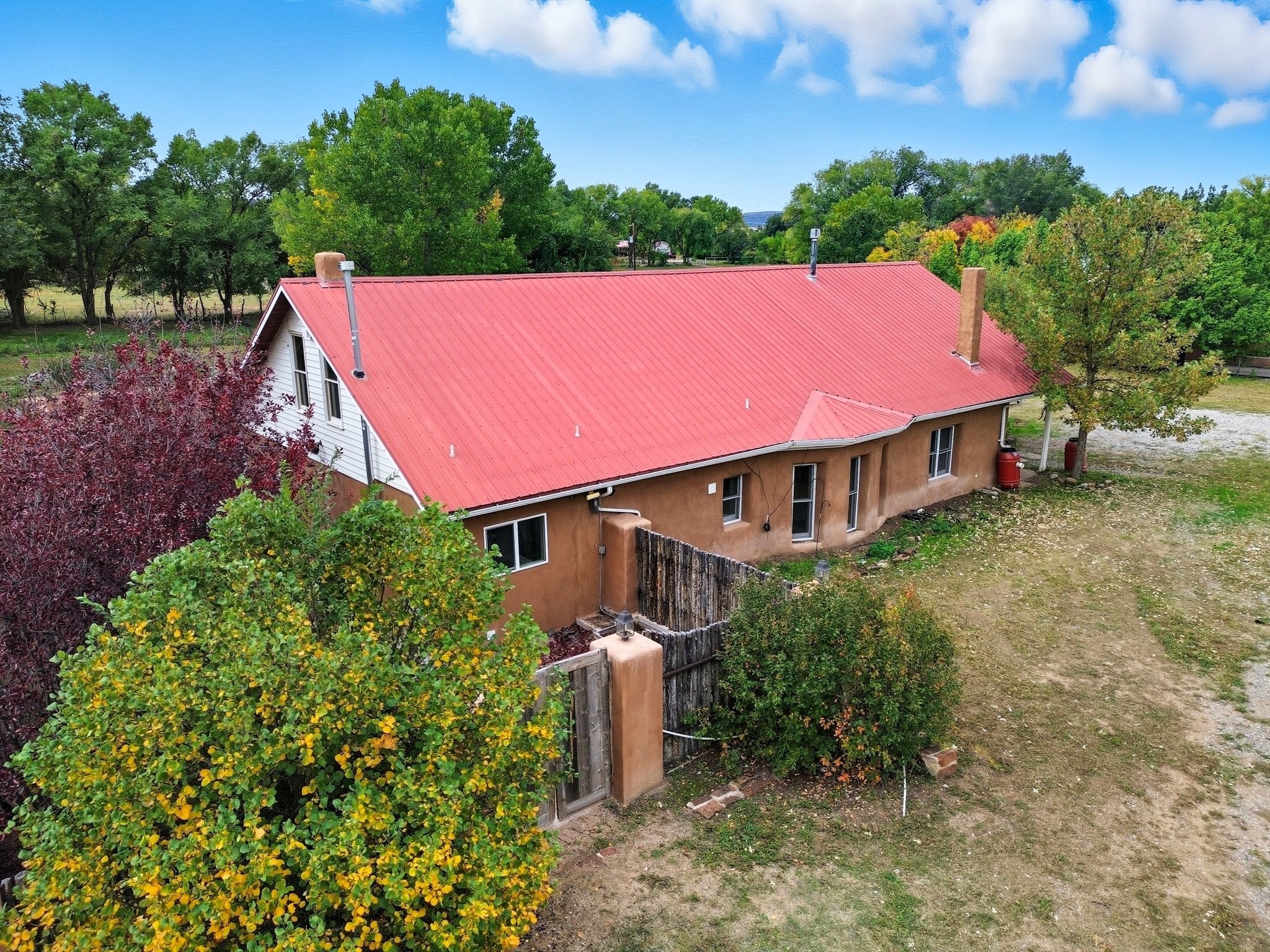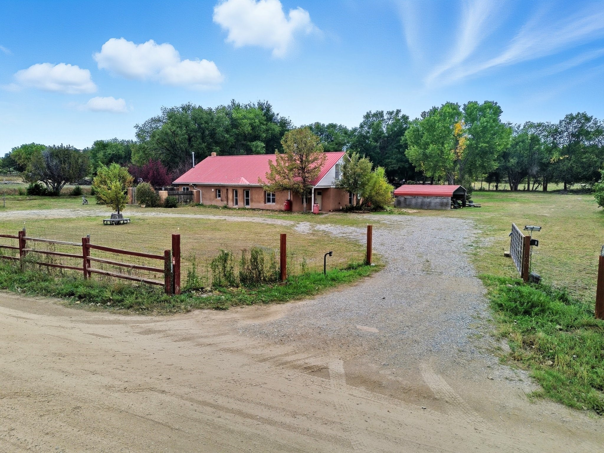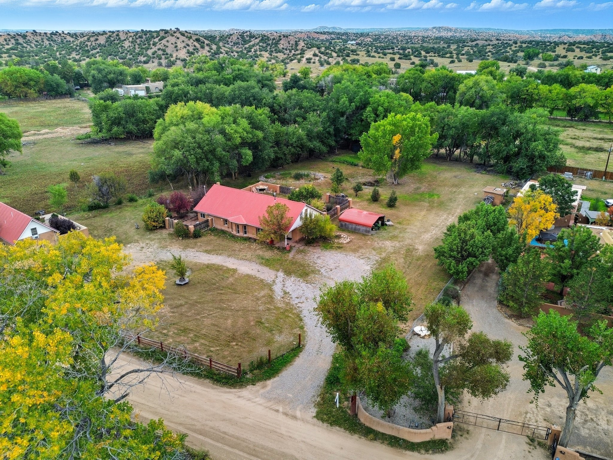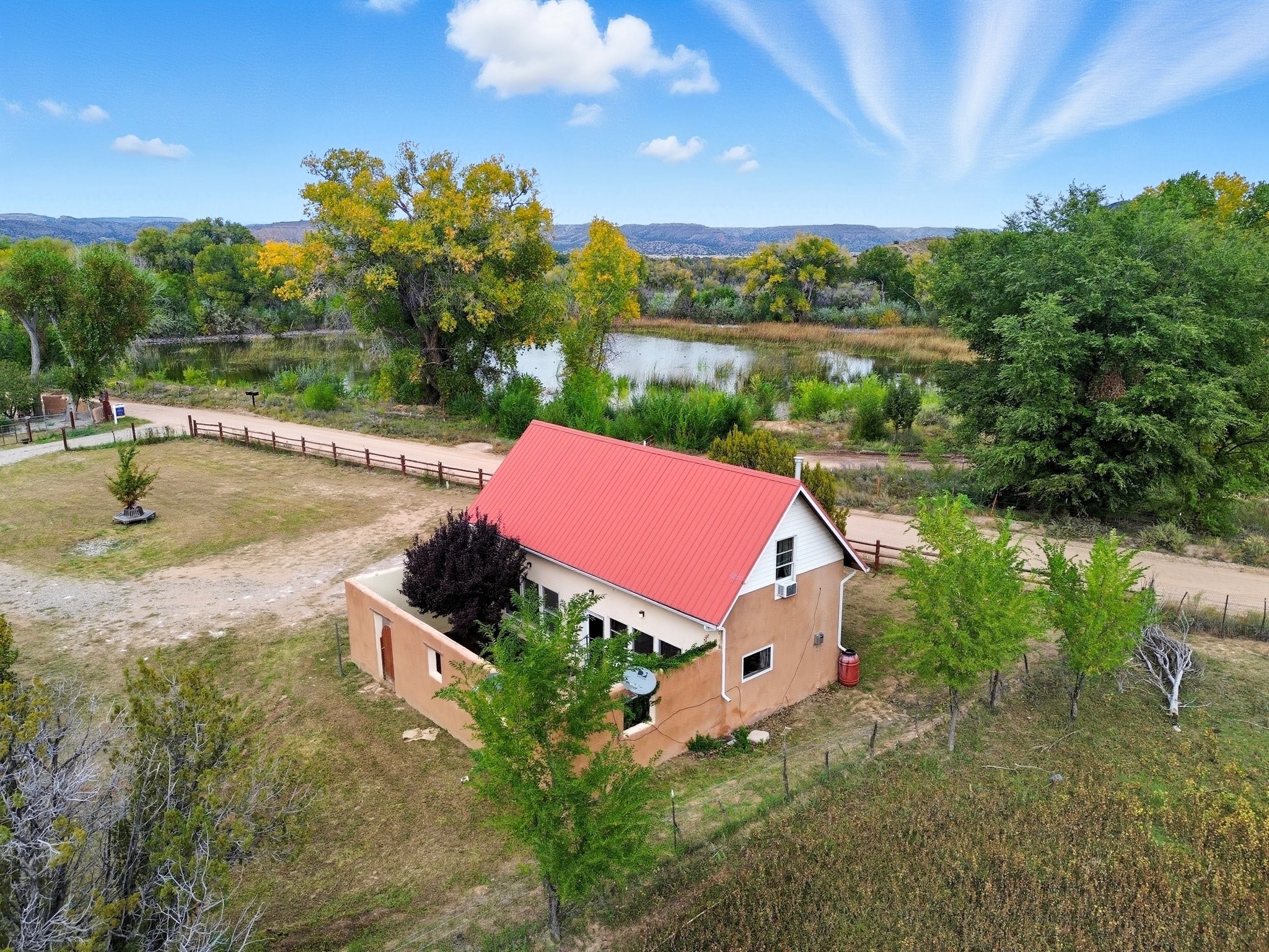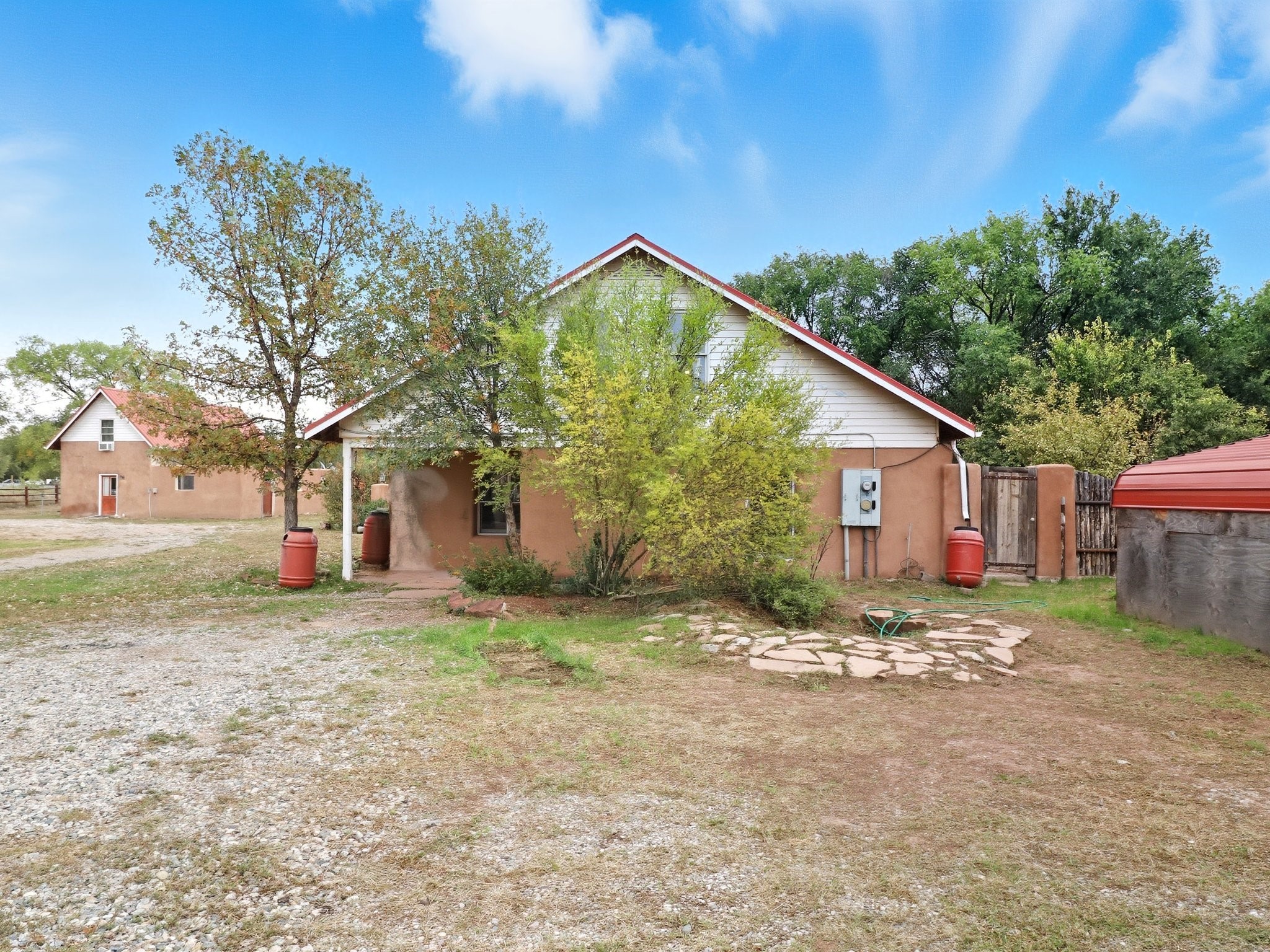 Your Private Northern New Mexico Retreat -- Two Residences, One Unforgettable PropertyNestled in the serene Pojoaque Valley and perfectly positioned between Santa Fe's historic charm and Los Alamos' thriving innovation hub, 40 County Road 84B is a rare find offering two distinct homes on a beautifully landscaped 1.46-acre parcel.The main residence is a warm and inviting 4-bedroom, 2.5-bath adobe-style home that exudes classic New Mexico character. Soaring with natural light, this 2,450 sq ft home boasts both a cozy family room and a separate living room, ideal for multi-generational living or work-from-home flexibility. Rich wood and brick accents, traditional touches, and thoughtful flow create an atmosphere of rustic elegance. Step onto the upstairs deck or into the walled backyard to soak in tranquil views of cottonwoods, distant mesas, and the Ortiz Well Ditch that mirrors the shimmer of a pond just across the way.Complementing the main house is a 927 sq ft two-bedroom casita, currently a successful short-term rental generating over $24,000 in annual income. With its own private yard and entrance, it offers versatility as a guesthouse, in-law suite, or income-producing asset from day one.Additional features include: Classic adobe construction with metal roofing, two fireplaces and baseboard heating, a private well with water rights, landscaped and natural grounds with mature trees, two storage units and ample off-street parking and no HOA restrictions.Located just 20 minutes to Los Alamos National Lab and 25 minutes to downtown Santa Fe, this property is ideal for LANL commuters, artists, remote workers, or anyone seeking the balance of rural tranquility and urban access. Only minutes to groceries, schools, and cultural attractions, this hidden gem is the perfect base for Northern New Mexico living.Whether you're envisioning a multi-generational compound, live-work space, or income-generating retreat, 40 County Road 84B delivers lifestyle and opportunity in one extraordinary package.
