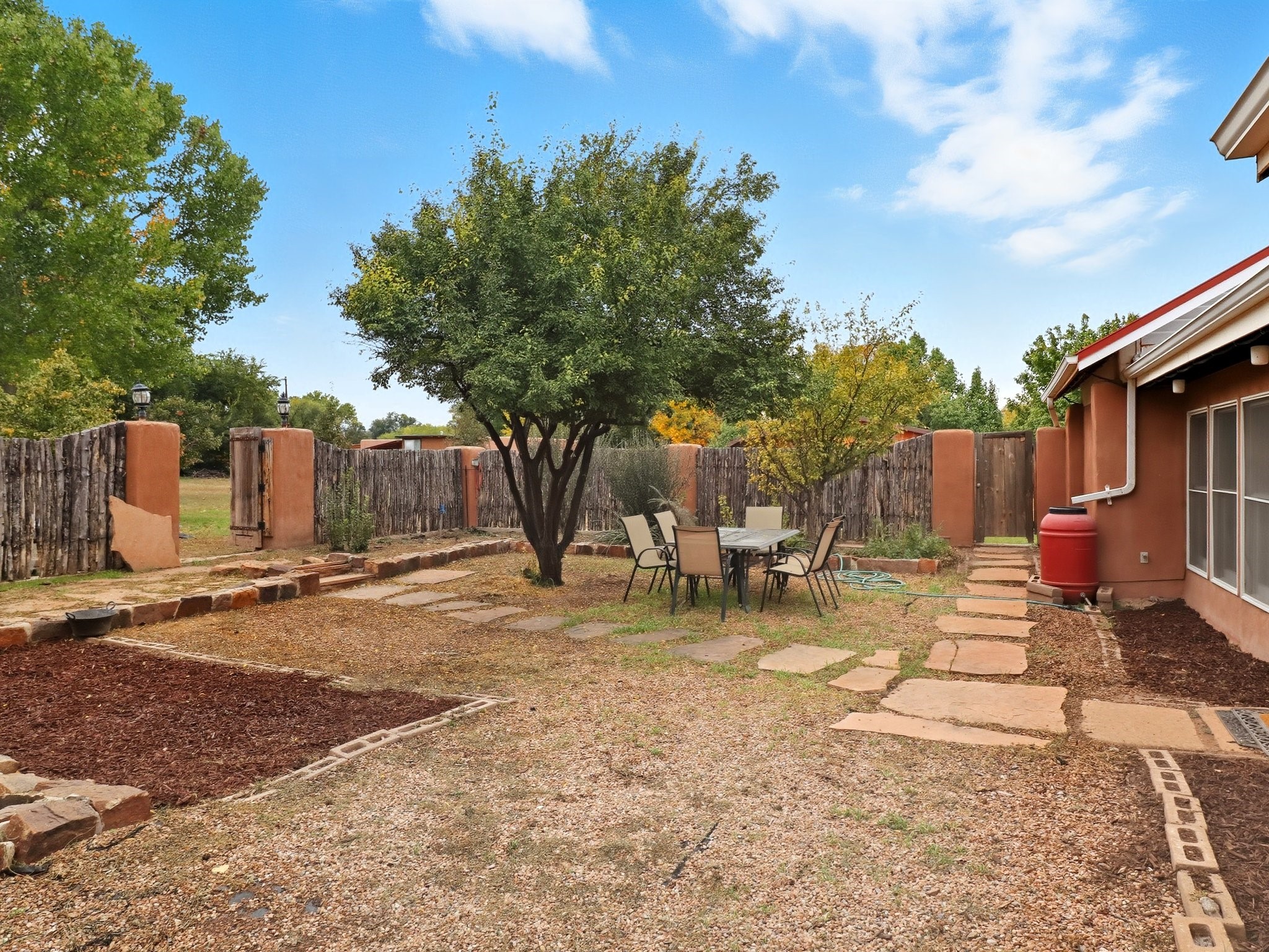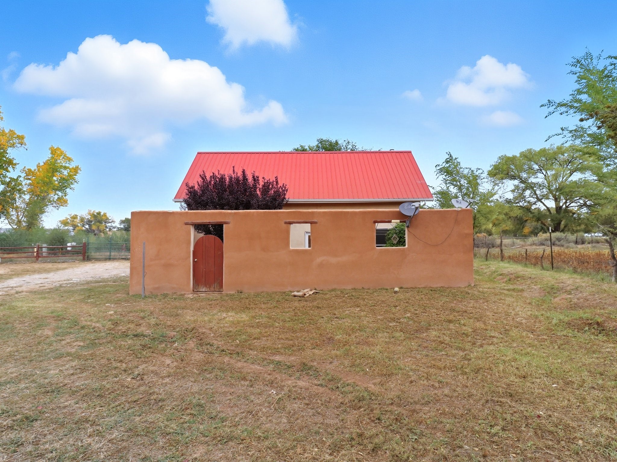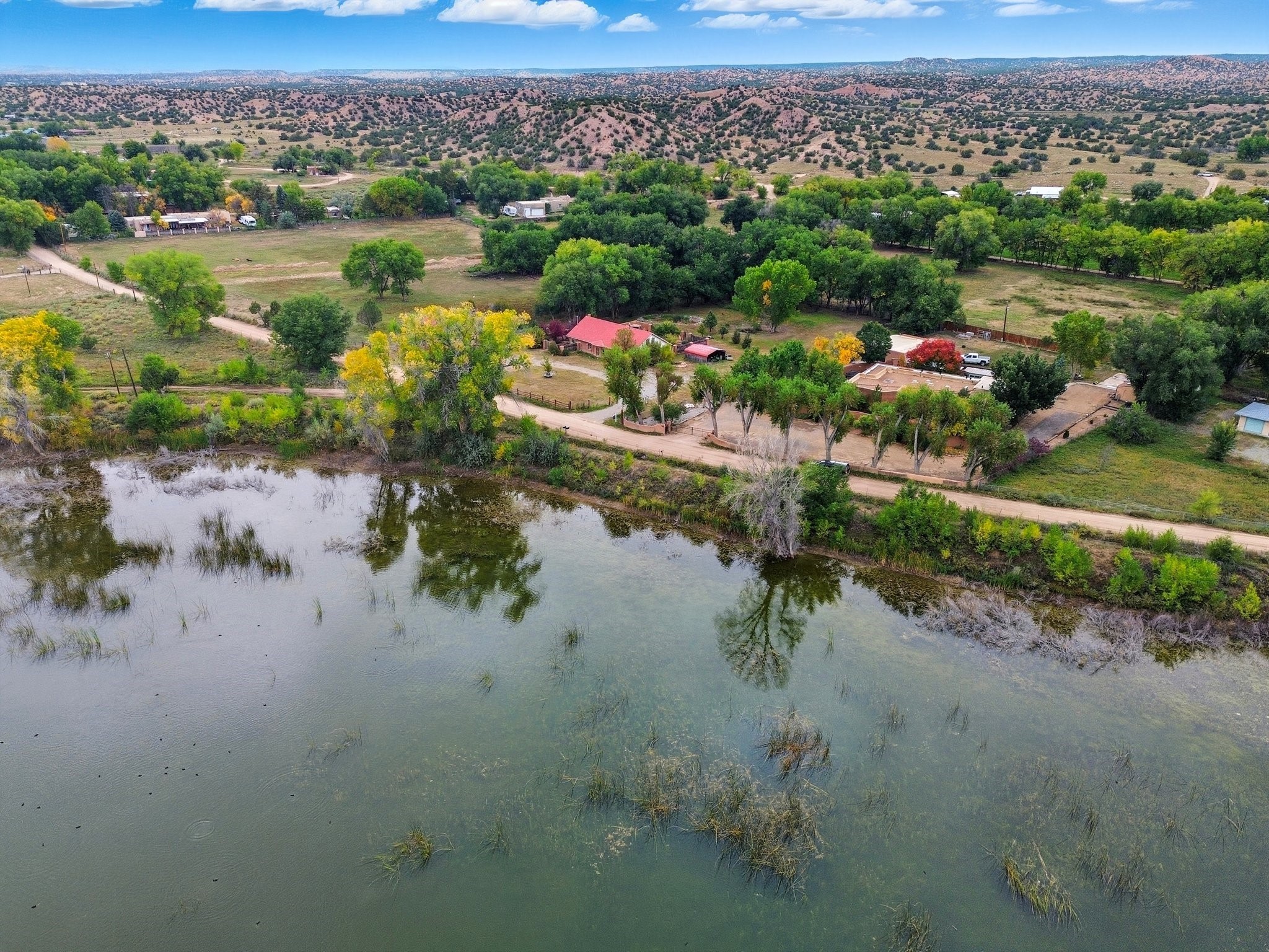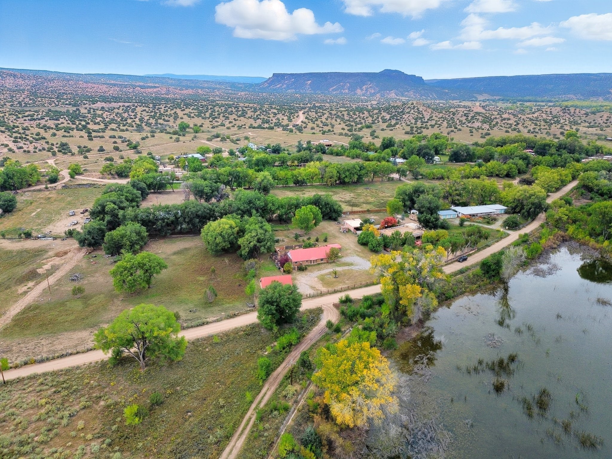 Your Private Northern New Mexico Retreat -- Two Residences, One Unforgettable PropertyNestled in the serene Pojoaque Valley and perfectly positioned between Santa Fe's historic charm and Los Alamos' thriving innovation hub, 40 County Road 84B is a rare find offering two distinct homes on a beautifully landscaped 1.46-acre parcel.The main residence is a warm and inviting 4-bedroom, 2.5-bath adobe-style home that exudes classic New Mexico character. Soaring with natural light, this 2,450 sq ft home boasts both a cozy family room and a separate living room, ideal for multi-generational living or work-from-home flexibility. Rich wood and brick accents, traditional touches, and thoughtful flow create an atmosphere of rustic elegance. Step onto the upstairs deck or into the walled backyard to soak in tranquil views of cottonwoods, distant mesas, and the Ortiz Well Ditch that mirrors the shimmer of a pond just across the way.Complementing the main house is a 927 sq ft two-bedroom casita, currently a successful short-term rental generating over $24,000 in annual income. With its own private yard and entrance, it offers versatility as a guesthouse, in-law suite, or income-producing asset from day one.Additional features include: Classic adobe construction with metal roofing, two fireplaces and baseboard heating, a private well with water rights, landscaped and natural grounds with mature trees, two storage units and ample off-street parking and no HOA restrictions.Located just 20 minutes to Los Alamos National Lab and 25 minutes to downtown Santa Fe, this property is ideal for LANL commuters, artists, remote workers, or anyone seeking the balance of rural tranquility and urban access. Only minutes to groceries, schools, and cultural attractions, this hidden gem is the perfect base for Northern New Mexico living.Whether you're envisioning a multi-generational compound, live-work space, or income-generating retreat, 40 County Road 84B delivers lifestyle and opportunity in one extraordinary package.