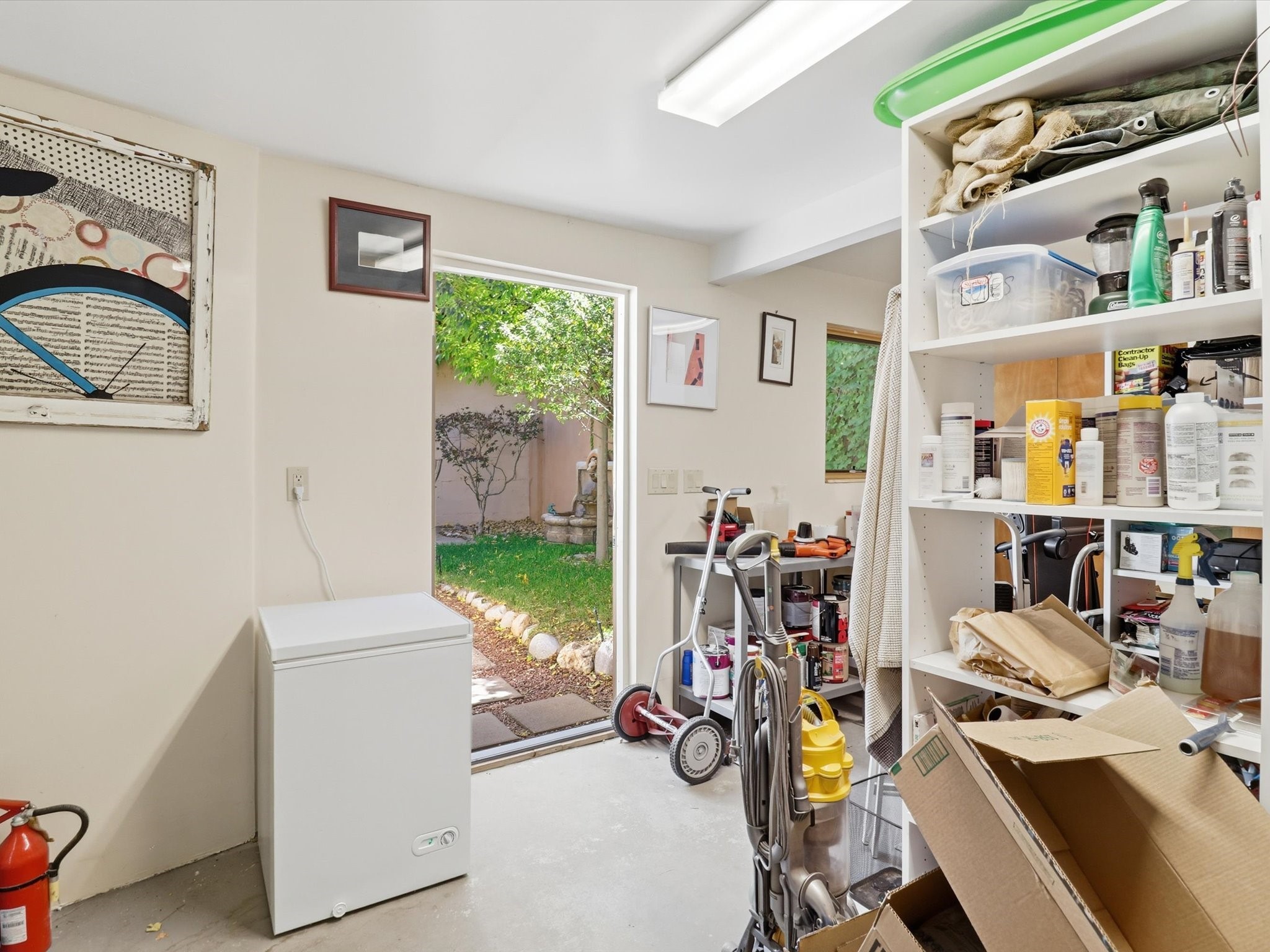 One of Santa Fe's most desirable locations. This historically 'contributing' home on East Agua Fria is a light-filled jewel, perfectly situated to enjoy all the vibrancy of Santa Fe's Railyard District and Santa Fe's Downtown. Imagine being just blocks away from world-class art galleries, dining, shopping, movie theaters, and music. The Santa Fe Farmers Market, a beloved community hub, is just a few blocks to the south. This charming 1900 Craftsman Bungalow home offers four bedrooms, 2 baths, many thoughtful upgrades, double adobe construction with exterior stone base pillars, creating a timeless, inviting and quiet home. A gracious interior - original stenciled fir floors, bay windows, gorgeous antique lighting fixtures, a crisp black and white kitchen. Additionally, this property offers an attractive flexibility with two distinct areas, each featuring separate entrances and sitting areas providing excellent options for guests or potential rental income. The home boasts a charming, deep Craftsman-style porch, perfect for relaxing and enjoying the neighborhood. The current owners have meticulously cultivated romantic garden areas over many years, showcasing roses, wisteria, daylilies, and climbing vines, maintained by an automatic drip system. The large rear patio serves as an urban sanctuary, ideal for entertaining or simply unwinding. Further enhancing convenience and livability are the unusually generous gated off-street parking in the front, a single-story design and a 200-square-foot storage area in the rear. Come see and be captivated! Neither Listing Brokers nor Seller warrants the square footage of the home or lot. If the size of the home or lot is of material consideration to the Buyer, then the Buyer should have them measured. Tax Levy is from the Assessor website. All fires depicted are photo-shopped. Buyer to verify the functionality of the fireplace.