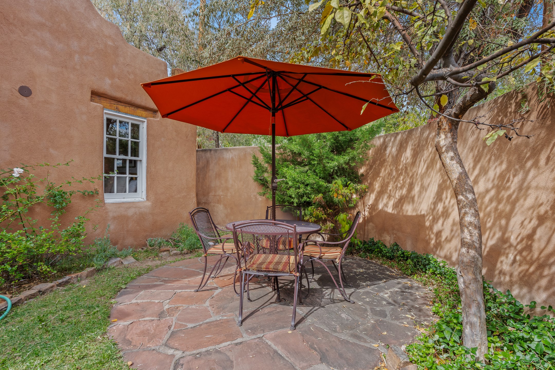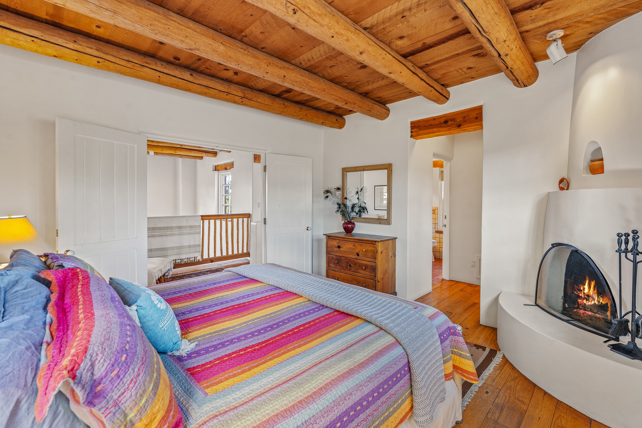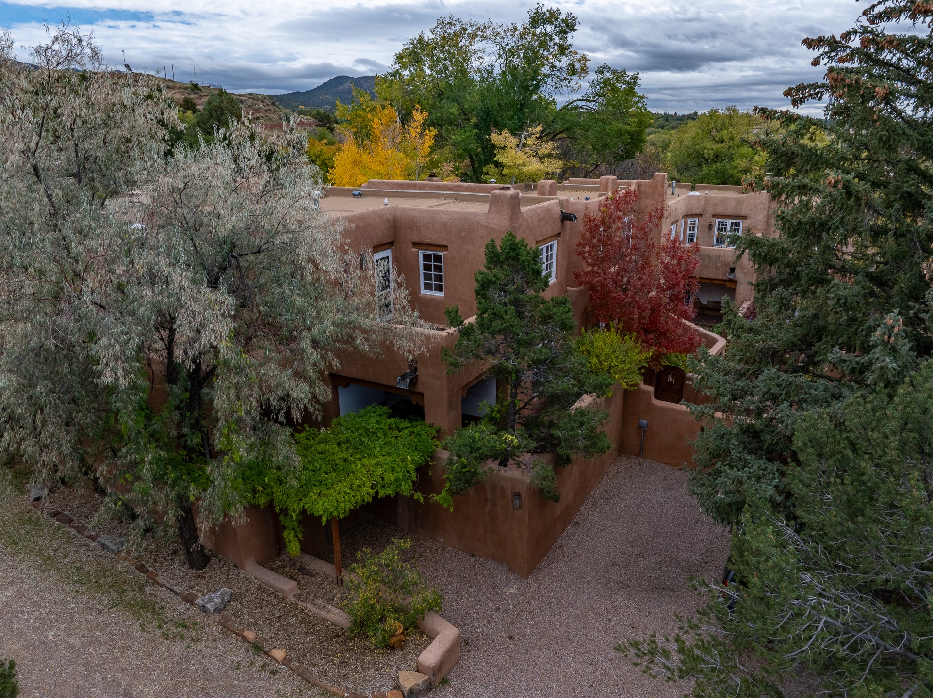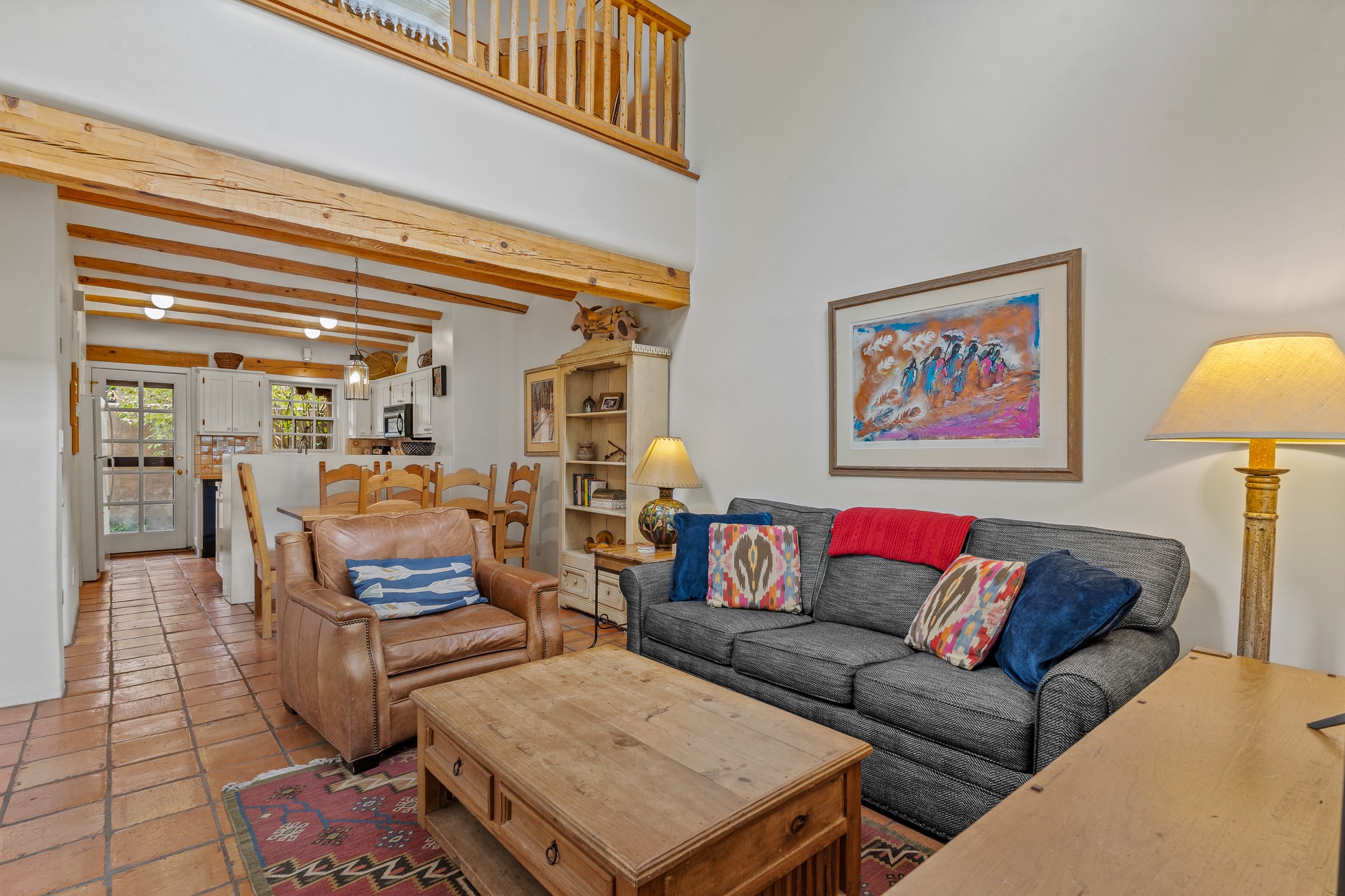 Enjoy effortless Santa Fe living in this fully furnished, professionally managed downtown retreat. Light-filled and full of Southwestern character, the living space offers soaring ceilings, vigas, and a cozy kiva fireplace -- perfect for recharging between Santa Fe adventures.The open kitchen, dining, and living areas flow naturally to a private walled courtyard with a Weber grill, perfect for outdoor dining. Upstairs, a sunny terrace offers both sunrise and sunset views. There's excellent separation between the bedrooms -- one on the main level with a nearby guest bath, and the other upstairs with its own en-suite. Both feature corner kiva fireplaces and direct outdoor access: the downstairs bedroom opens to the private courtyard, while the upstairs suite connects to the viewing terrace. A cozy loft also on the 2nd floor makes the perfect spot to read or unwind.Authentic details -- Saltillo tile & wood floors, vigas and colorful Talavera accents -- bring warmth and personality throughout. With all structures and contents maintained by the HOA, this is a truly turnkey getaway that captures the easygoing charm and vibrant spirit of downtown Santa Fe living. Each ownership retains 13 weeks/year on a rotating schedule. The new owner of 12-3 will enjoy the 2026 Holiday season with occupancy December 18-Jan 1, 2027!