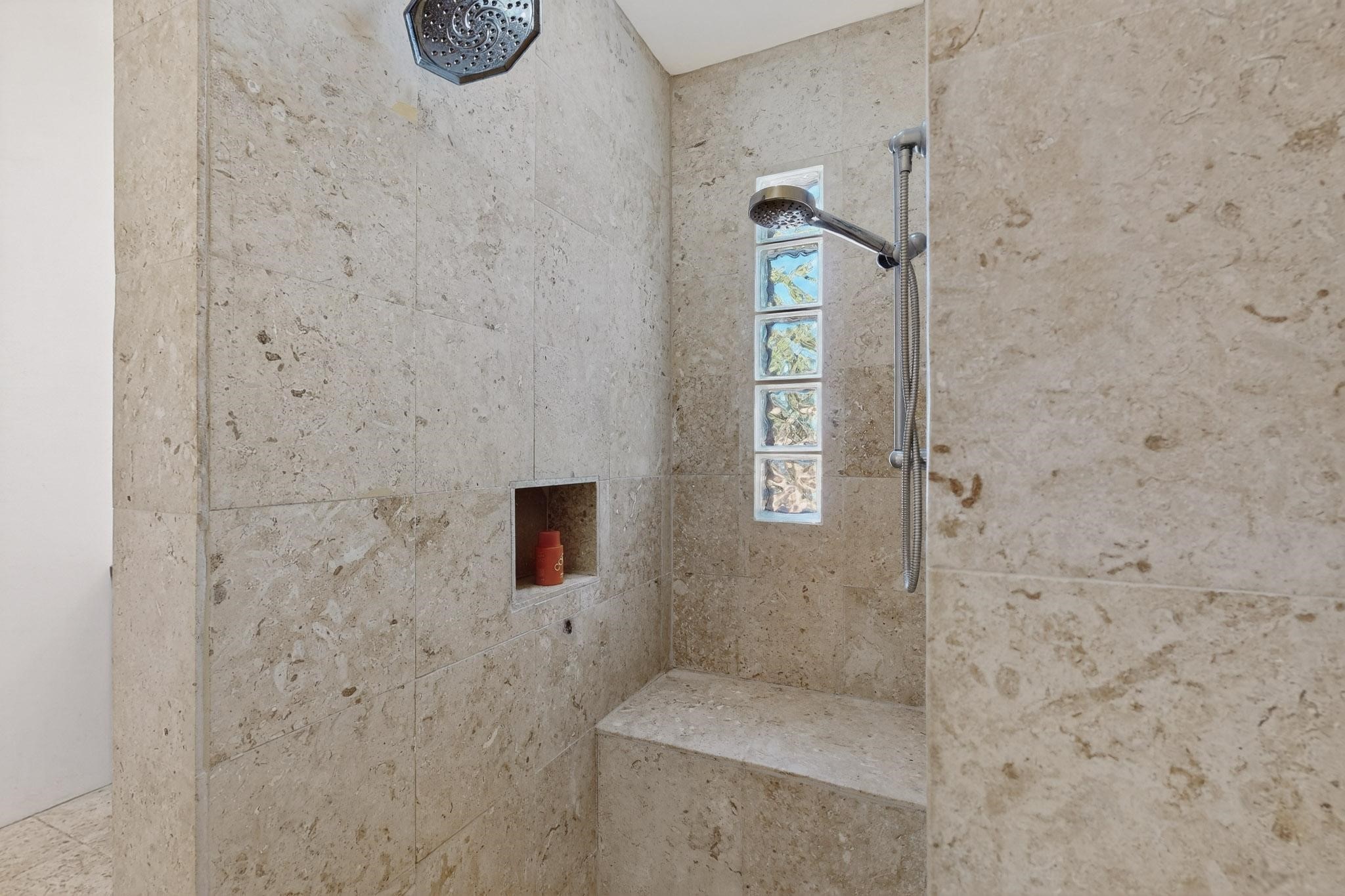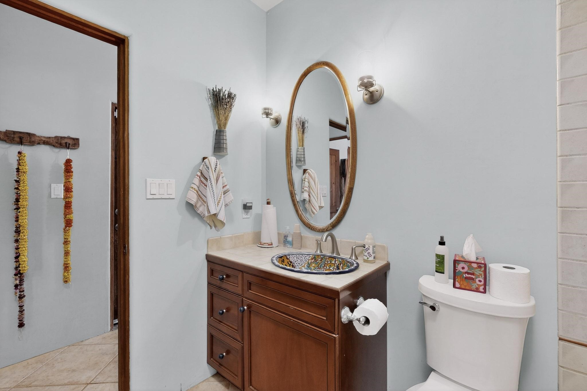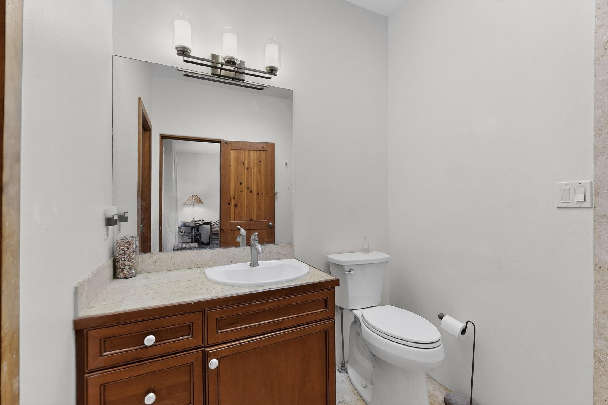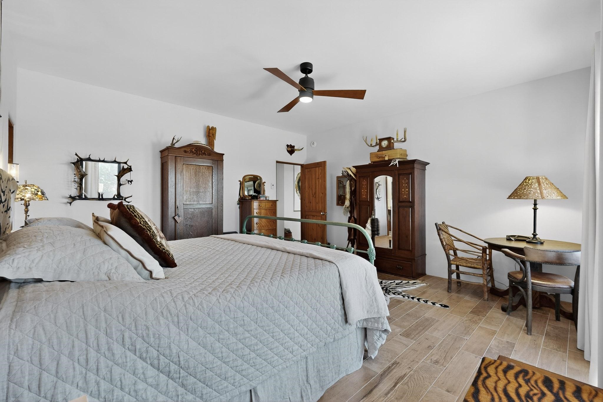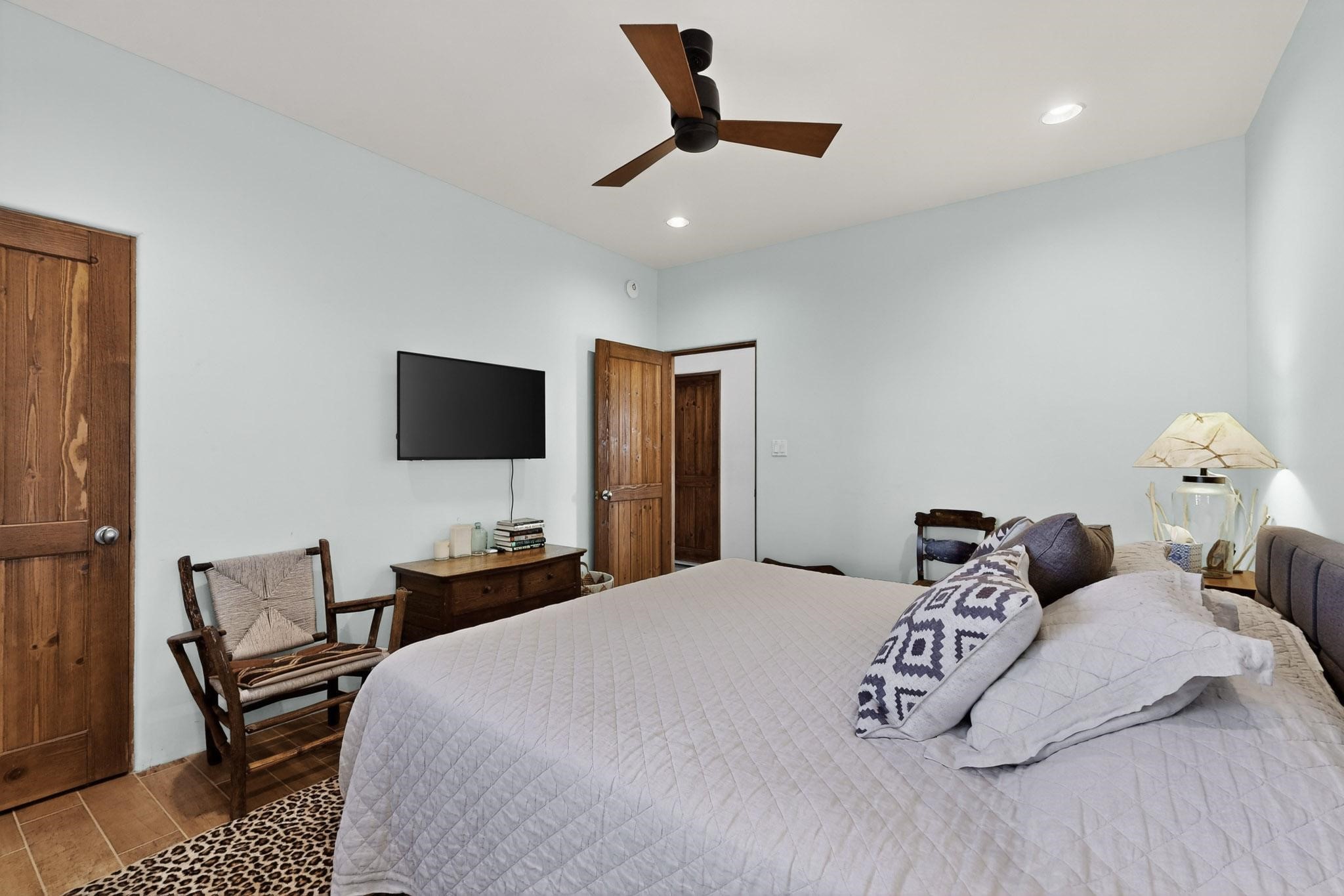 Custom designed and built spacious single level, open plan, split bedroom design in Eldorado bordering Los Caballos. Privacy and fabulous mountain and sunset views from home and portals. There are two unique back to back fireplaces, one in each room, a dramatic Chacoan style stone facing in the family room and a traditional kiva in the family room/study. The private owners suite features two separate 3/4 bath rooms, one with a tub and the other with a walk in sharable shower, plus 2 walk in closets. The laundry room is close by off the hall. The large kitchen includes a breakfast bar and cosy breakfast nook which accesses the south portal and gardens, plus there is an extra half bath for guests. There is a formal dining area with access to a private walled garden and patio. Both guest bedrooms are a good size and share a full bath between them. The oversized 2 car finished garage has plenty of guest parking. Incredible expansive night skies from spacious fenced gardens it is centered on 1 1/2 acres on the south central border of Eldorado. Easy access to all the Eldorado amenities, local shopping centers and only minutes into Santa Fe.