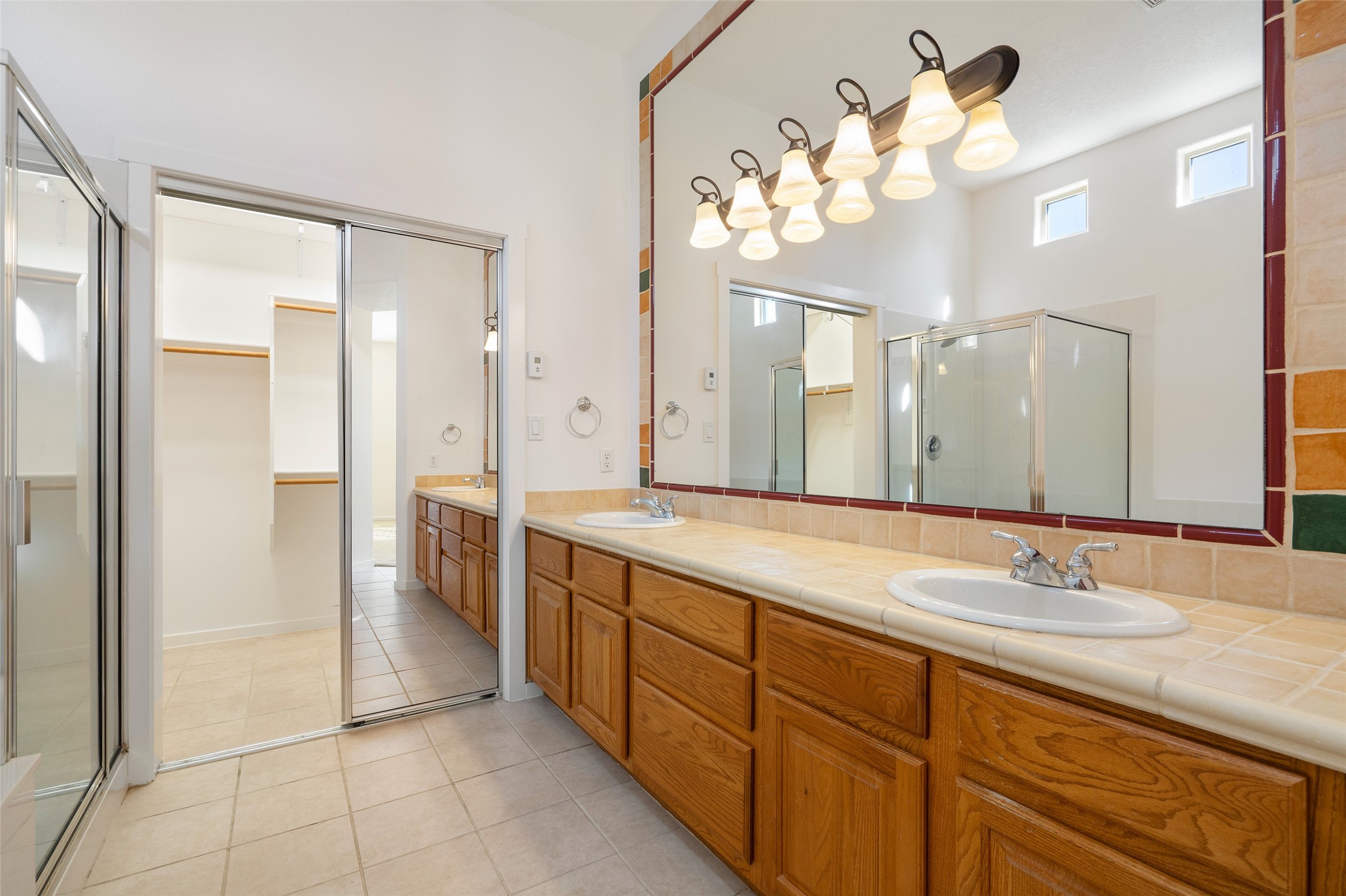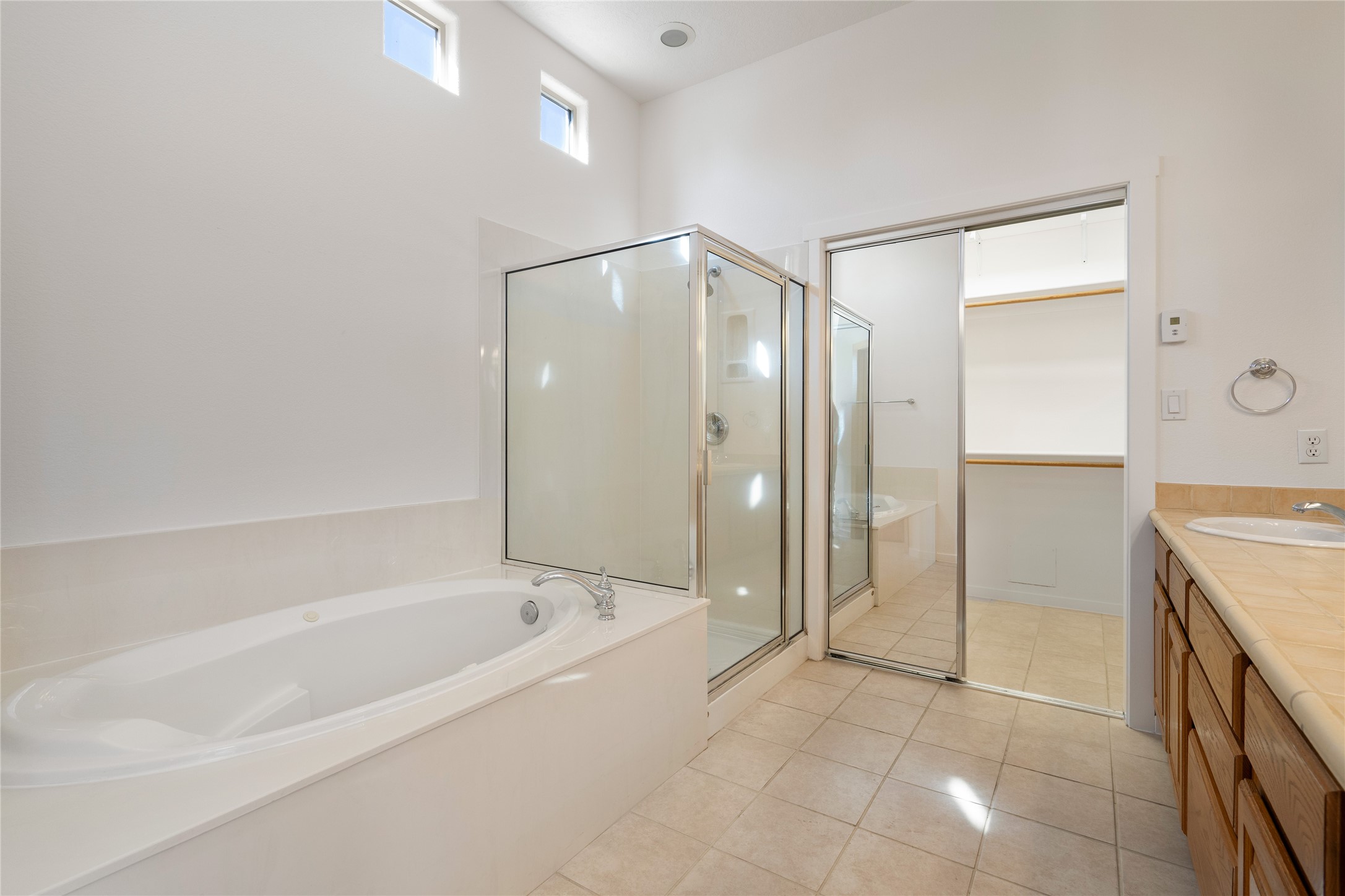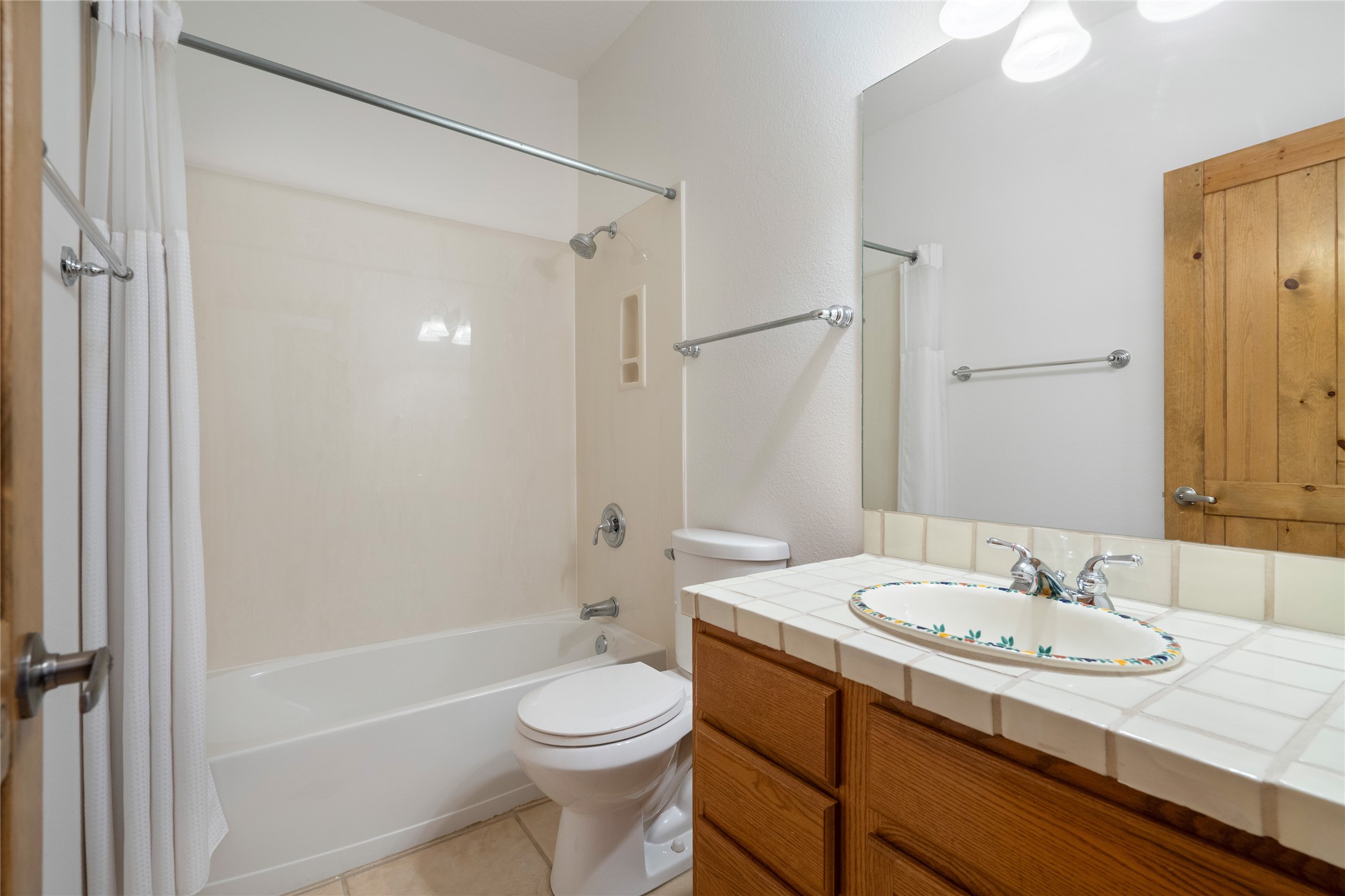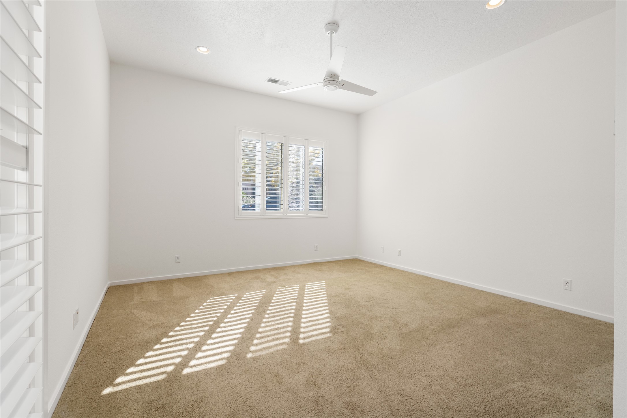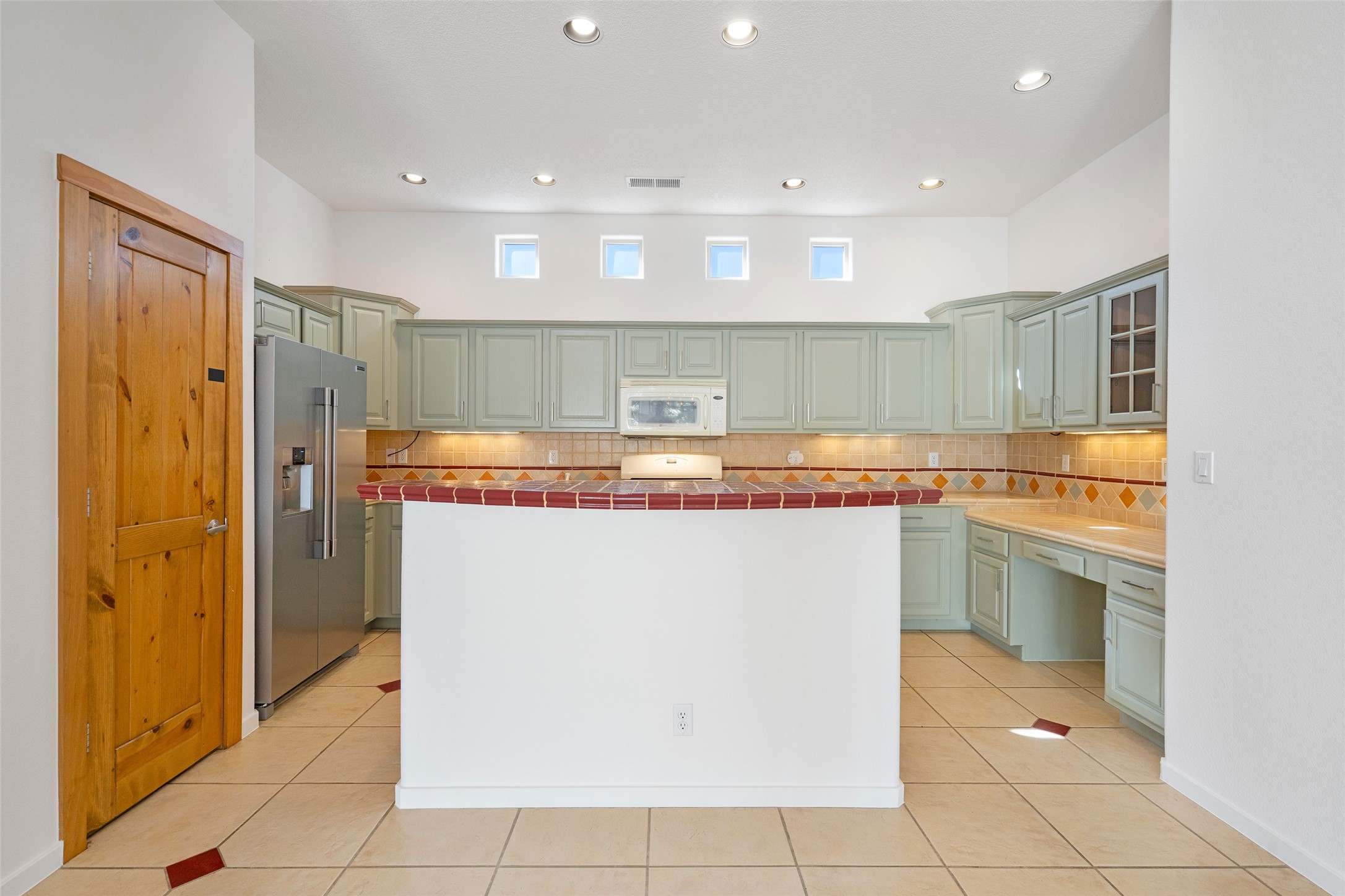 Delightful Rancho Viejo, former "Portal" model home. Beautiful courtyard entrance with mature landscaping. The entire interior has recently been professionally re-painted. Spacious living area with high ceilings and vigas and a gas fired kiva fireplace. Sensible split floorplan featuring 2 bedrooms plus an office with built-in shelving and a built-in desk area. Custom wood doors throughout. Primary bedroom and second bedroom have shutter blinds. Two car garage is finished and has plenty of storage cabinets. Stainless refrigerator and dishwasher replaced in the last 5 years. Roof redone in the last 5 years. Water heater and tankless replaced in 2019. Walled in back area too with nice trees! Rancho Viejo is a master planned community with 11,000 acres; 50% featuring natural open spaces. This home is close to walking trails, parks, the SF Community College, Target, Santa Fe Place Mall, many restaurants and grocery stores. This home is move-in ready!