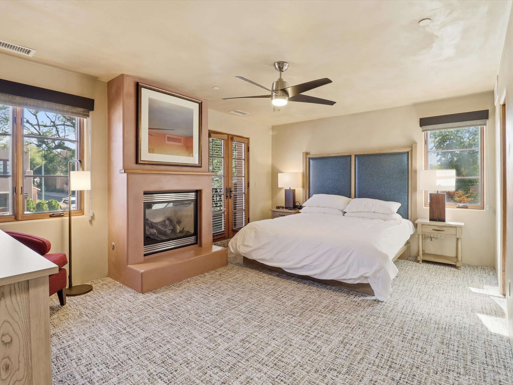 Welcome to El Corazon de Santa Fe, now proudly owned by Hyatt Grand Residences, a subsidiary of Marriott--bringing world-class service and sophistication to the heart of downtown Santa Fe.Own a fraction of this beautifully appointed 2-bedroom, 2.5-bath, 1,850 sq. ft. townhome, located just a 5-minute stroll to the historic Plaza, surrounded by fine dining, renowned art galleries, and boutique shopping.This is not a timeshare--it's deeded real estate ownership with true benefits. As an owner, you're guaranteed 4 weeks each year, with the flexibility to enjoy additional weeks based on availability. Use your weeks, share them with friends and family, or even reserve multiple units for memorable group getaways.Inside, the home is fully furnished and meticulously maintained, featuring a modern kitchen with stainless steel appliances, ample wood cabinetry, and a laundry area for convenience. The living room's cozy fireplace and an additional fireplace in the primary bedroom create the perfect ambiance during Santa Fe's crisp winters. The primary suite also offers a private balcony, spacious walk-in closet, and a luxurious ensuite bath.Enjoy the peace of mind that comes with gated security, dedicated on-site staff, and HOA fees that cover taxes, insurance, full maintenance, and all furnishings. Plus, you'll have access to premium amenities, including a fitness center and outdoor BBQ area--ideal for making the most of your time in this exclusive community.At El Corazon de Santa Fe, you're not just purchasing a property--you're investing in a lifestyle of comfort, convenience, and care. It's the perfect way to own a vacation home without the hassle of full-time upkeep.