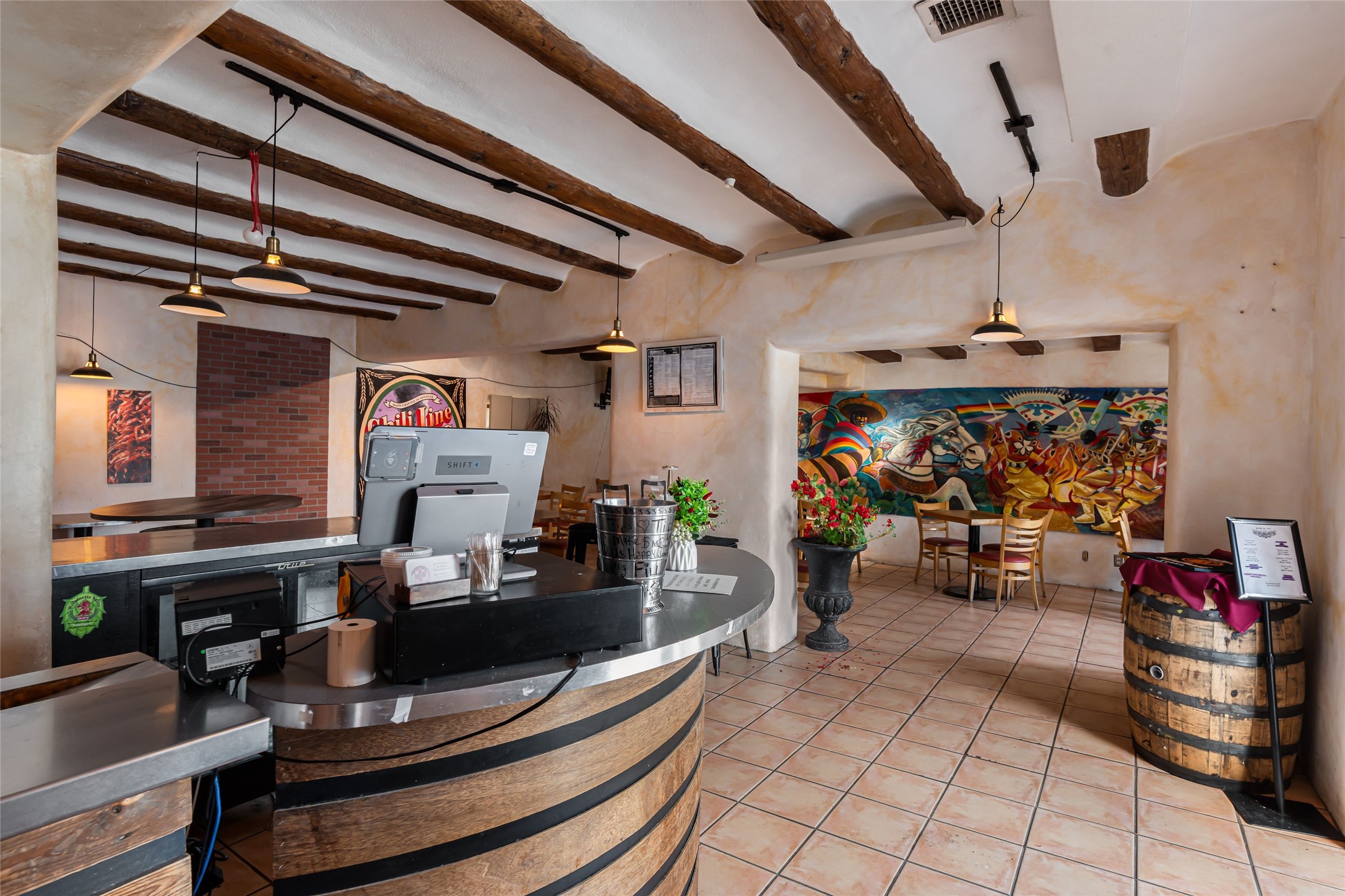 Vibrant and iconic Italin food and beverage business with an upstairs residential rental unit - brewery and bakery operations previuosly operated from subject property and could be again subjec to bureaucratic compliance, 21 parking spaces, prime location in downtown Santa Fe presenting a priceless opportunity to fulfill your commercail operaitonal dreams or least to operators as an investor.