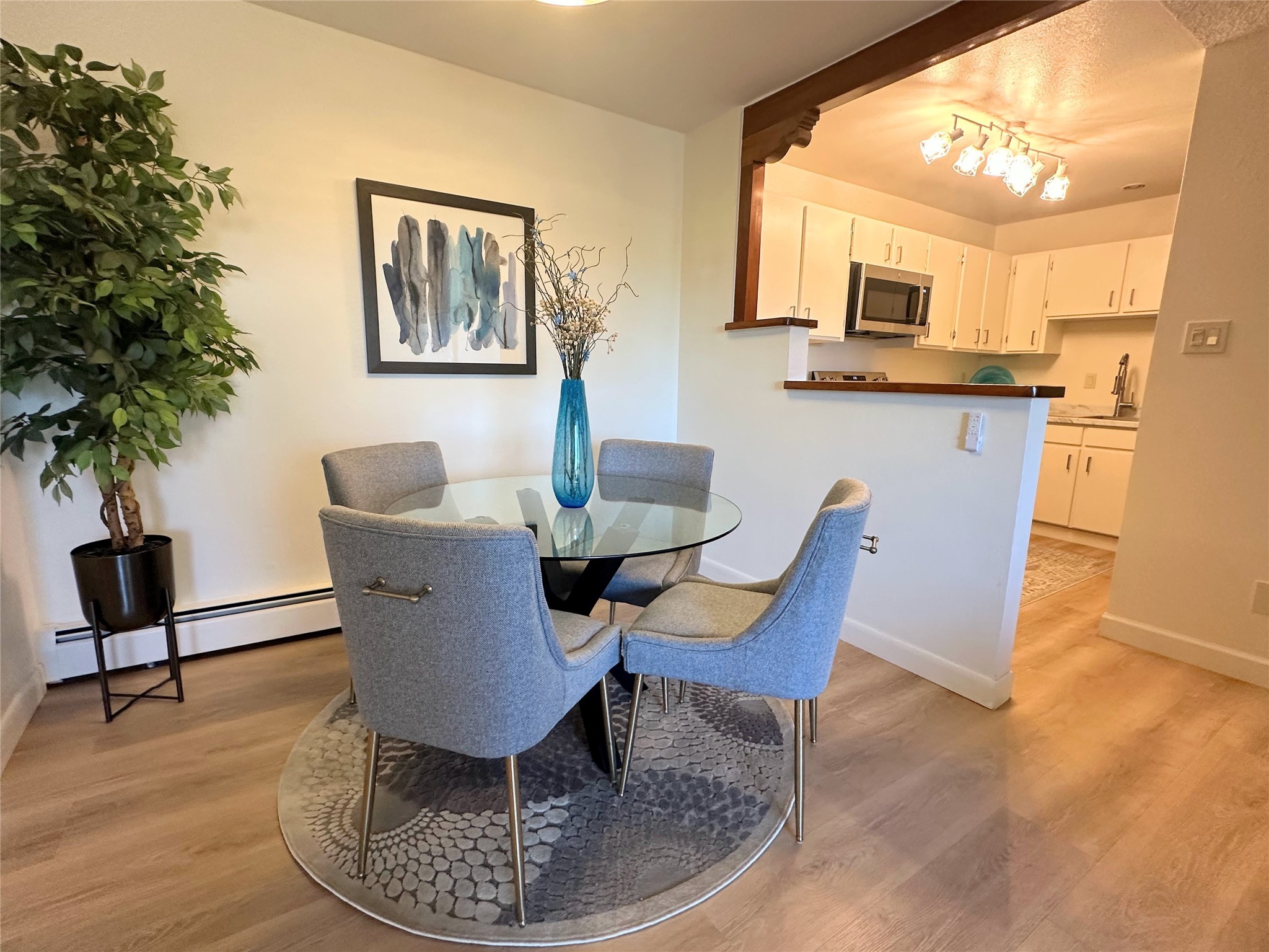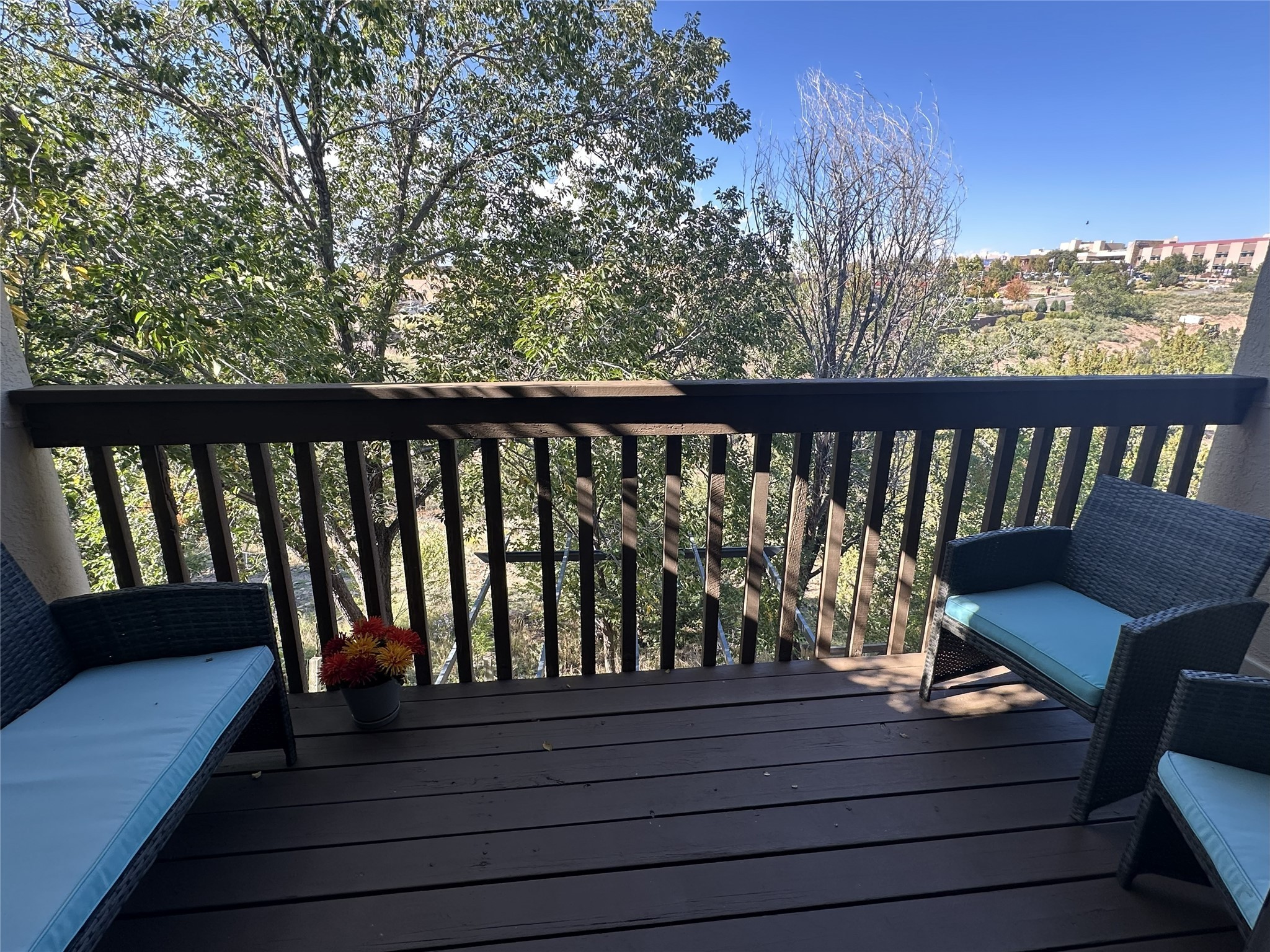 Welcome to the desirable Los Arroyos Compound. Comfort and style come together in this beautifully renovated upstairs condo, on the arroyo side at 151 Calle Ojo Feliz, Unit W. This move-in ready 2-bedroom, 1-bath home blends contemporary style with everyday convenience, ideal for a busy lifestyle, weekend getaway, or investment property.Thoughtfully updated, the condo features new vinyl plank flooring, a stylish modern kitchen with all-new stainless-steel appliances, new hardware on kitchen cabinetry, new lighting, updated countertops, a deep workstation sink, and new fixtures. The bathroom has also been upgraded with a new vanity, fixtures, contemporary lighting, and tile flooring.The open concept living and dining area offers a bright, airy feel with good separation between the bedrooms. A private balcony nestled among the trees on the arroyo side provides a peaceful, nature-filled setting, perfect for relaxing in a quiet, green environment.Enjoy the benefits of a centrally located community set on approximately 18 acres, featuring native landscaping, all designed to create a serene atmosphere with walking trails. Ideally situated near schools, shopping destinations, medical facilities, and Downtown Santa Fe.Community amenities include: an indoor heated year-round pool, sauna, weight room, hospitality room, tennis and basketball courts, and walking trails. One reserved off-street parking space, with additional guest parking available.Condo fee: $377/monthly, includes baseboard hot water heat, water, sewer, refuse, building and grounds maintenance, and insurance.