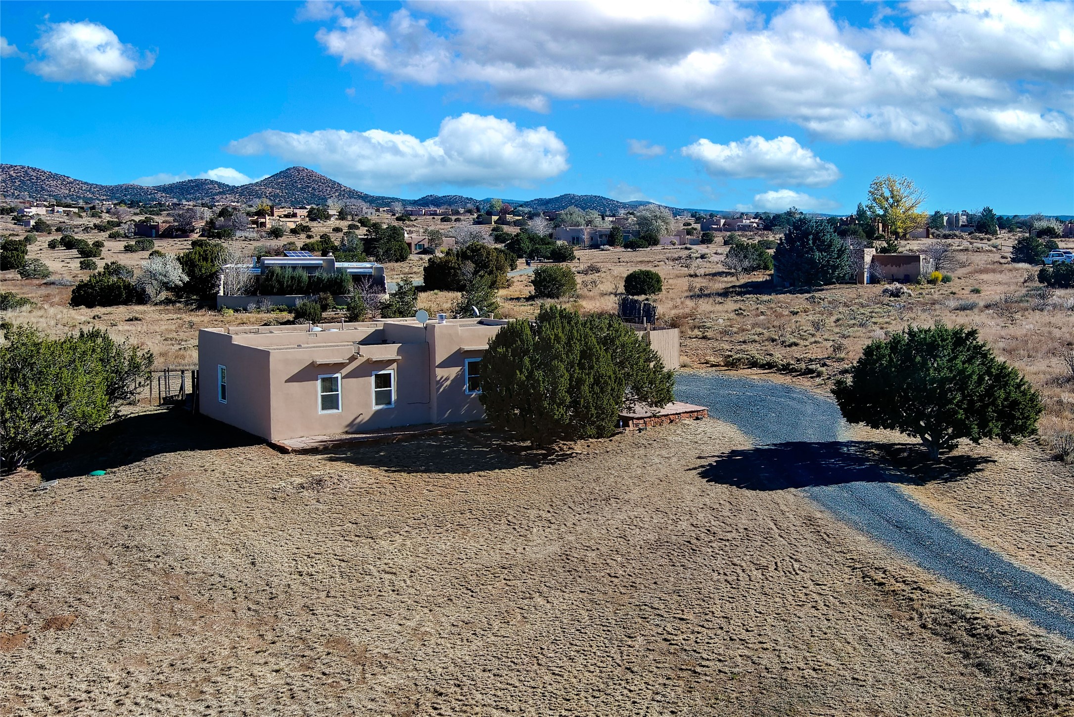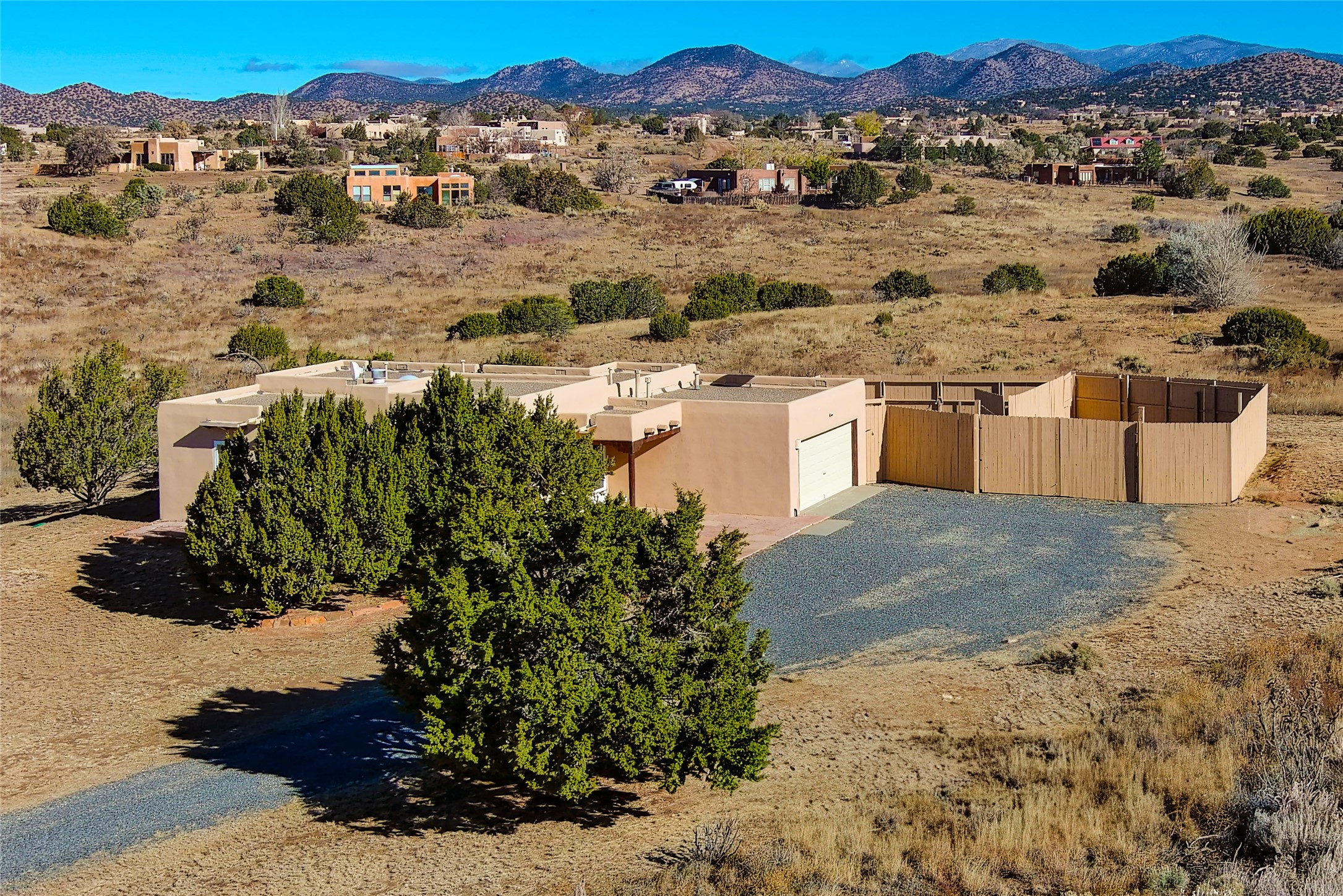 Home for the holidays in the sought-after Eldorado at Santa Fe community! Residents enjoy outstanding amenities including scenic walking and biking trails, dog park, greenbelts, basketball and tennis courts, pickleball, and a seasonal swimming pool. This inviting, move-in ready home has been freshly painted and features a heated sunroom filled with natural light--perfect for a studio, office, or relaxation space. The oversized, finished two-car garage offers abundant storage, while ample guest parking ensures convenience. Nestled on a cul-de-sac bordering a greenbelt, the property provides privacy and open views. The fenced yard offers pet security, and the generous lot includes fenced and gated RV parking plus room for gardening, growing, or simply enjoying the outdoors. Experience stunning sunsets and sweeping vistas that make Eldorado so special. HOA fees are just $620 annually per household. Don't miss this opportunity--homes like this are rare and won't last long!
